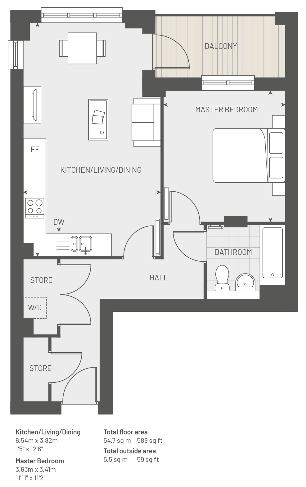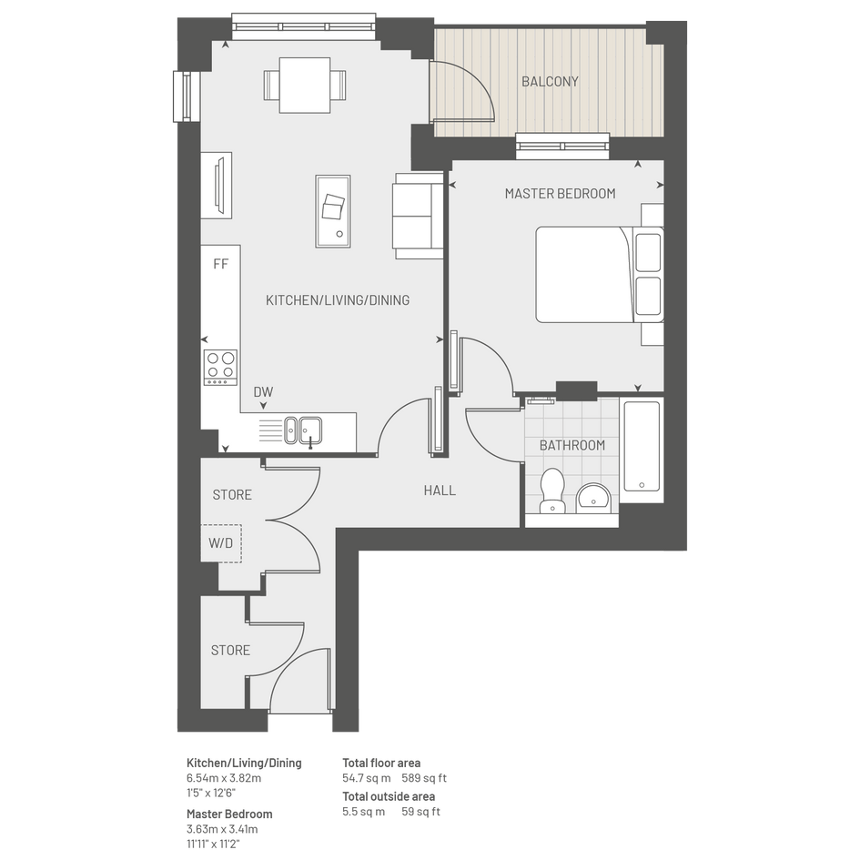 Plot 117,The Bream, Save to buy, 1 bed, 1 Bath and Balcony - 589 SqFt