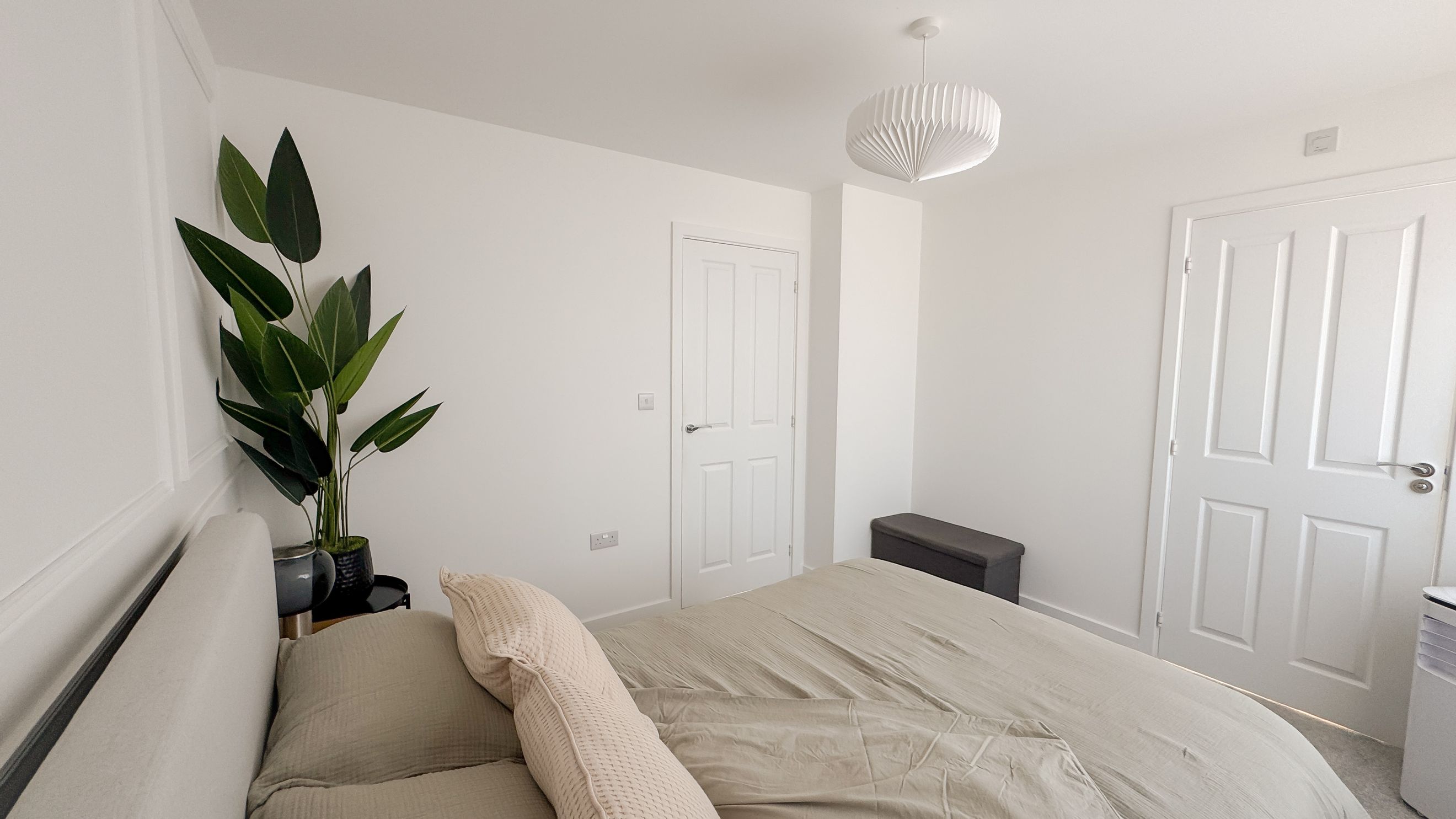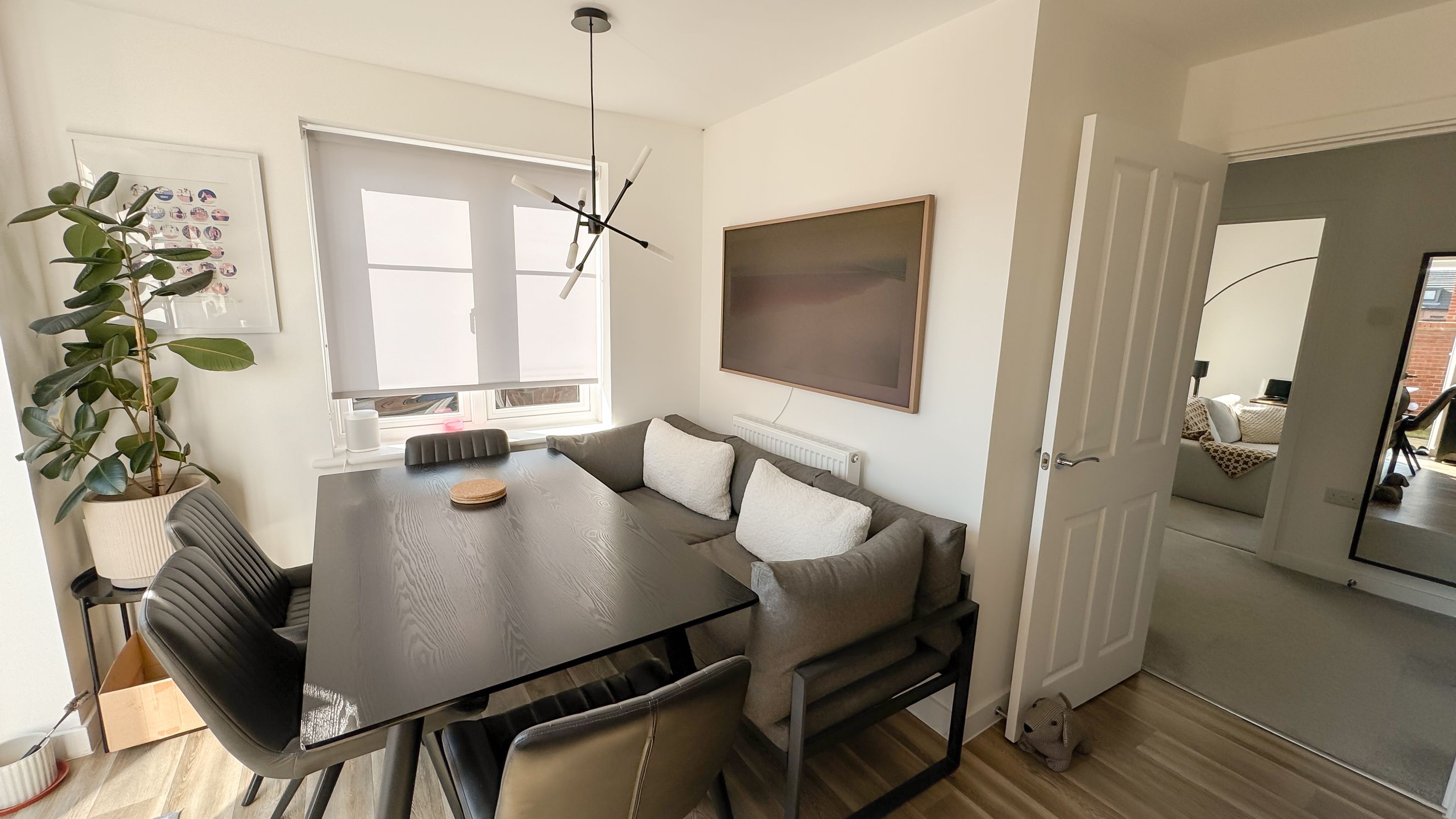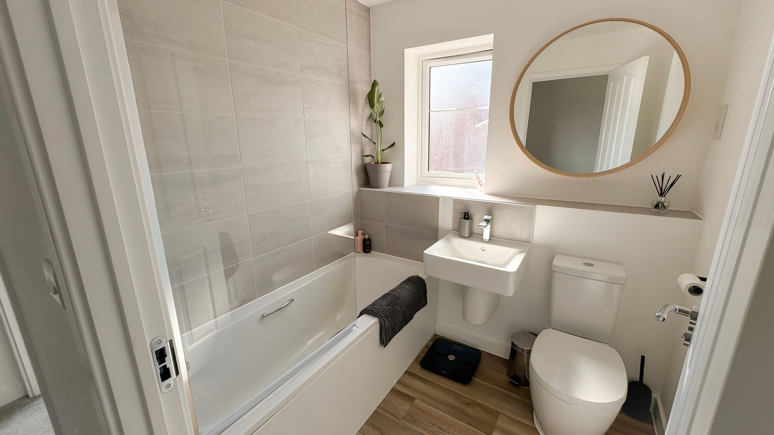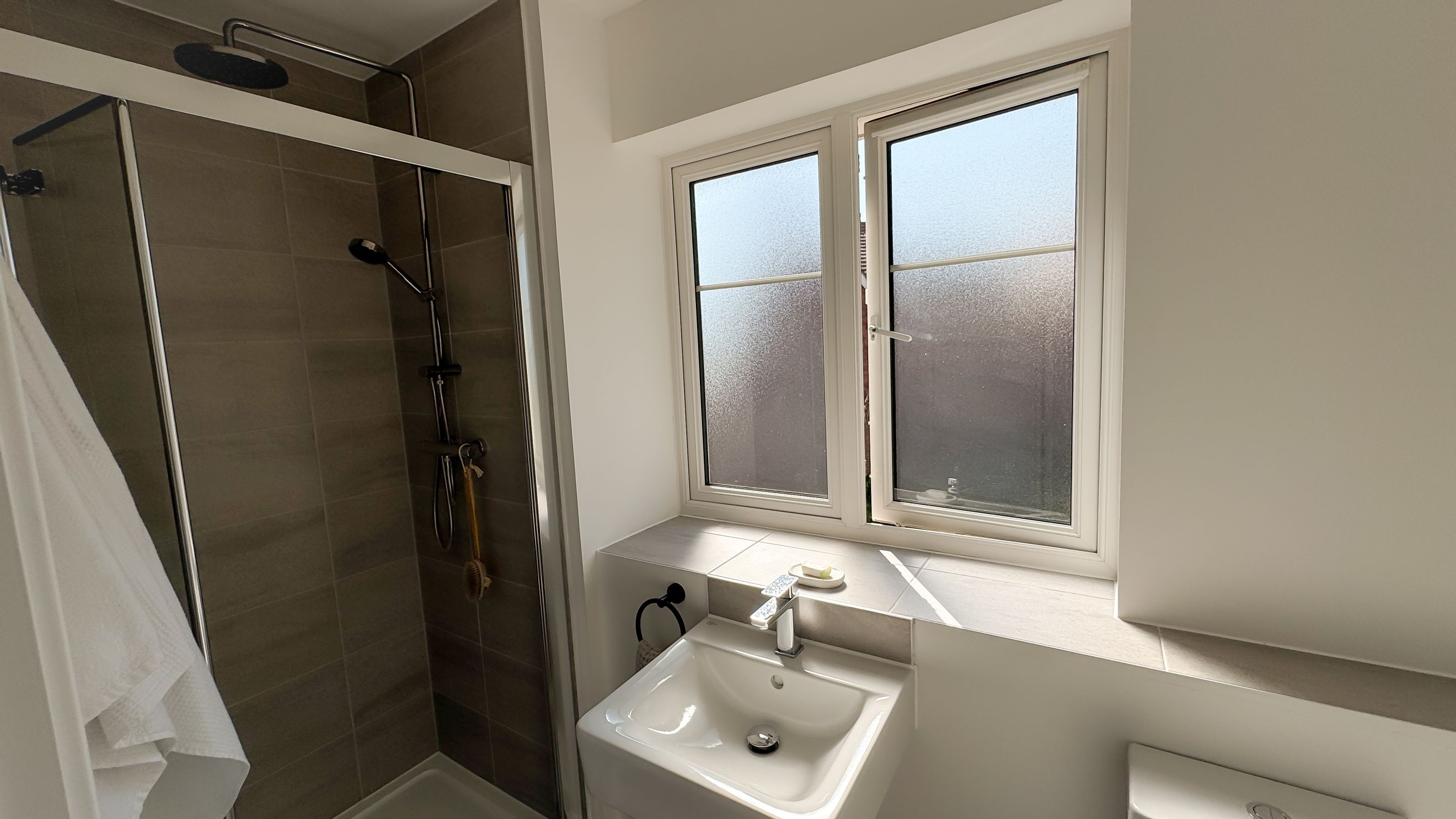 Upstairs are three bedrooms—two doubles and one single—with the master bedroom benefiting from an en‑suite shower room, alongside a modern family bathroom with a three‑piece suite and window.