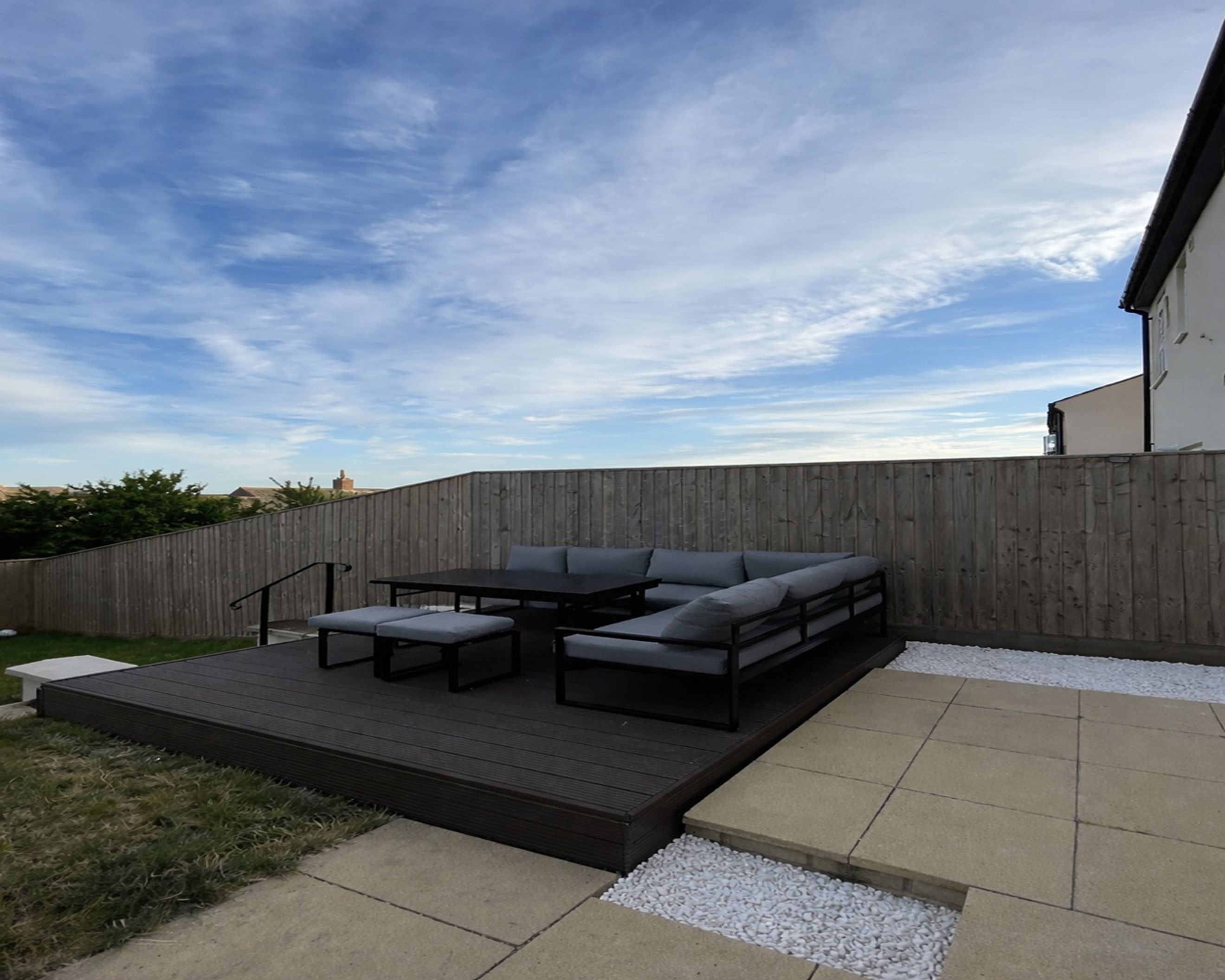 To the rear, a low-maintenance garden with stylish decking creates an ideal space for outdoor dining, entertaining, or relaxing in privacy.