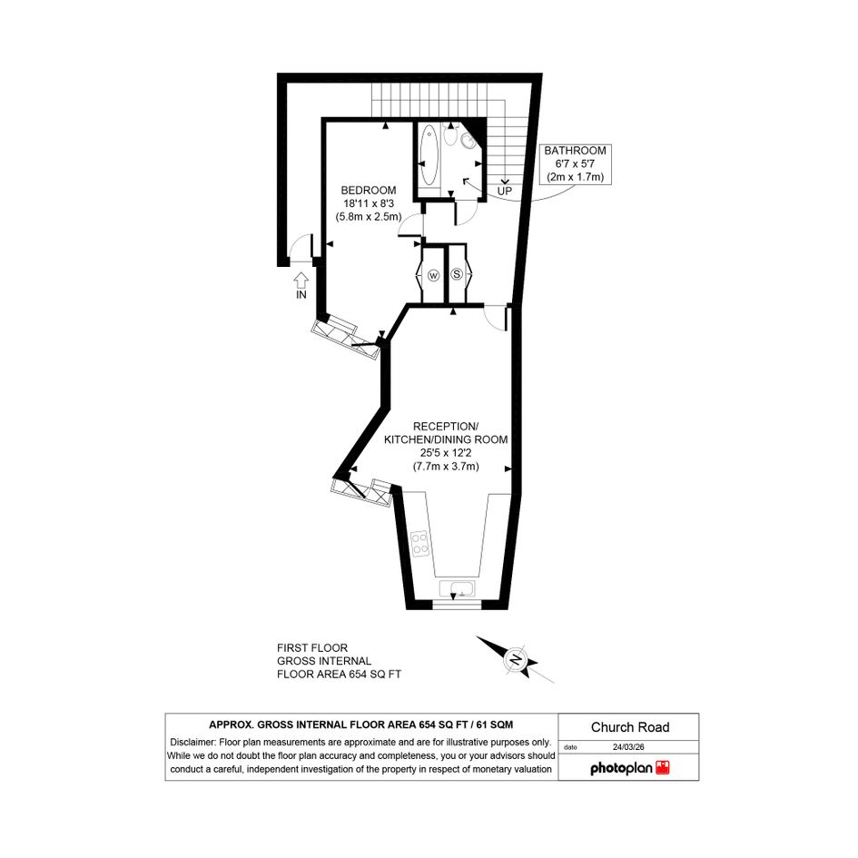 Lounge/kitchen: 2.7m x 2.6m + 4.9m x 2.8m + 1.5m x 1.2m