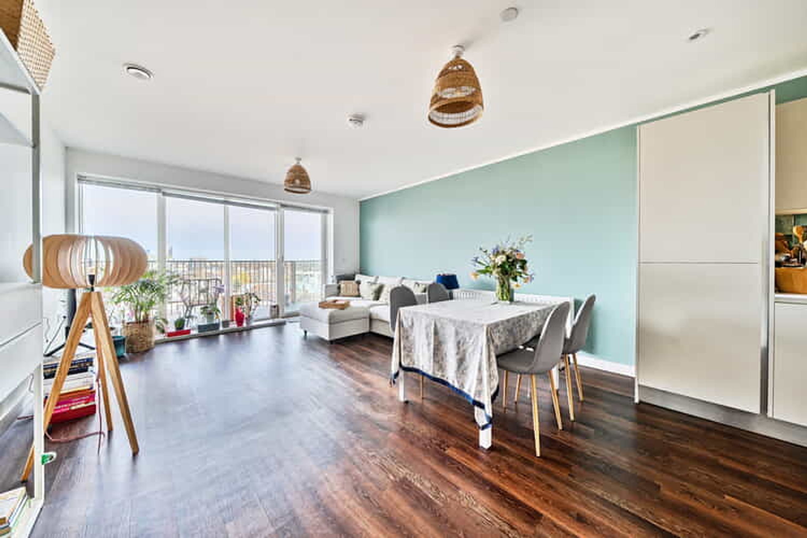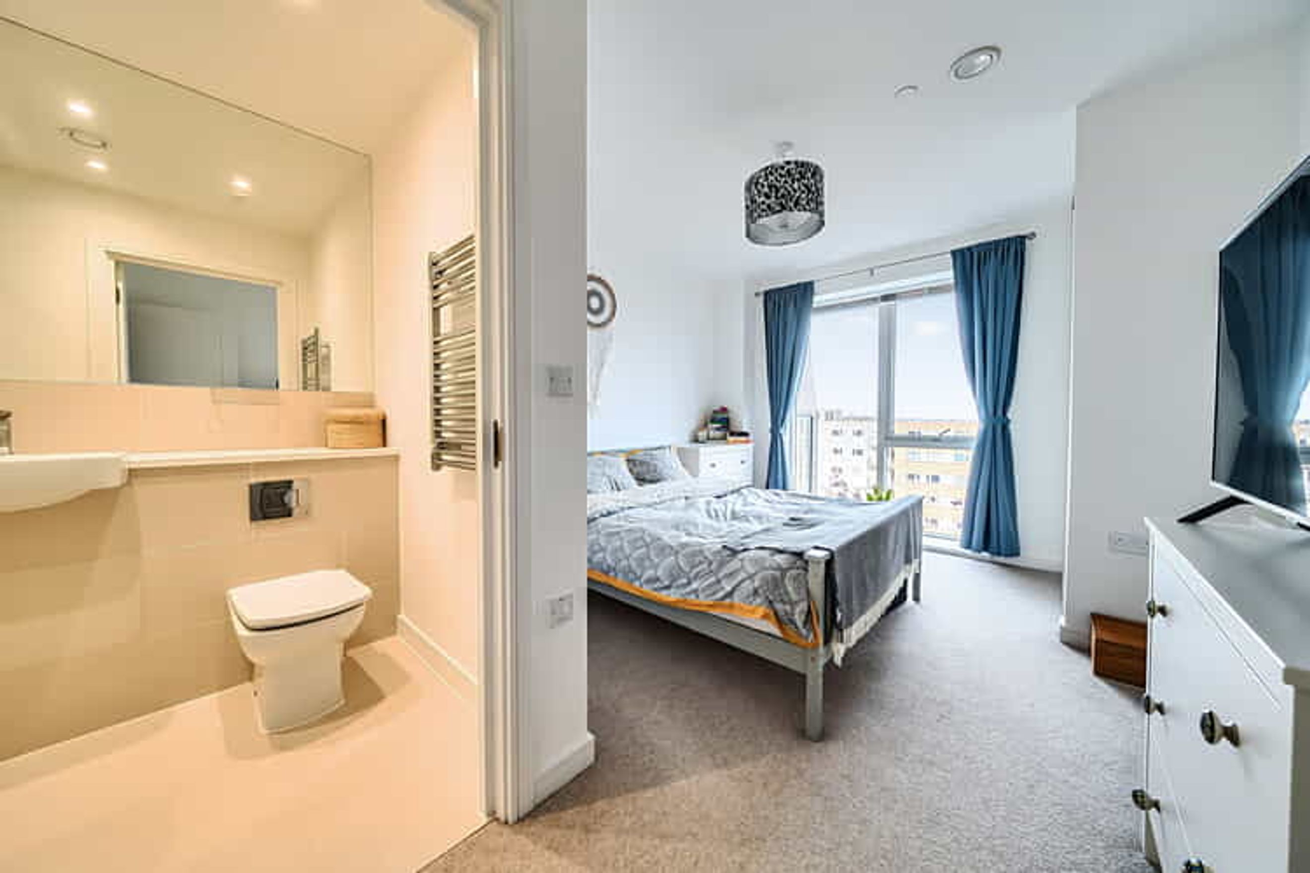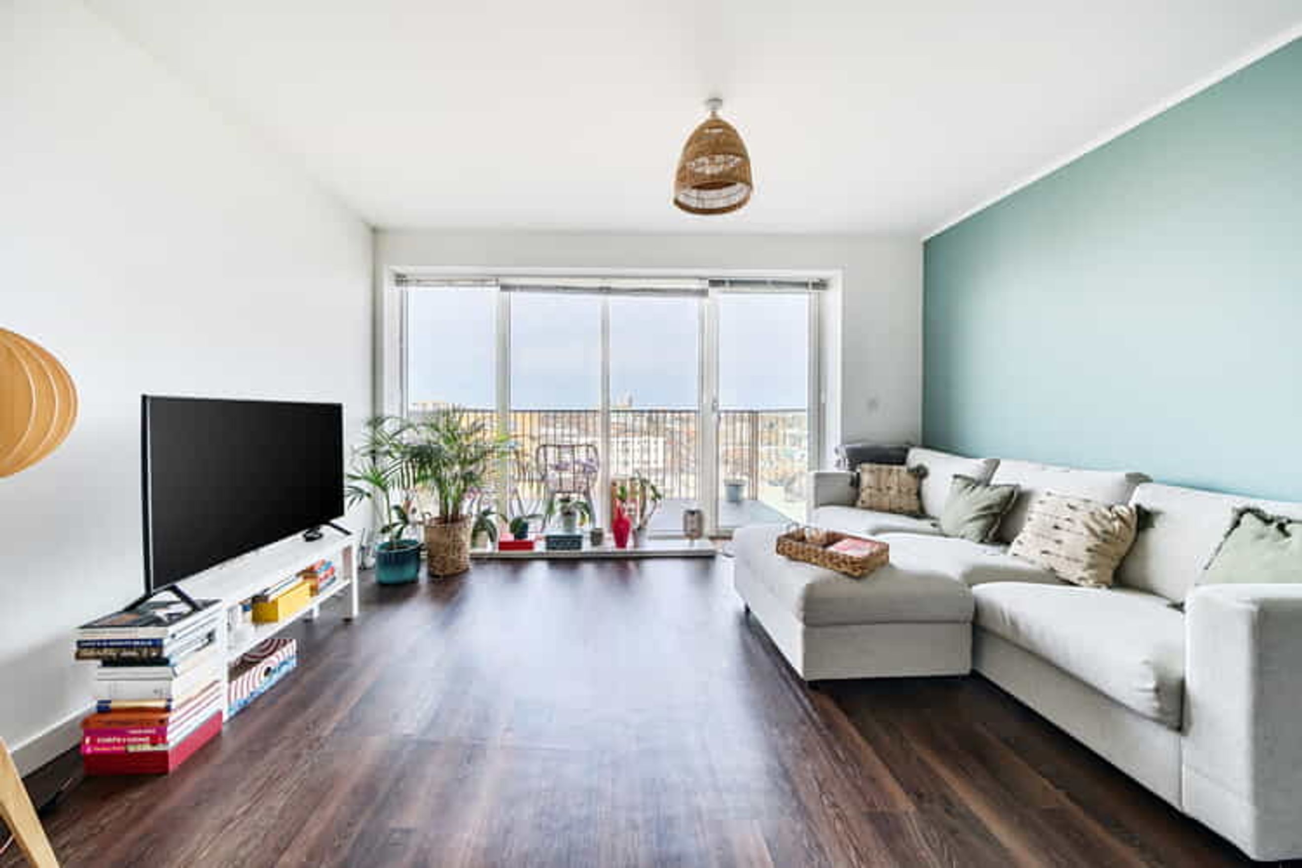 The property on the eighth floor comprises an entrance hall, a spacious living room with a modern open plan kitchen, two bedrooms (one en-suite) and a bathroom. Perfect for couples and small families.