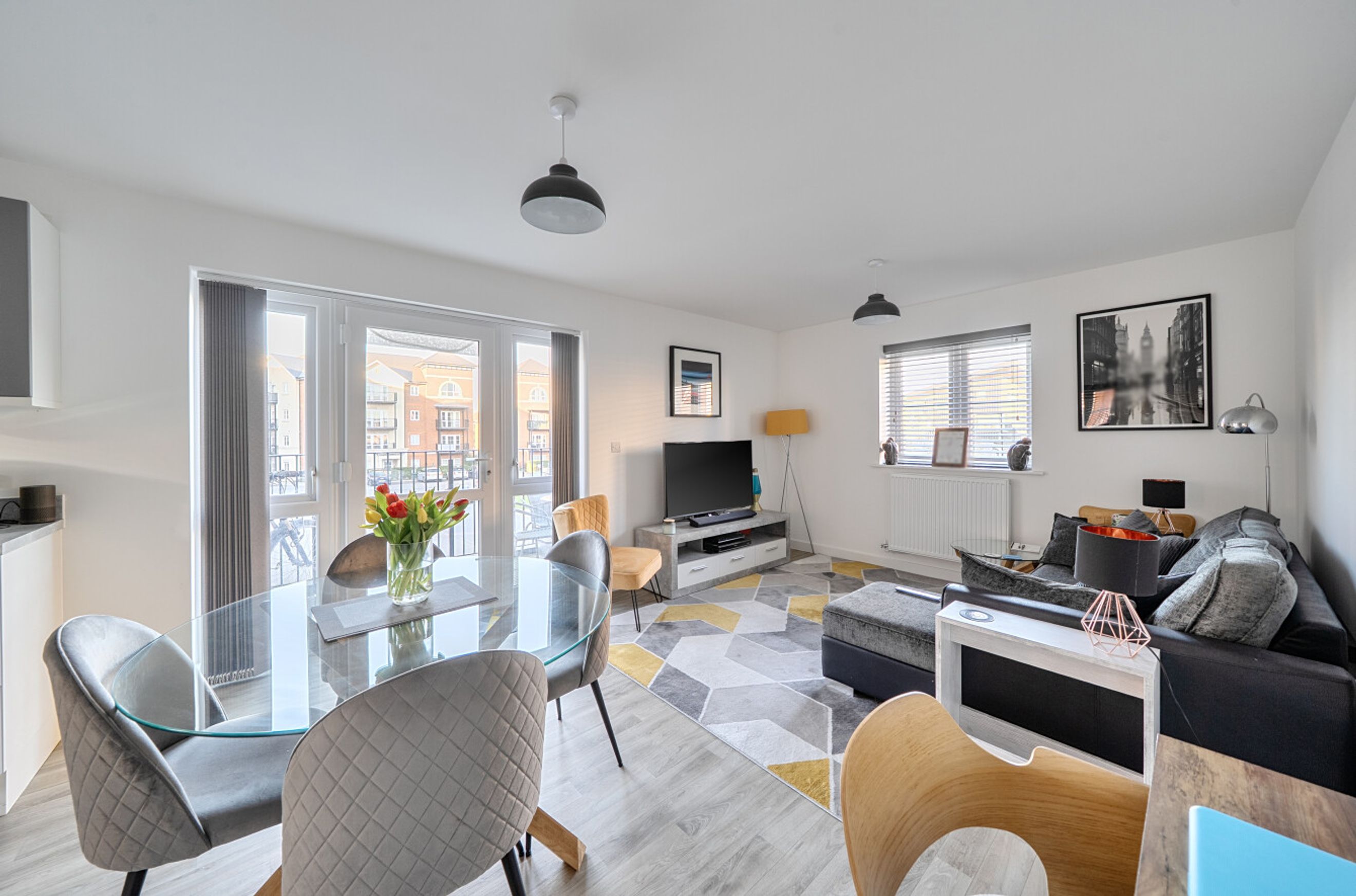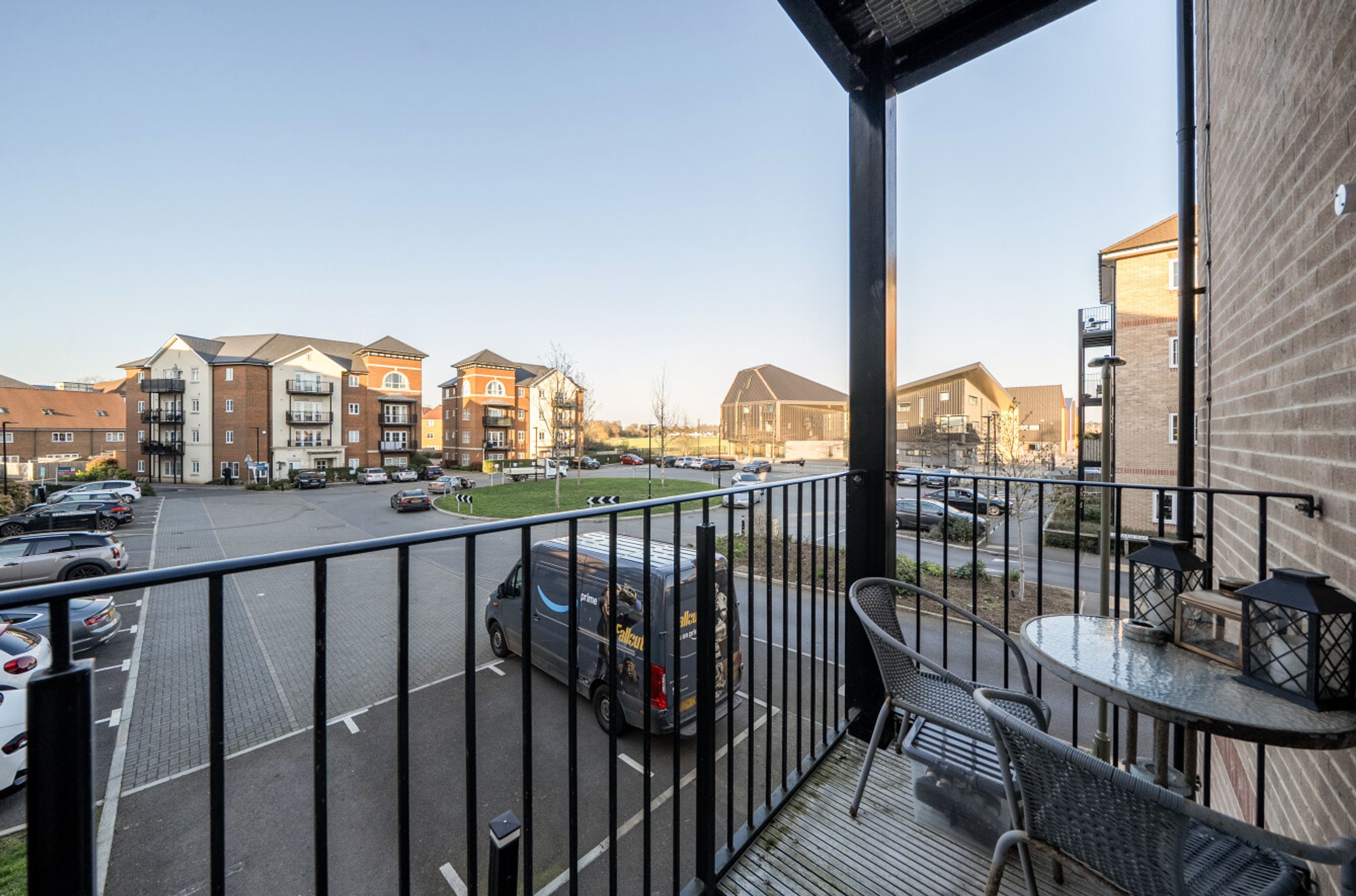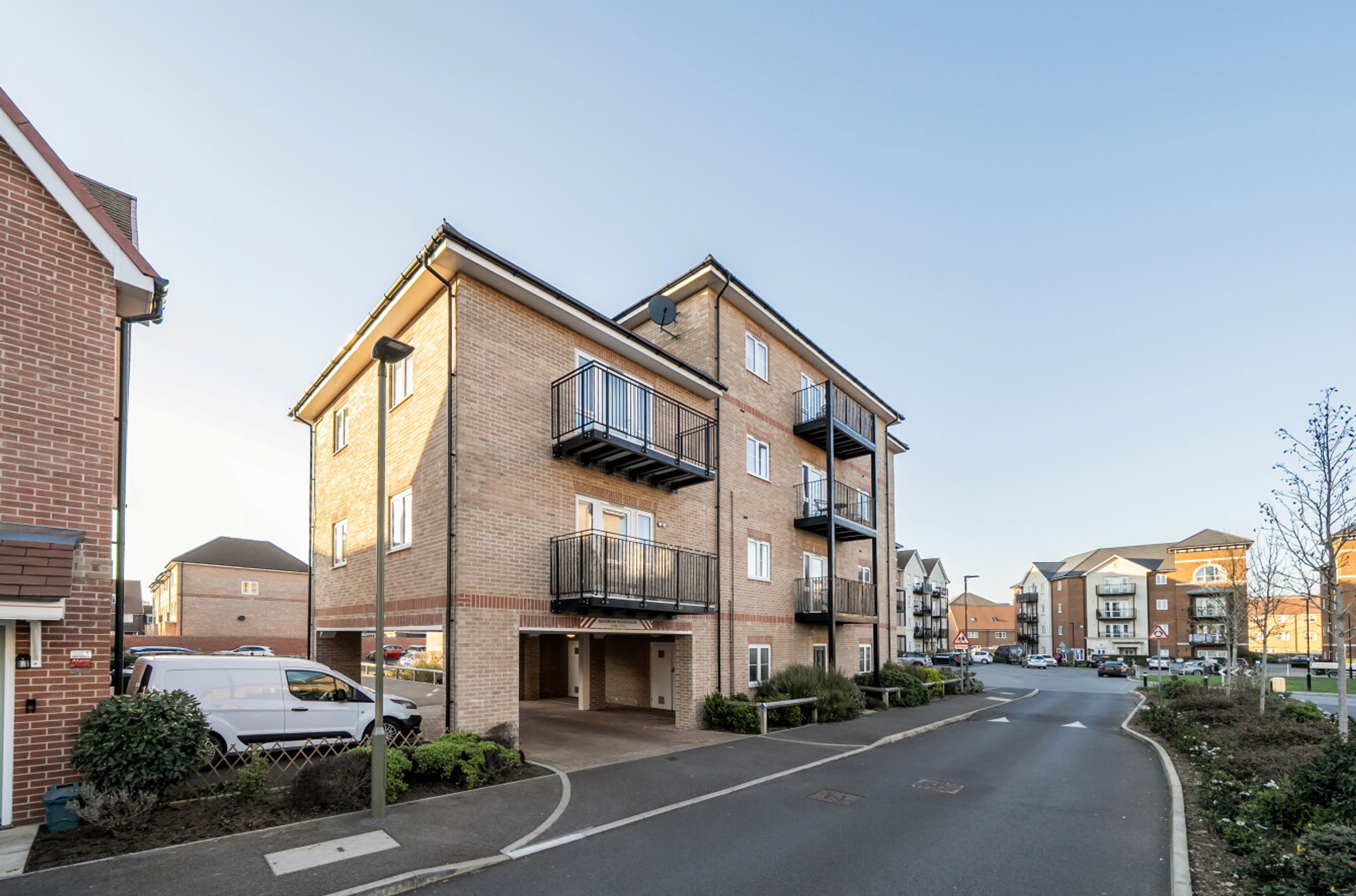 This stylishly-presented flat is on the first floor of a recently-constructed block and has a twenty-three-foot reception room with windows on three sides and a door that leads out onto the balcony. The open-plan kitchen area features smart-looking units and integrated appliances. There is a good-sized bedroom with fitted, mirror-fronted wardrobe; an attractive, naturally-lit bathroom and a large storage/utility cupboard has been provided in the entrance hallway. Well insulated walls, high performance glazing and a modern gas central heating system have resulted in a very good energy-efficiency rating. The flat comes with use of a parking space and is also just a short walk, or even shorter bike ride, from Walton-on-Thames Station which offers rail services to a number of destinations including frequent trains in to London Waterloo.