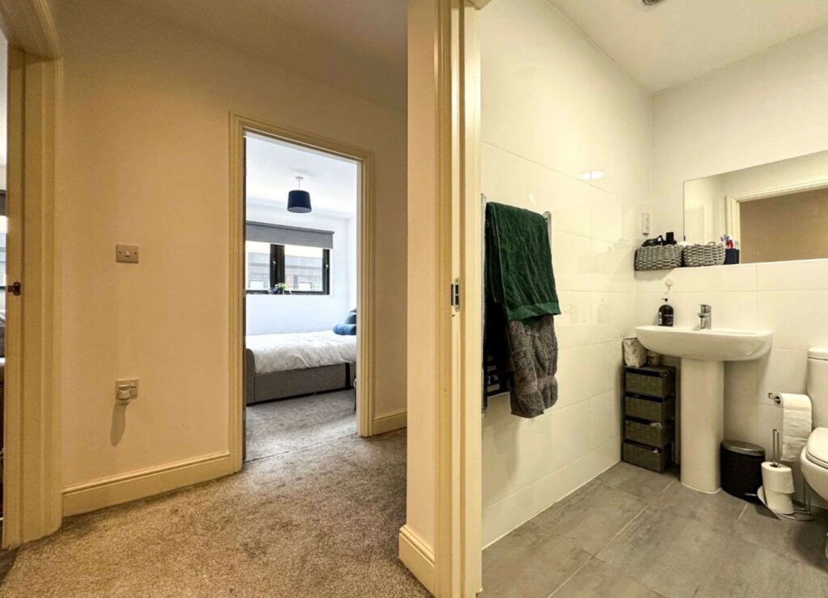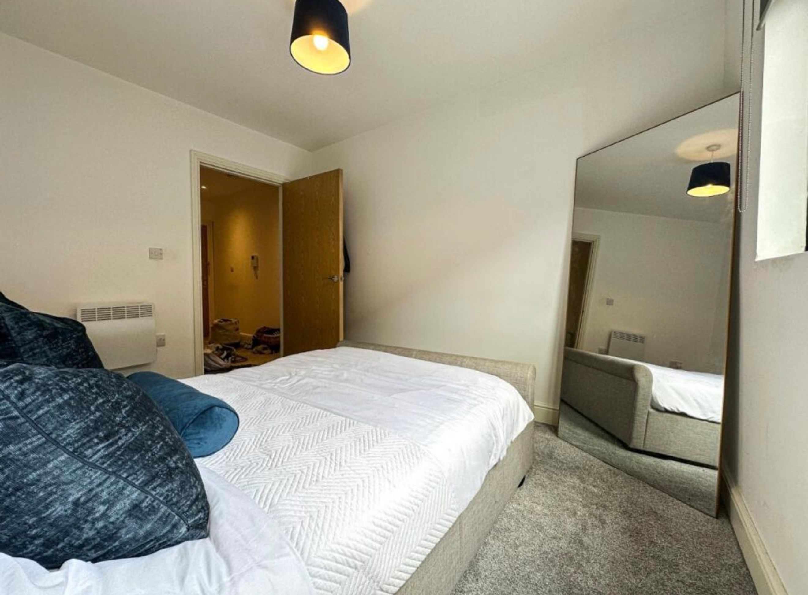 The well-proportioned bedroom offers ample space for a double bed and additional furniture, while the neutral décor gives you a blank canvas to personalise.
