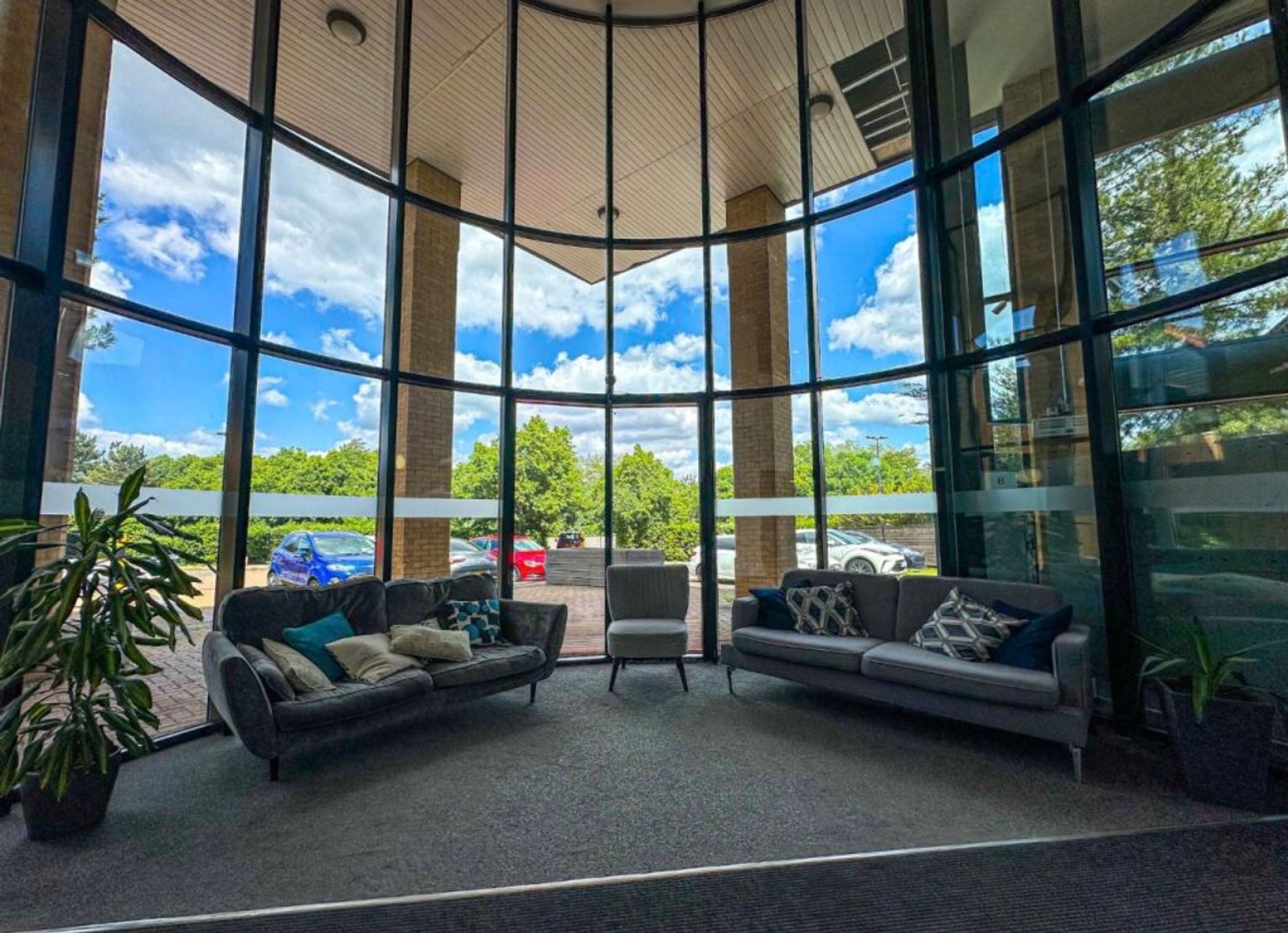 Large windows allow for plenty of natural light, creating a welcoming and airy atmosphere.
