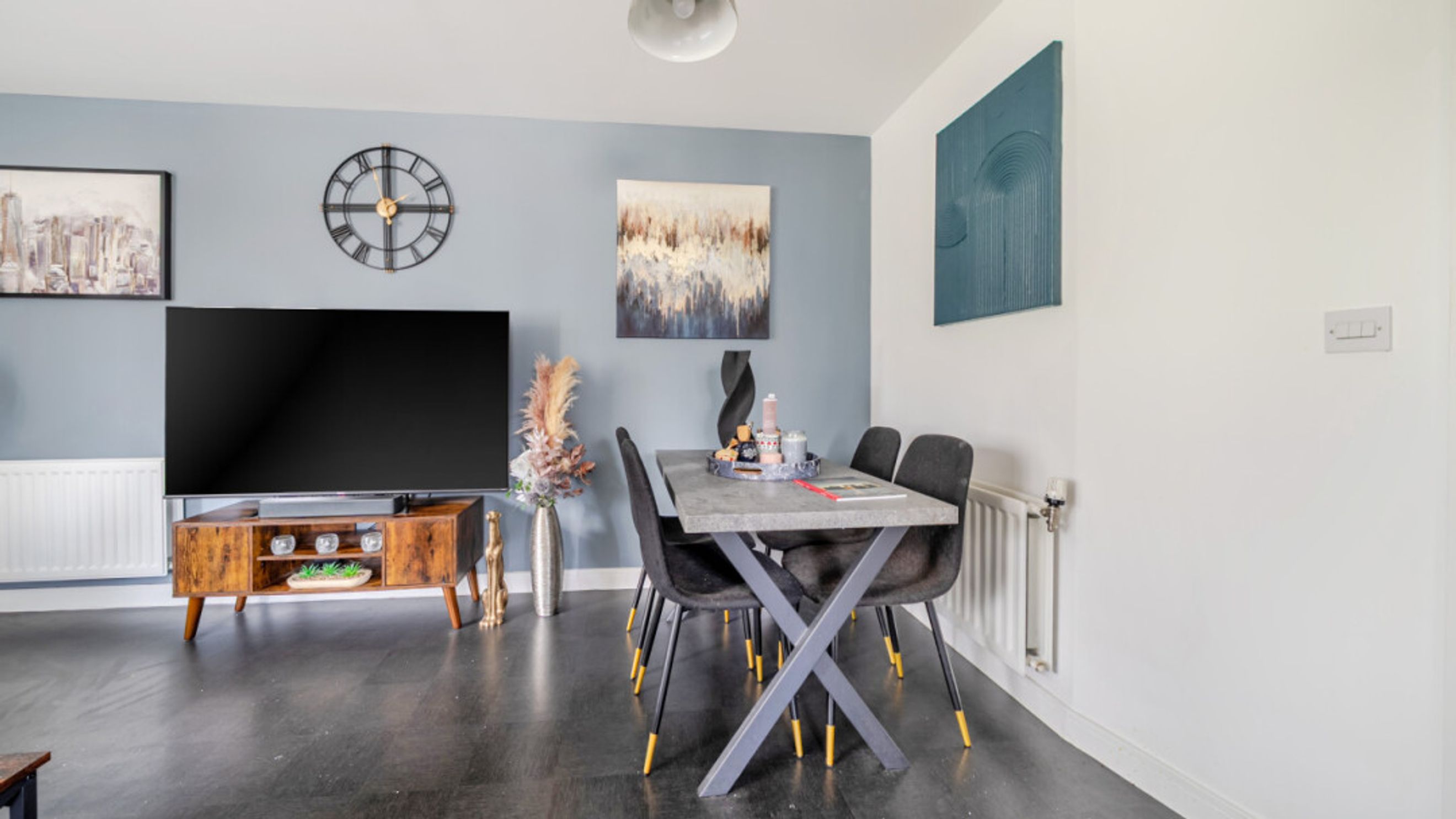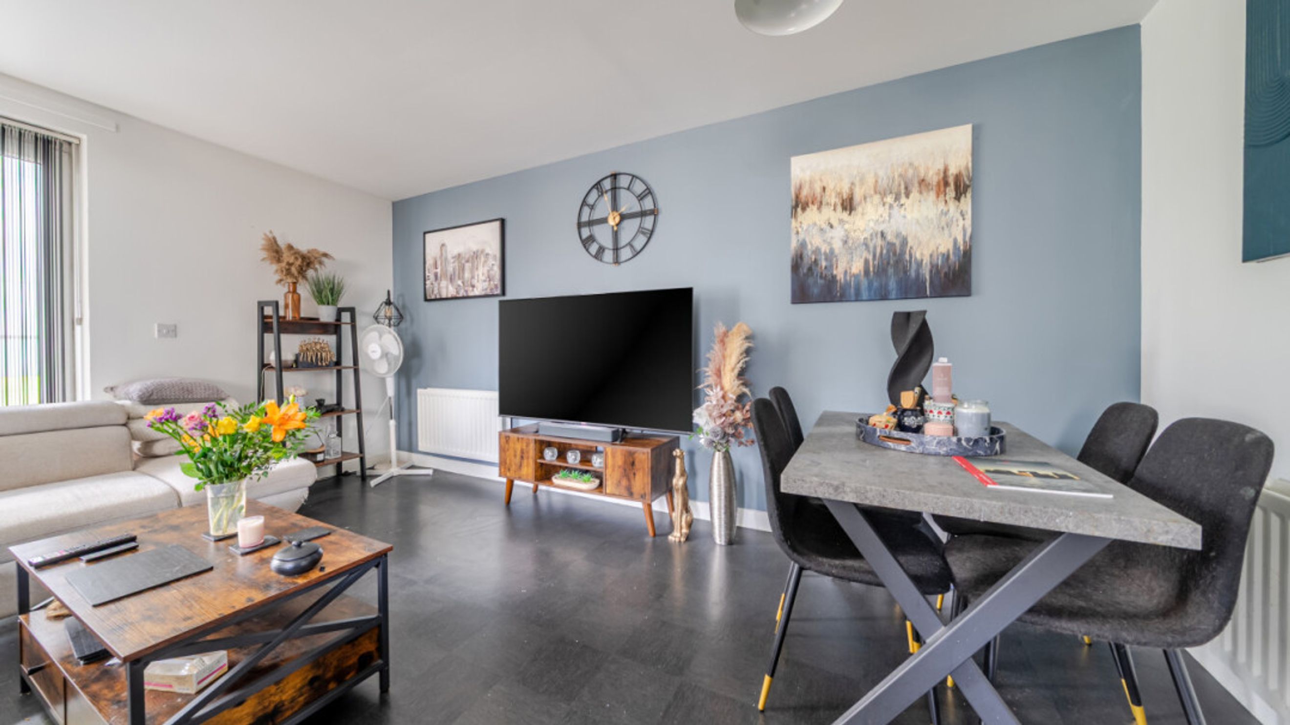 - Open-plan kitchen, living and dining area