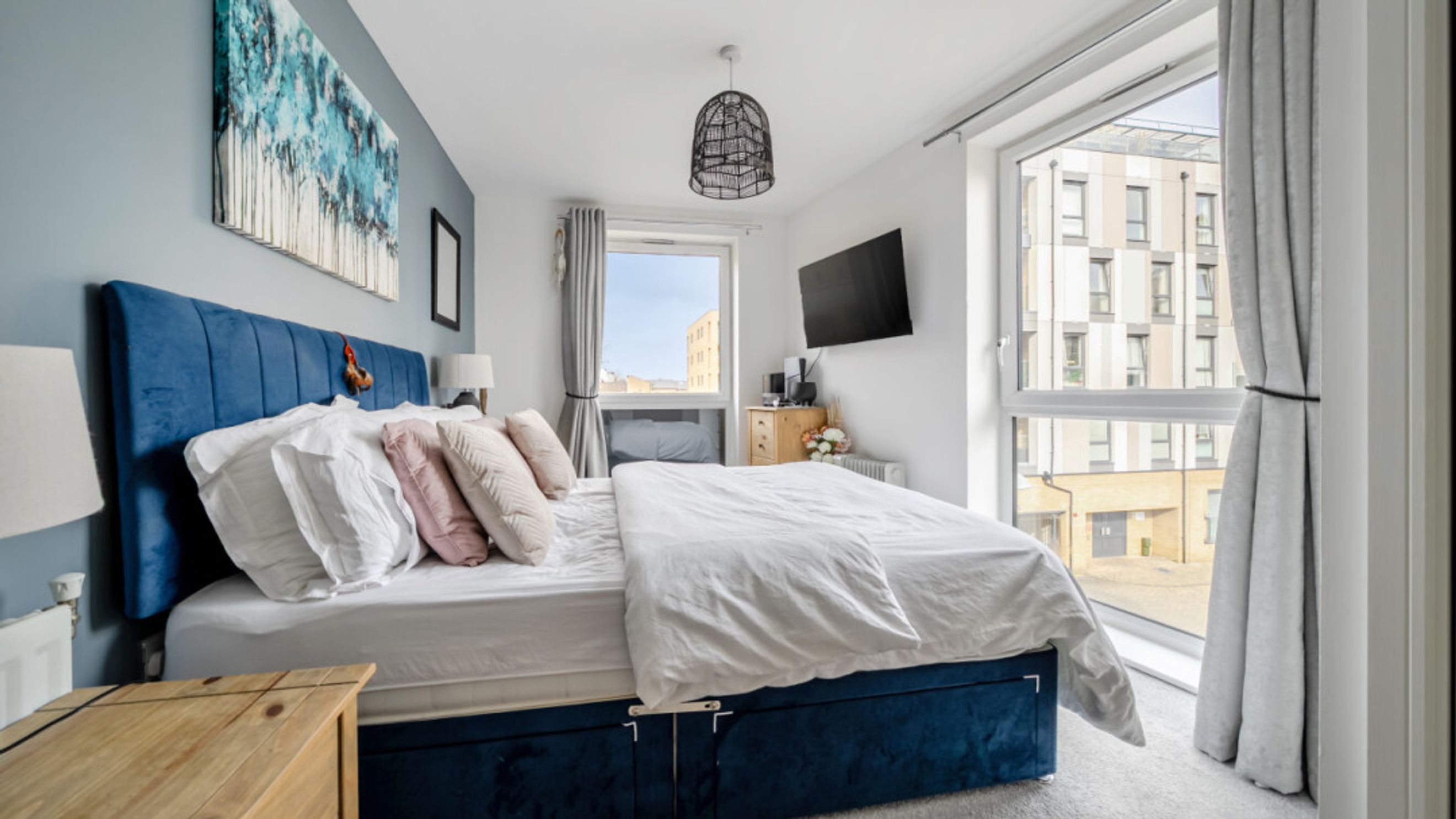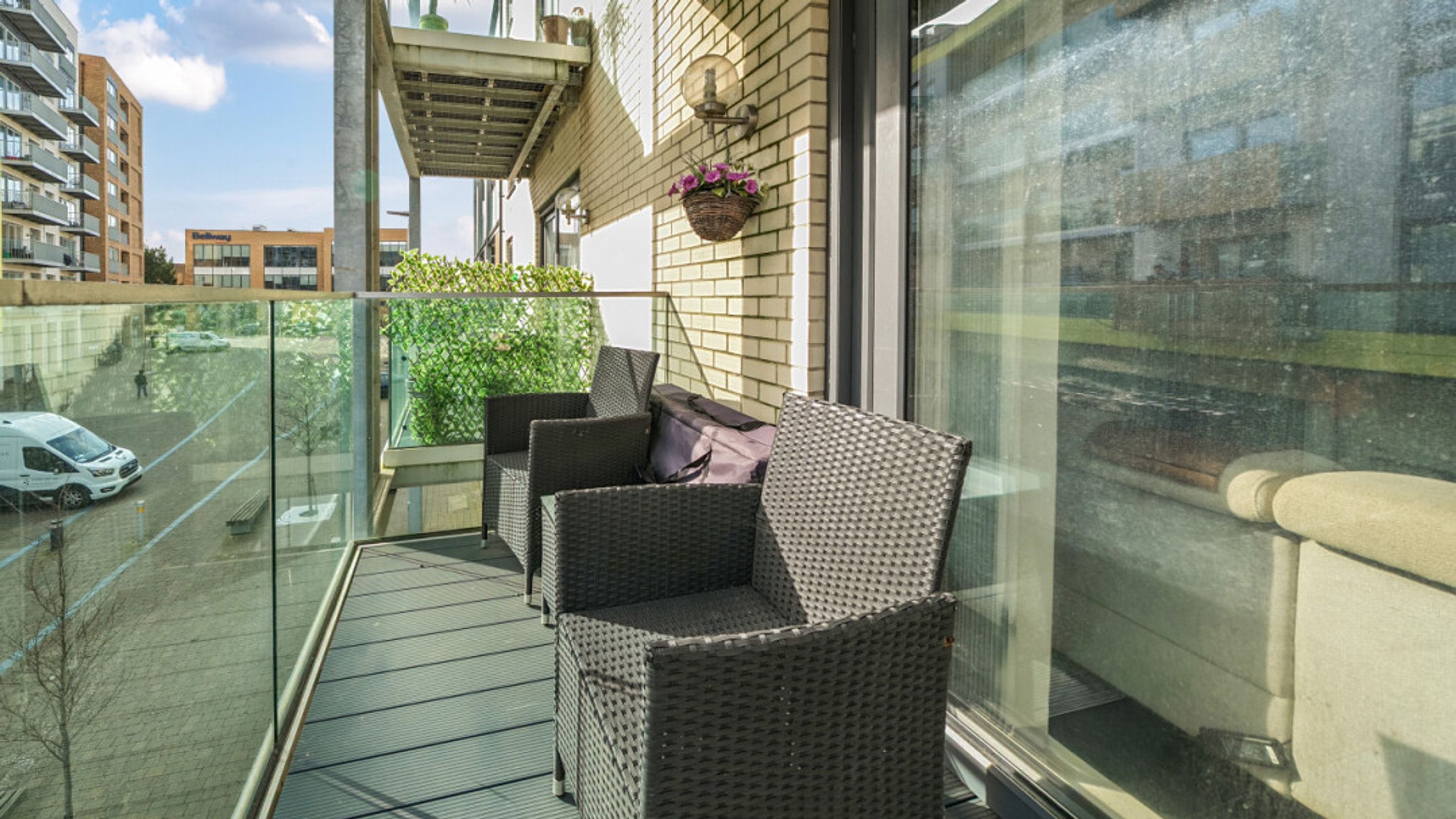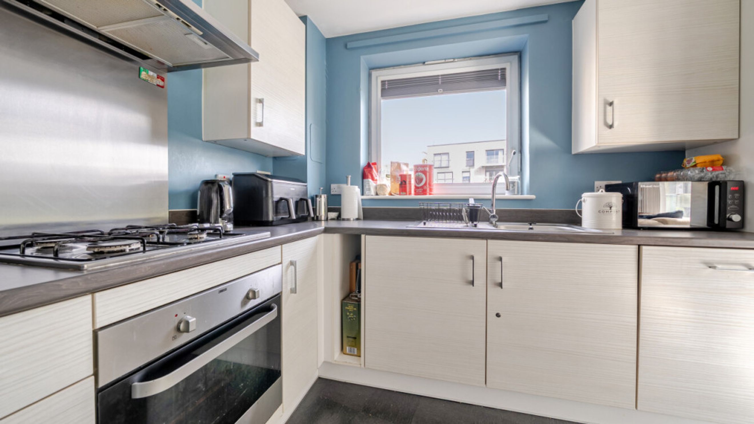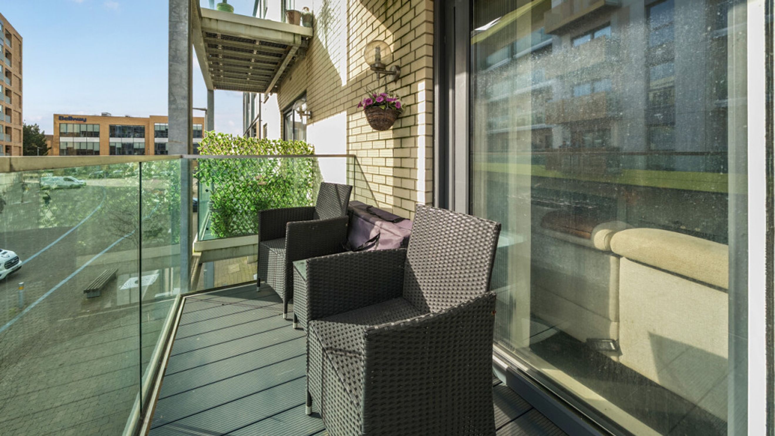 A private balcony provides a pleasant outdoor retreat, while the master bedroom is well-proportioned and complemented by integrated storage and an en-suite. The apartment further benefits from a second bedroom, gas central heating, a good EPC rating (B), and a range of integrated appliances including a dishwasher, washer/dryer, fridge/freezer, oven and even a fitted TV, making it ready to move straight into.