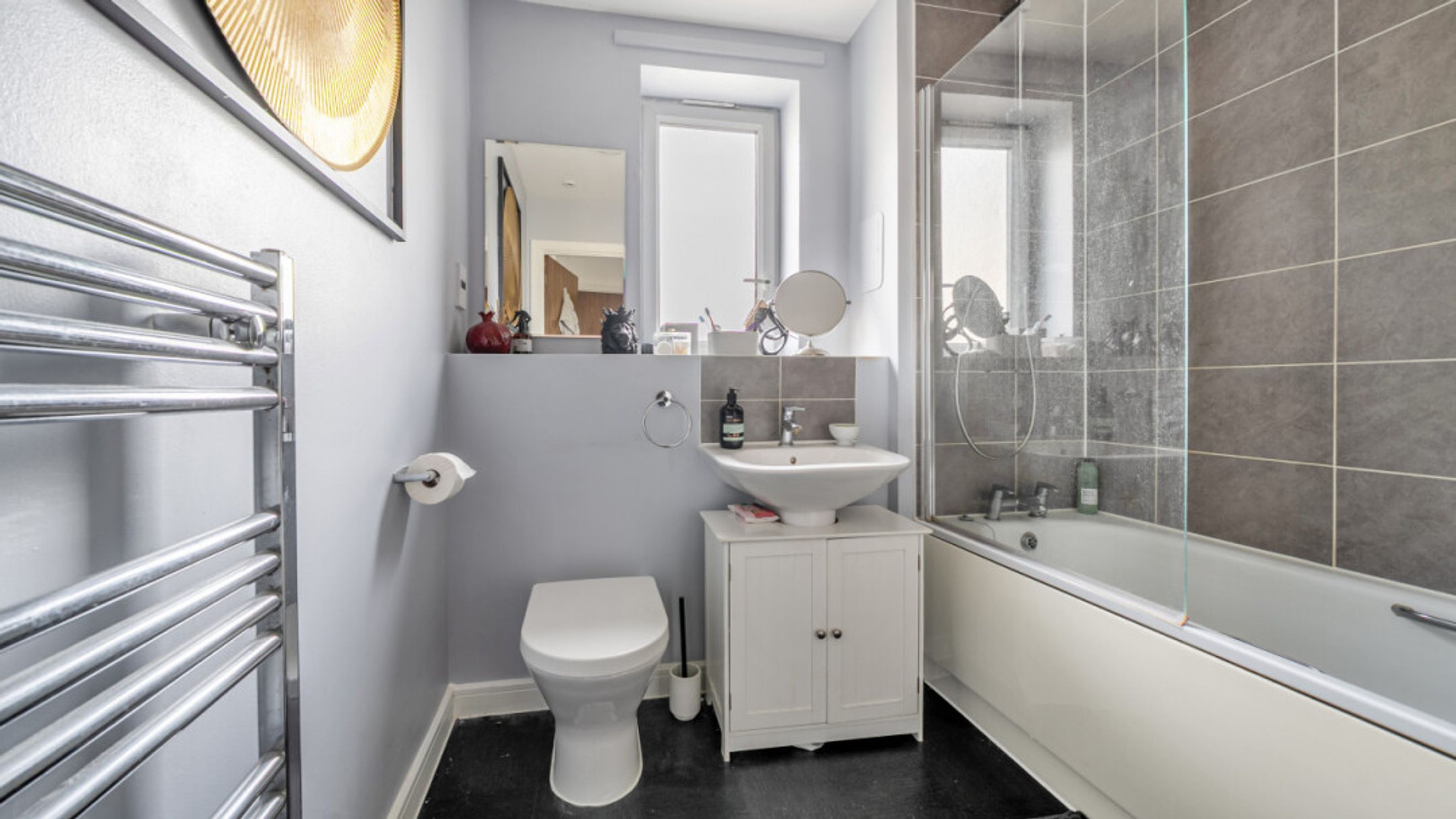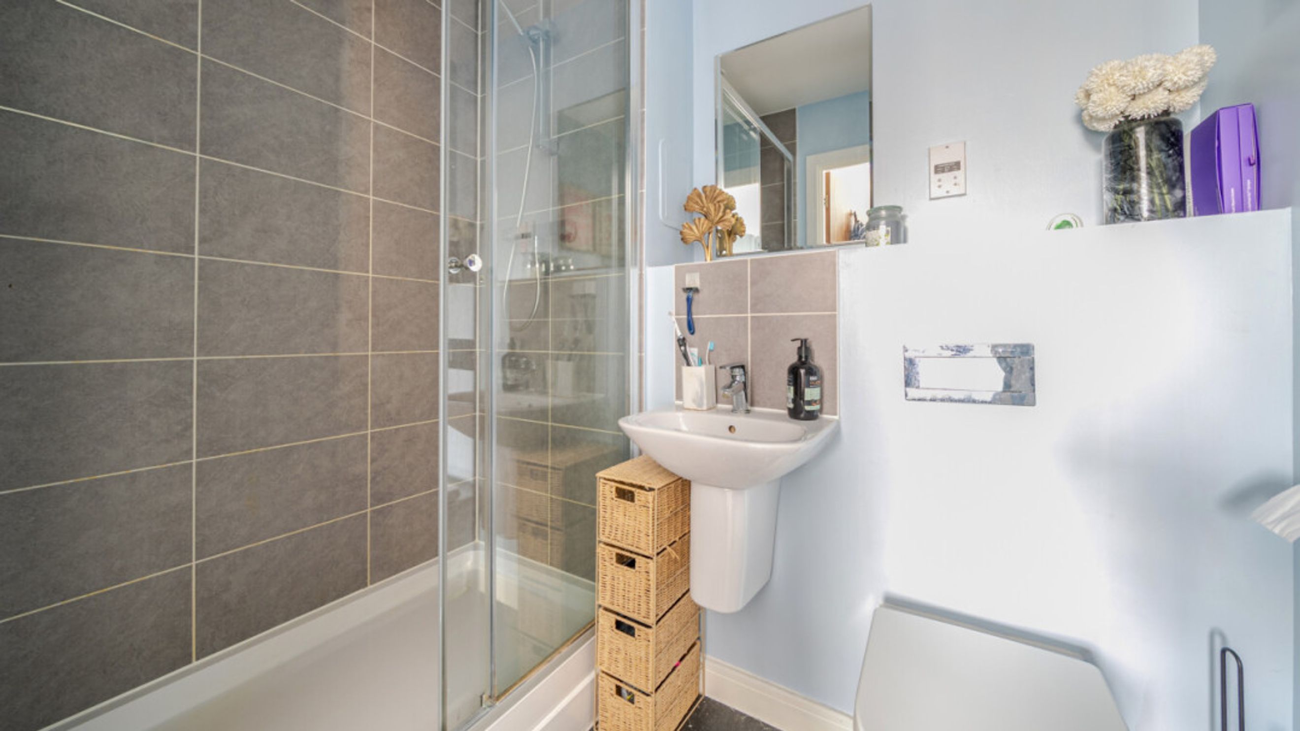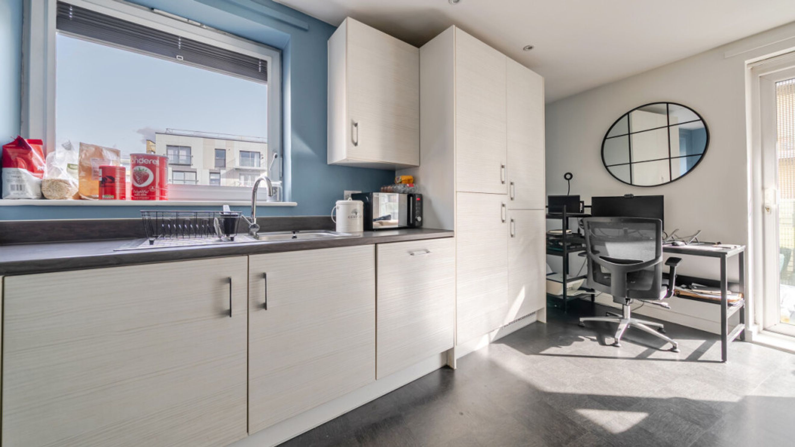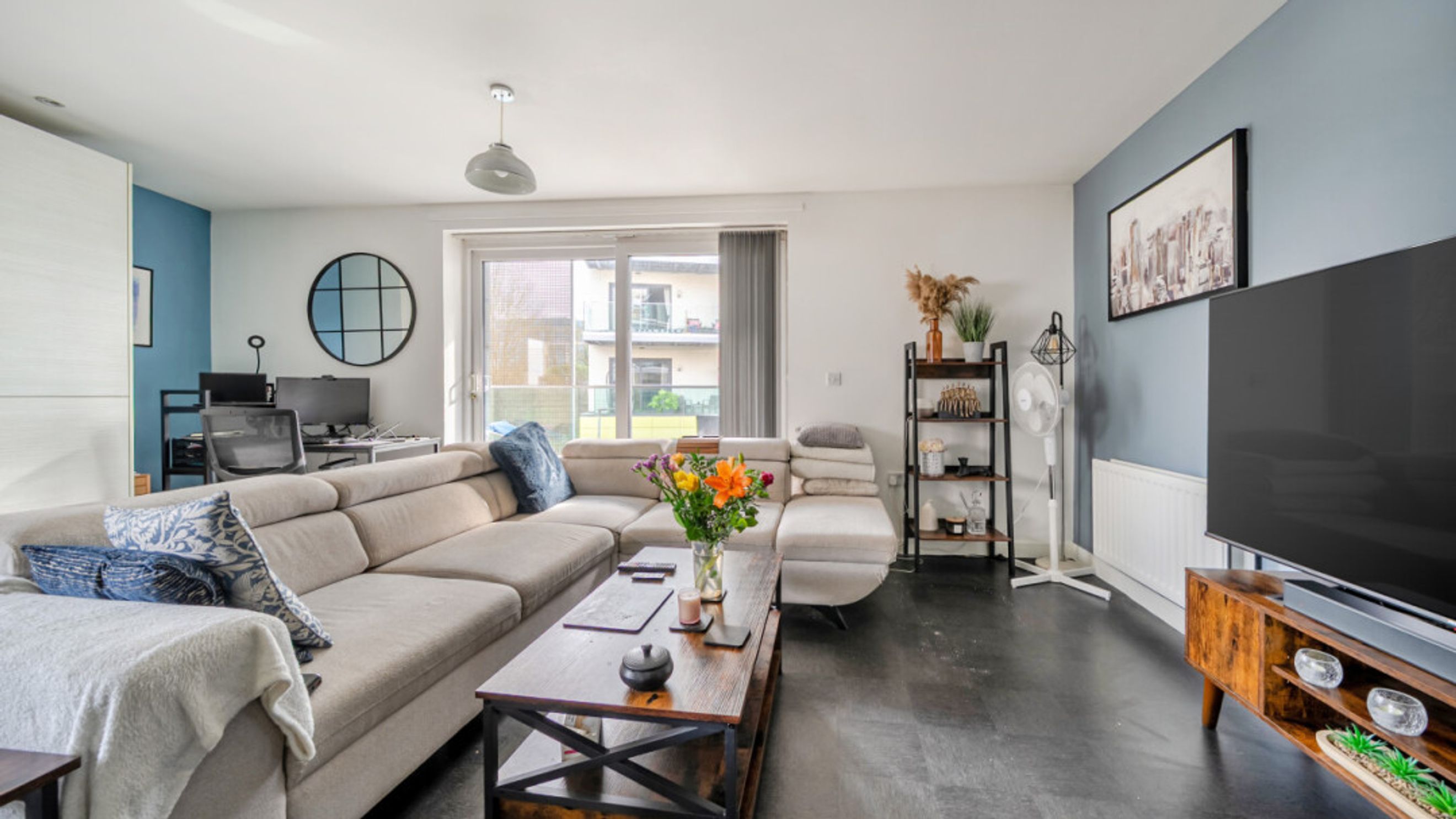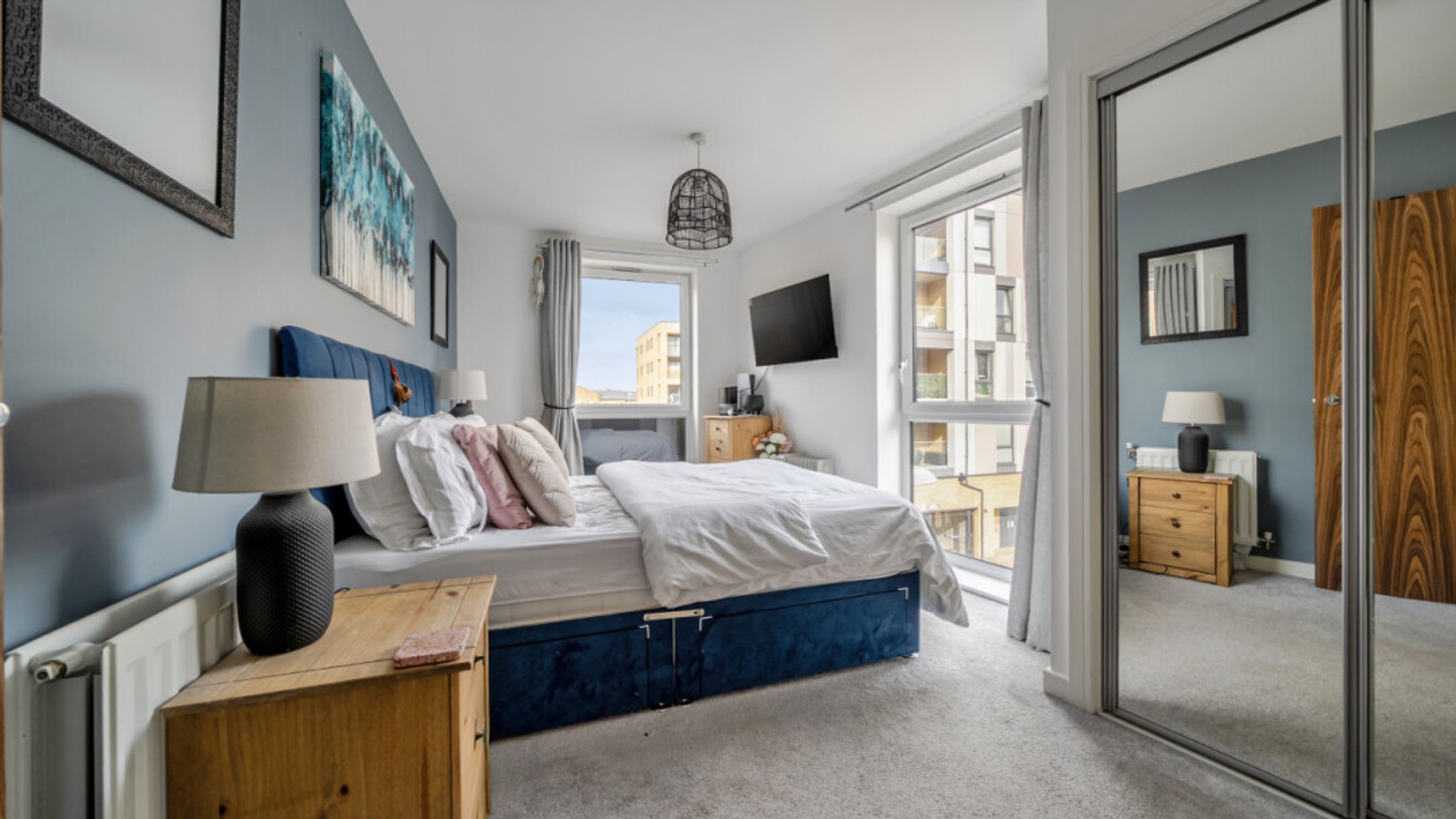 A private balcony provides a pleasant outdoor retreat, while the master bedroom is well-proportioned and complemented by integrated storage and an en-suite. The apartment further benefits from a second bedroom, gas central heating, a good EPC rating (B), and a range of integrated appliances including a dishwasher, washer/dryer, fridge/freezer, oven and even a fitted TV, making it ready to move straight into.