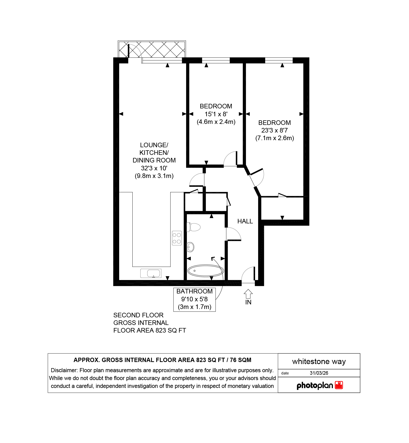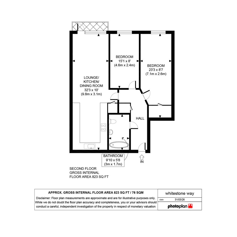 Accommodation: Entrance hall, bathroom, 2 bedrooms and an open plan kitchen/living
