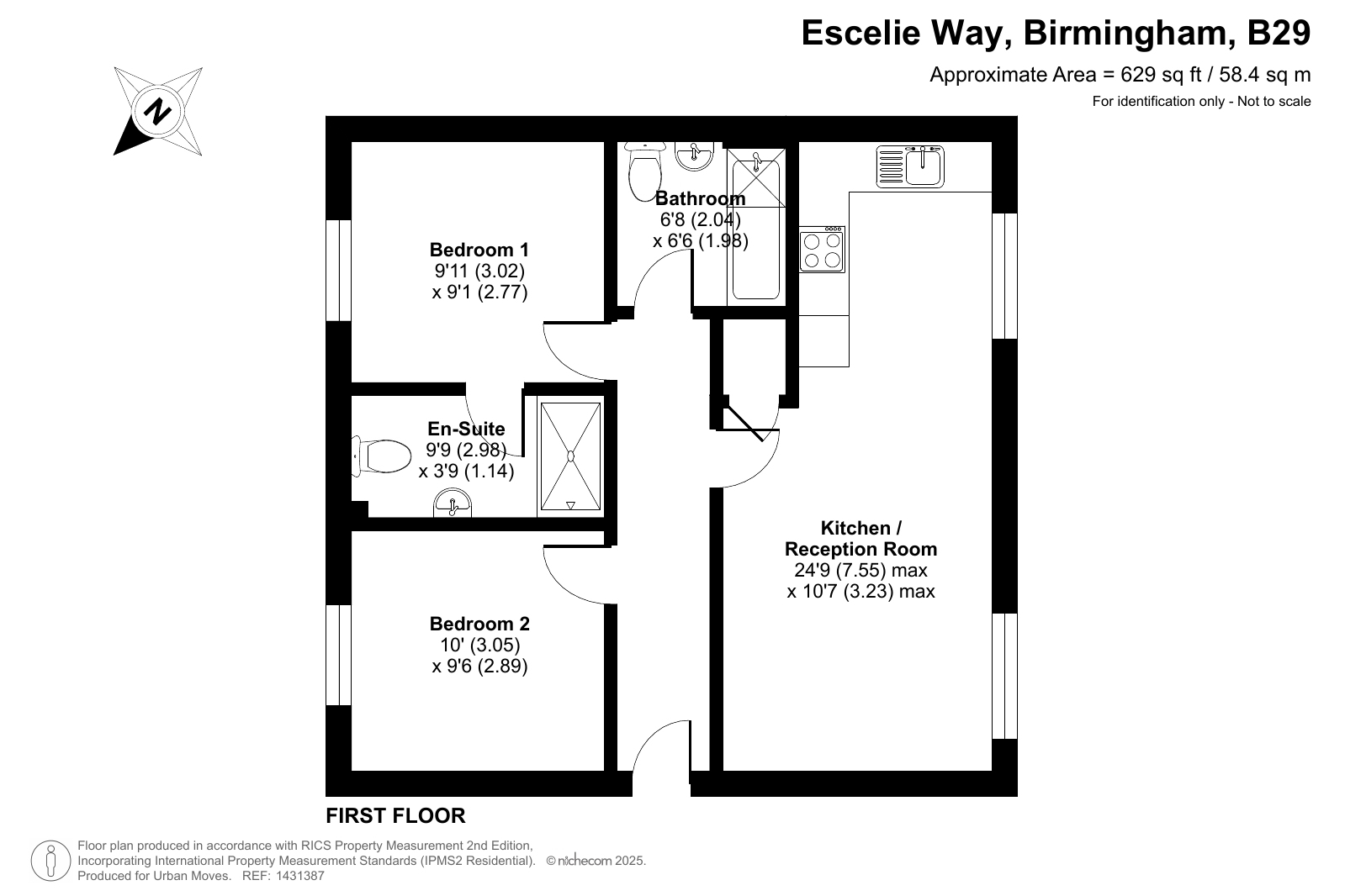 A first-floor flat in a recently-constructed development, built in the style of a traditional terrace. The well-presented property has a twenty-four-foot reception with semi-open-plan kitchen and a pair of large, south-west-facing windows. There is a main bedroom with en-suite shower room plus a similar-sized second double bedroom and a simple yet stylish bathroom. Well insulated walls, high performance glazing and a modern gas central heating system all contribute towards a very good energy-efficiency rating. To the rear of the block is a car park which includes a space allocated to this flat. Escelie Way is also just a short walk from Selly Oak Railway Station and the nearby shopping centre.
