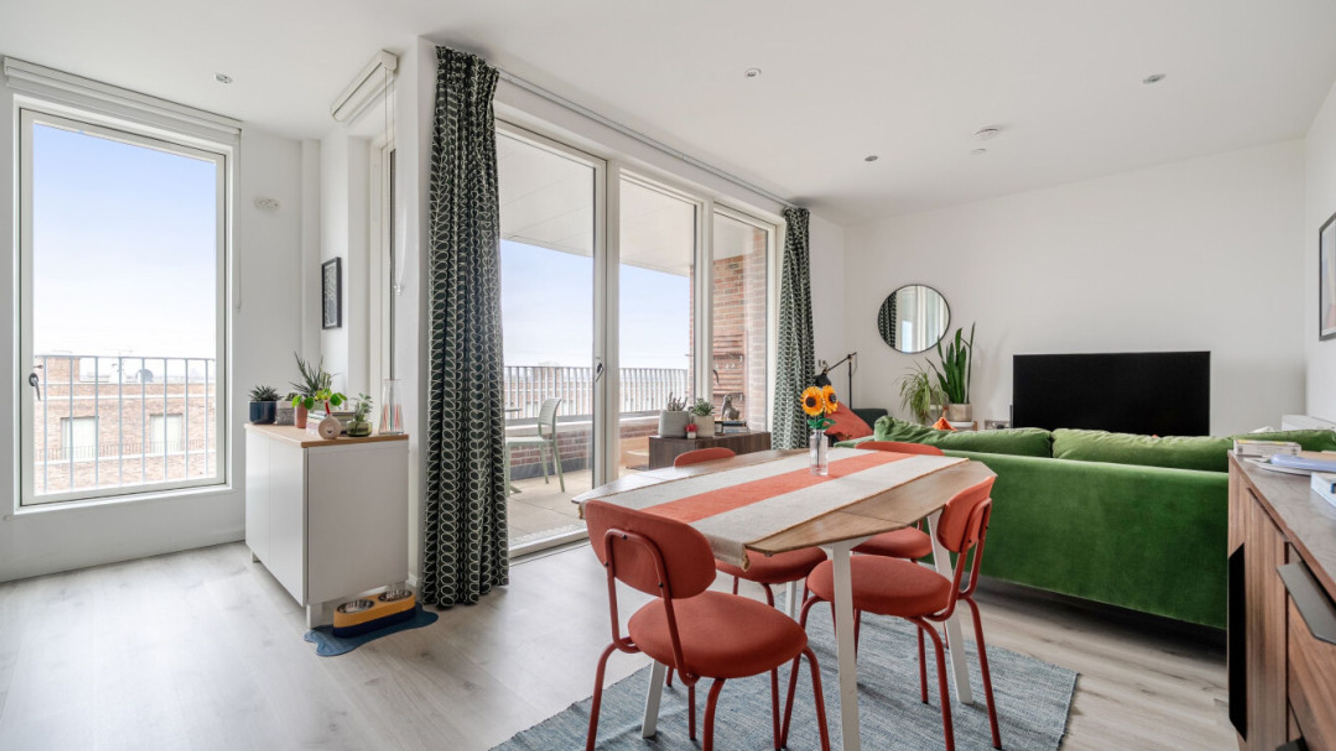 Private balcony / Modern spacious living / Built in storage