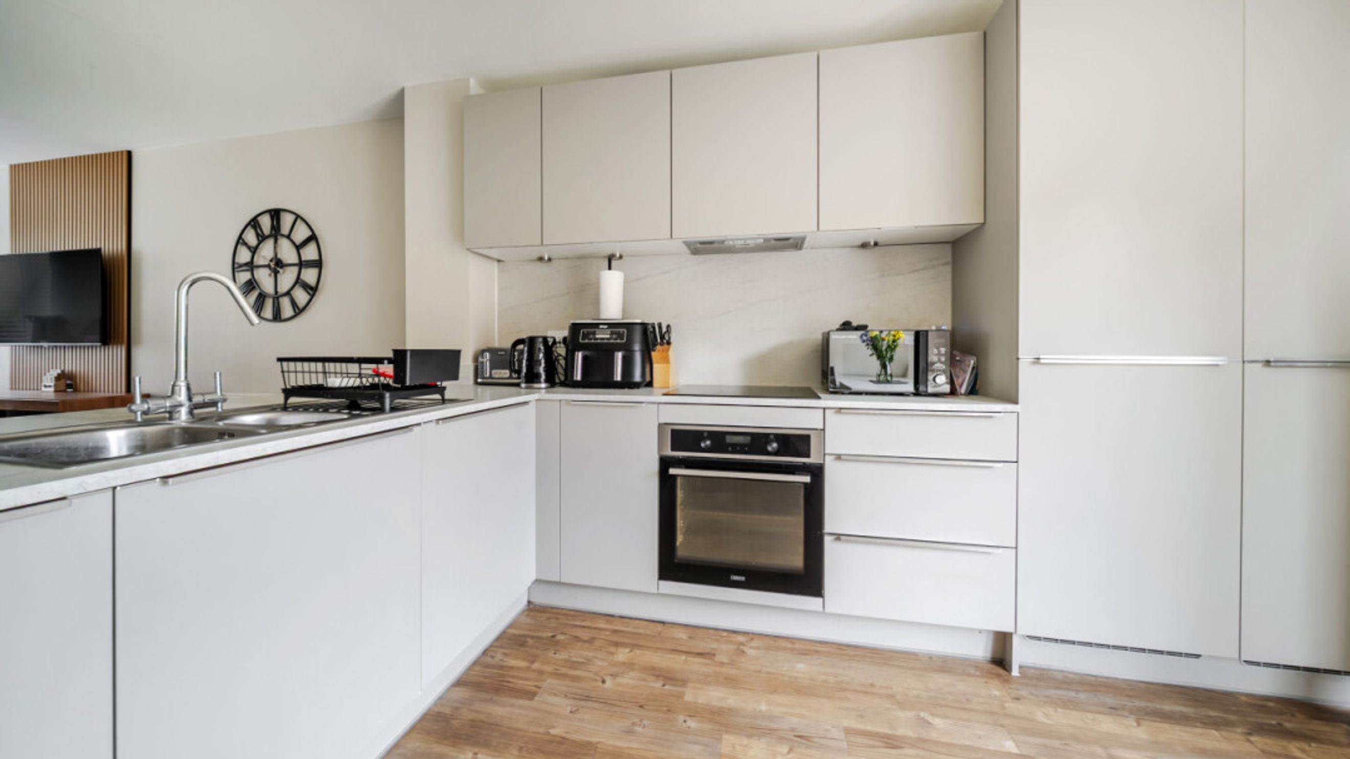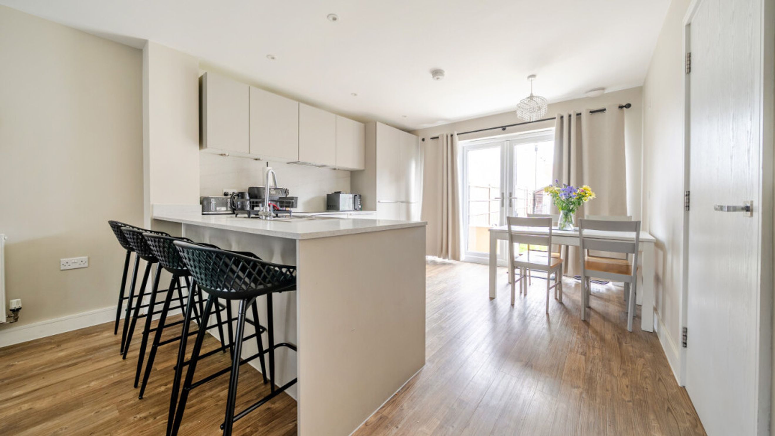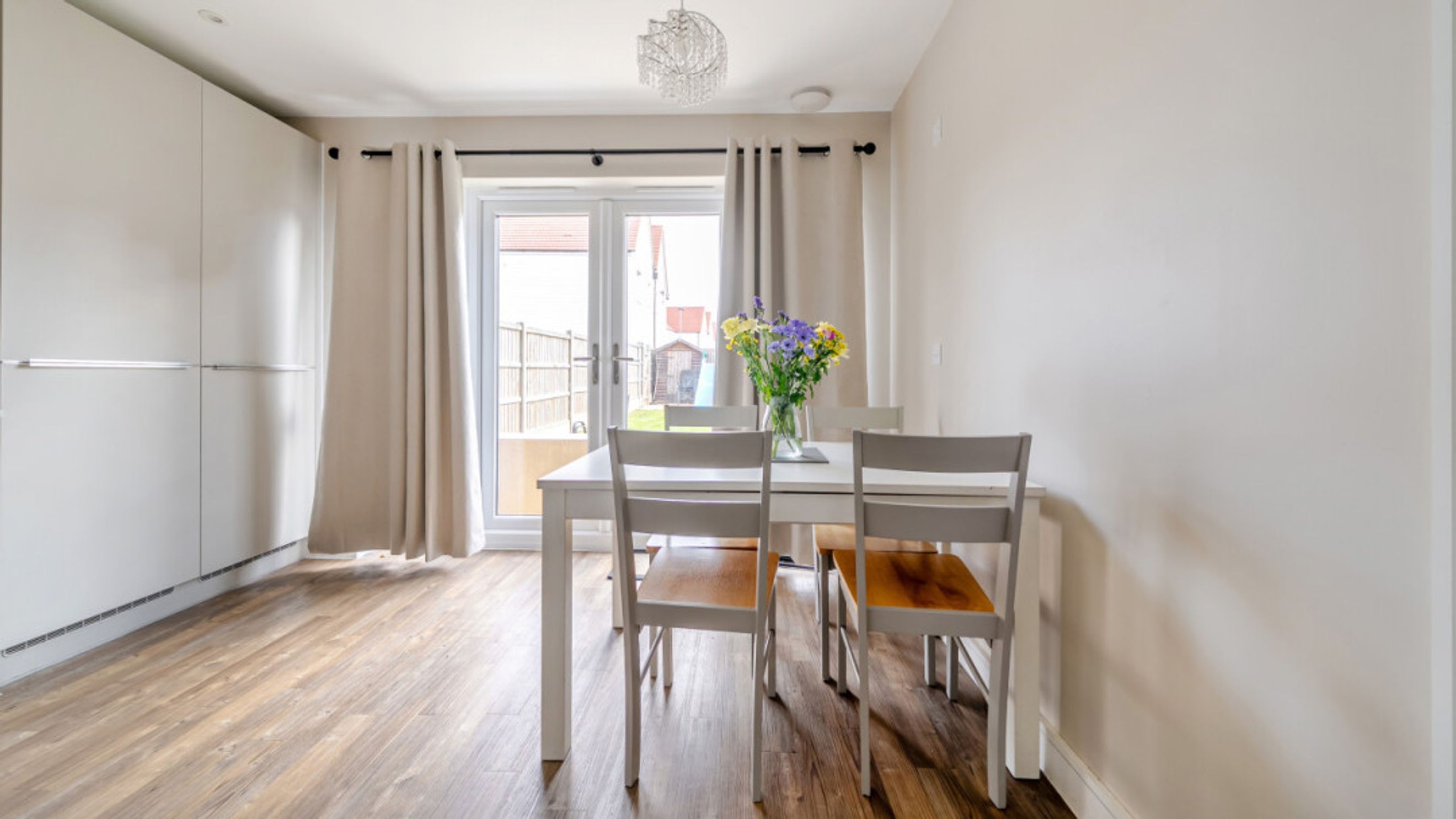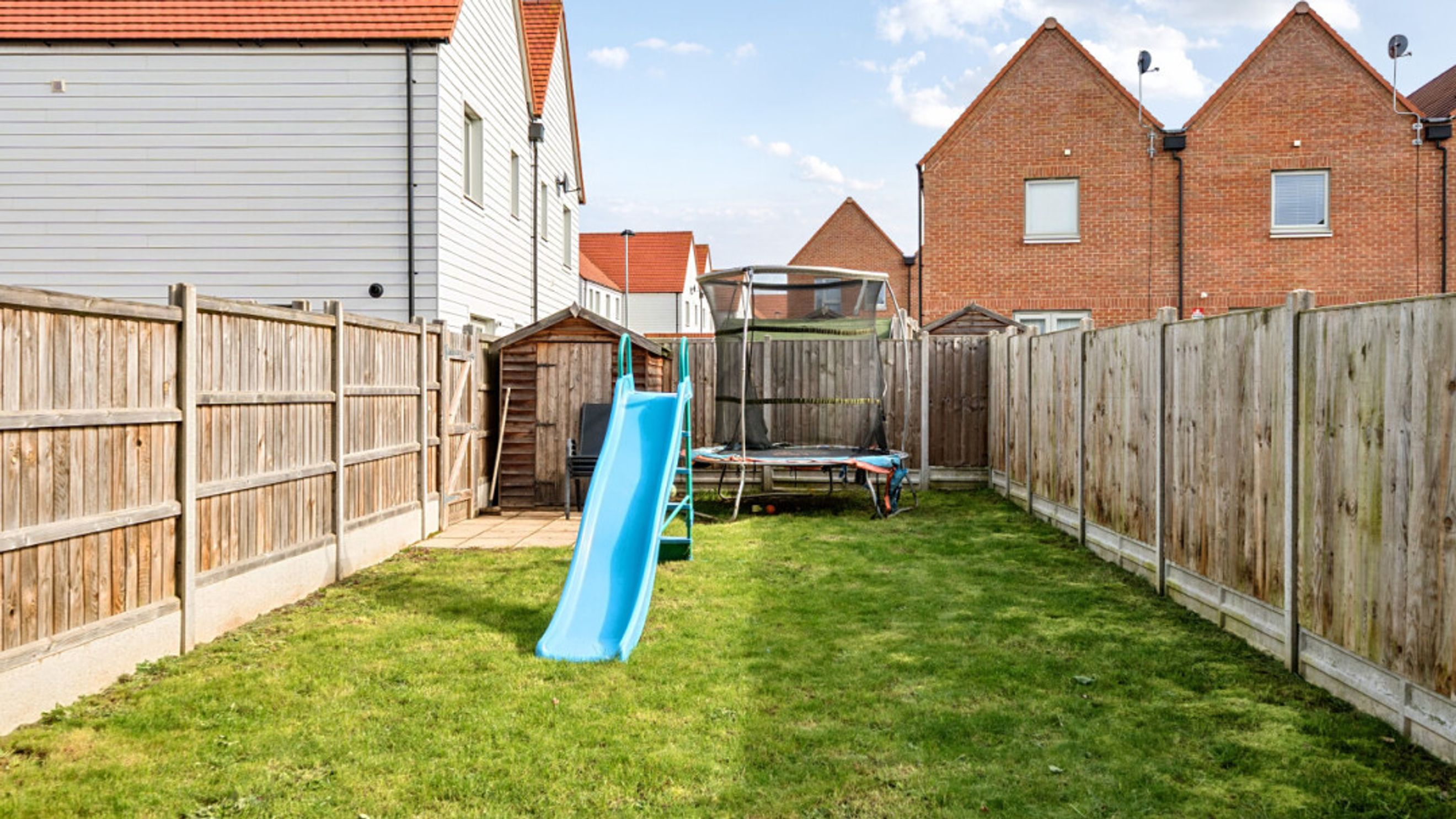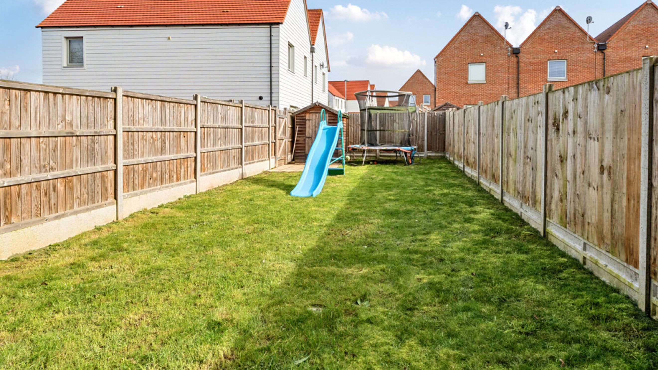 The ground floor of this well presented home consists of a dual aspect open plan kitchen/diner living room opening via patio doors onto a south facing private garden laid mainly to lawn and with benefit of a shed. A gate in the rear fence takes you to your parking spaces. There is also a utility room/WC on the ground floor as well as an understairs storage cupboard. The modern kitchen features fully integrated appliances. On the first floor find three double bedrooms, the master having in-built storage and an en-suite shower room. A contemporary bathroom serves the other bedrooms.