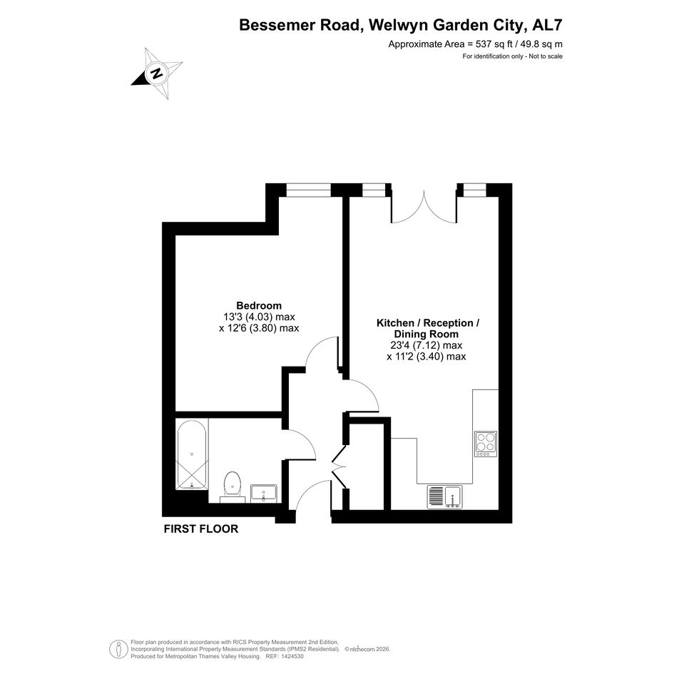 The property on the first floor comprises a hallway leading to an open-plan kitchen and reception room with a Juliet balcony, a good-sized bedroom and a bathroom. Perfect for singles or couples.