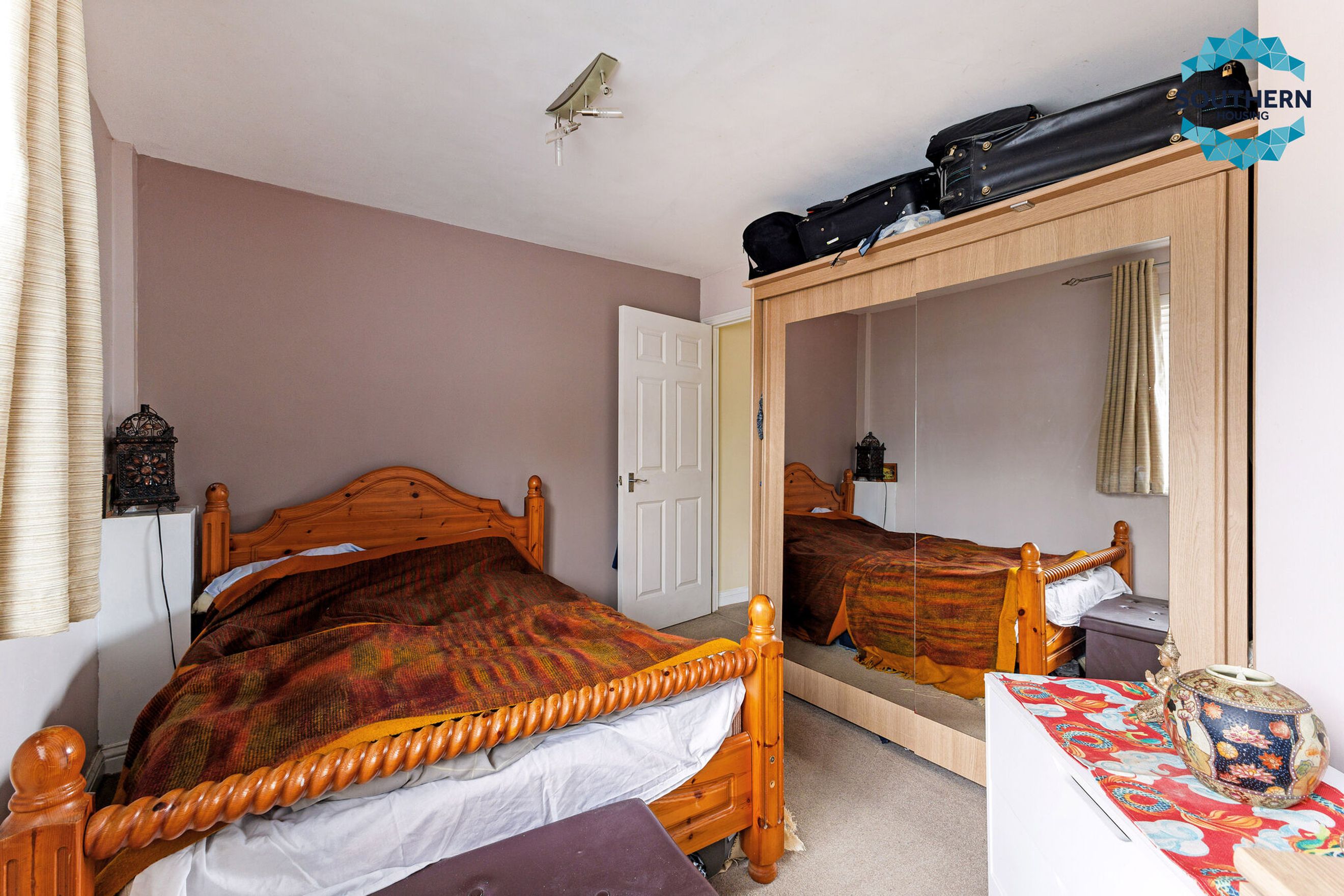 From here, we move on to the bedrooms. The first is the master bedroom-a large double room with enough space to accommodate all your bedroom furniture needs. The second bedroom is also a generously sized double.