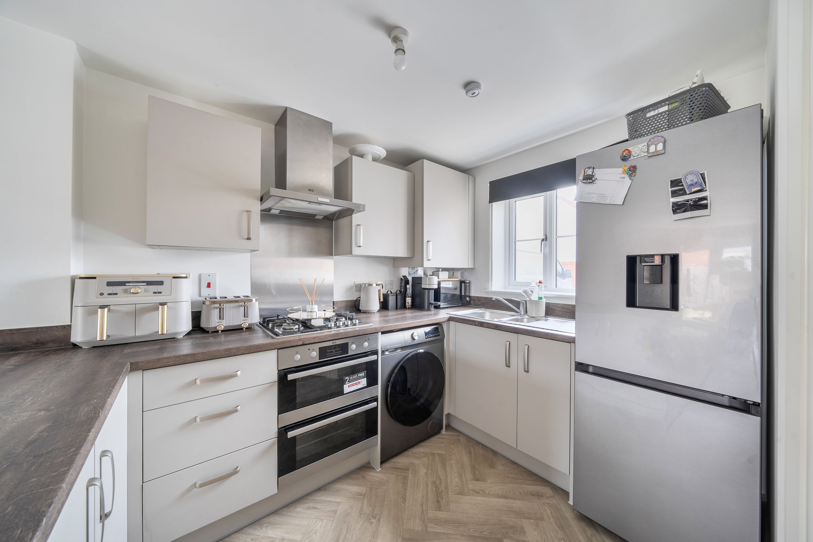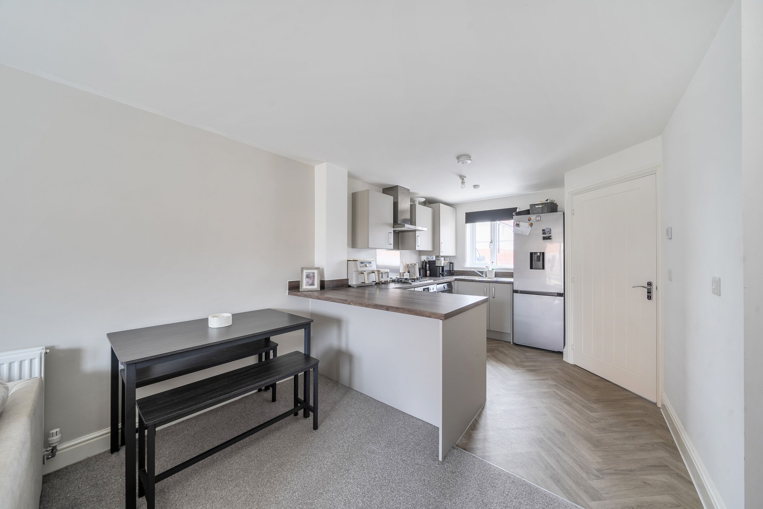 The ground floor welcomes you with a bright and spacious open-plan kitchen and reception area, designed for modern living and entertaining. The layout provides ample space for both dining and relaxation, while the kitchen is thoughtfully arranged to maximise functionality. A convenient downstairs cloakroom and useful storage complete this level.