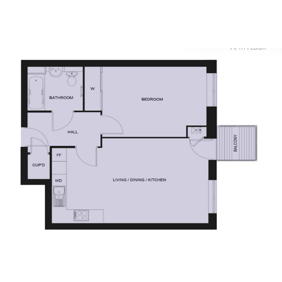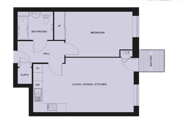 One bedroom fifth floor apartment