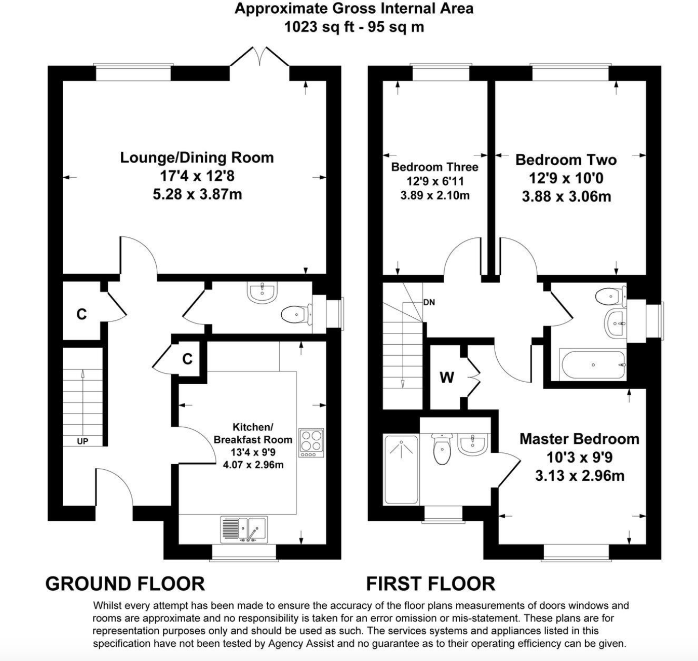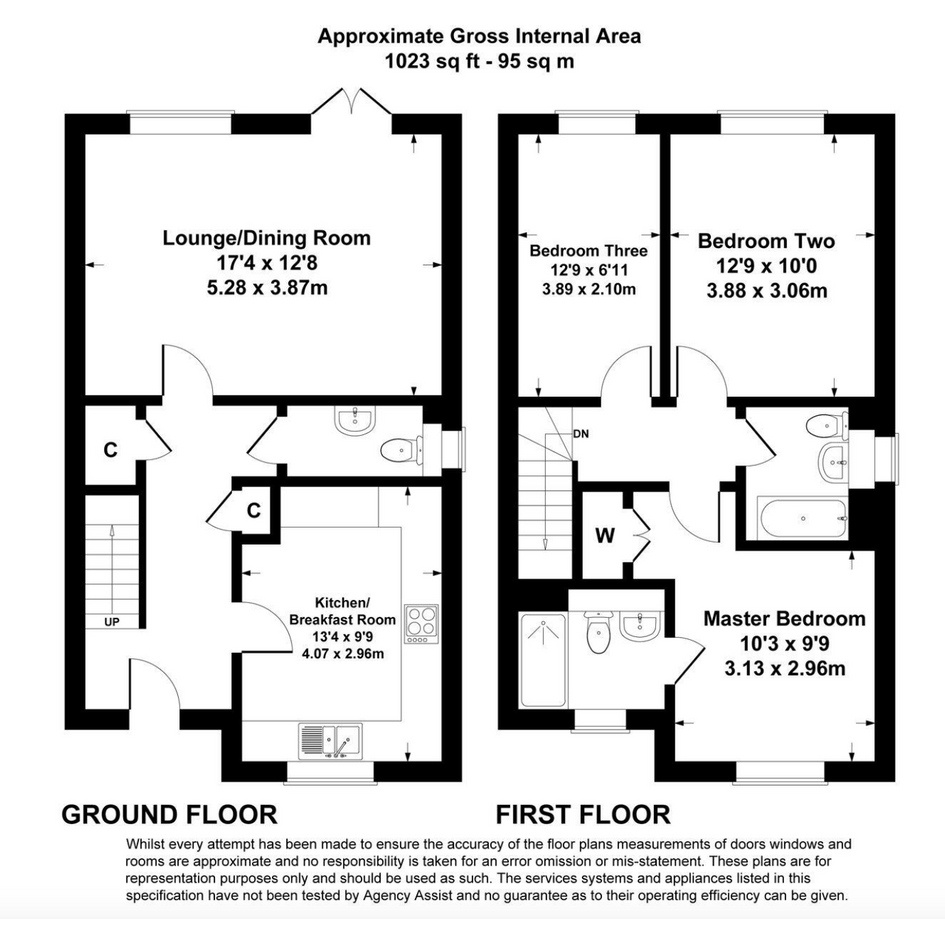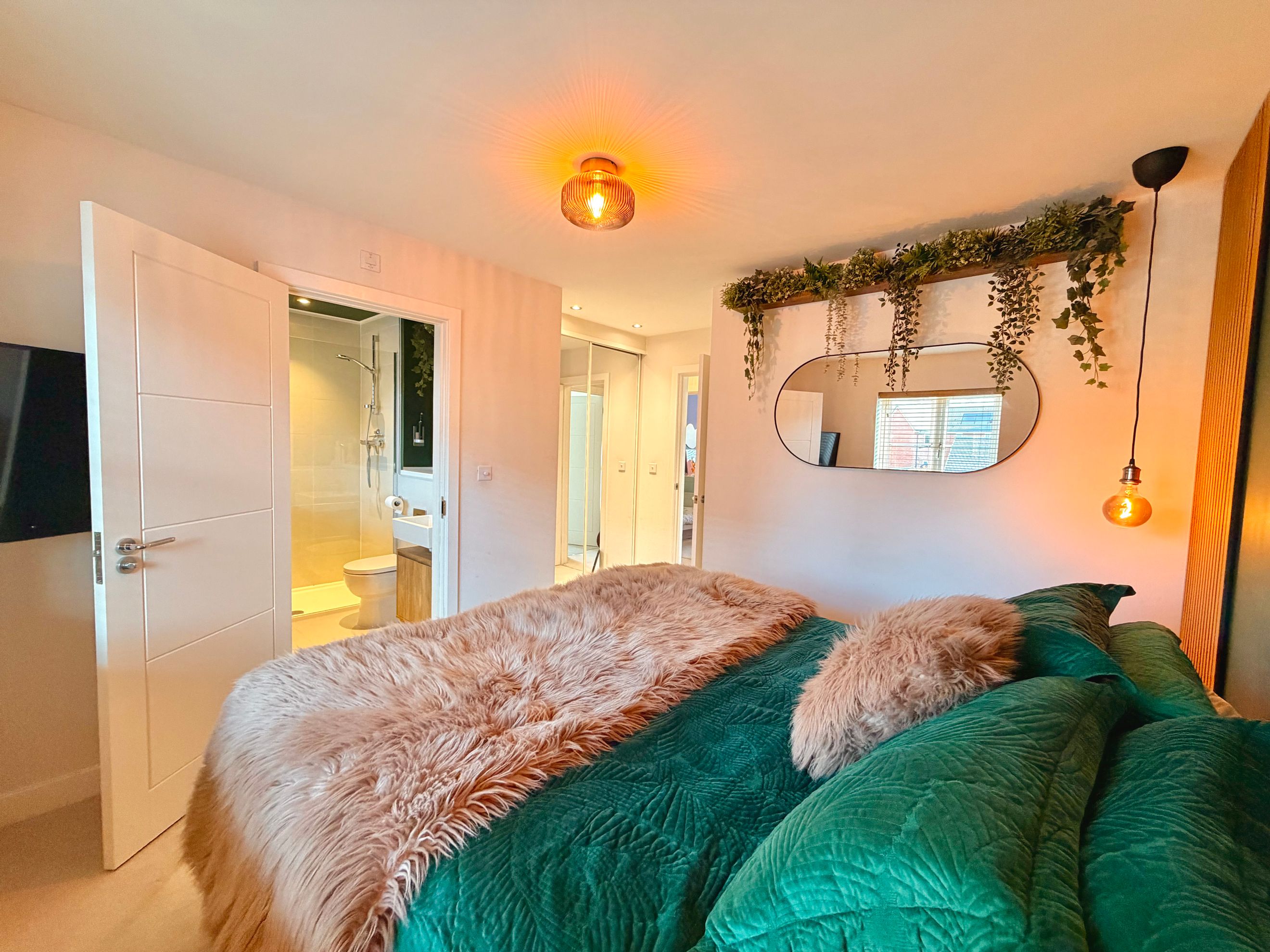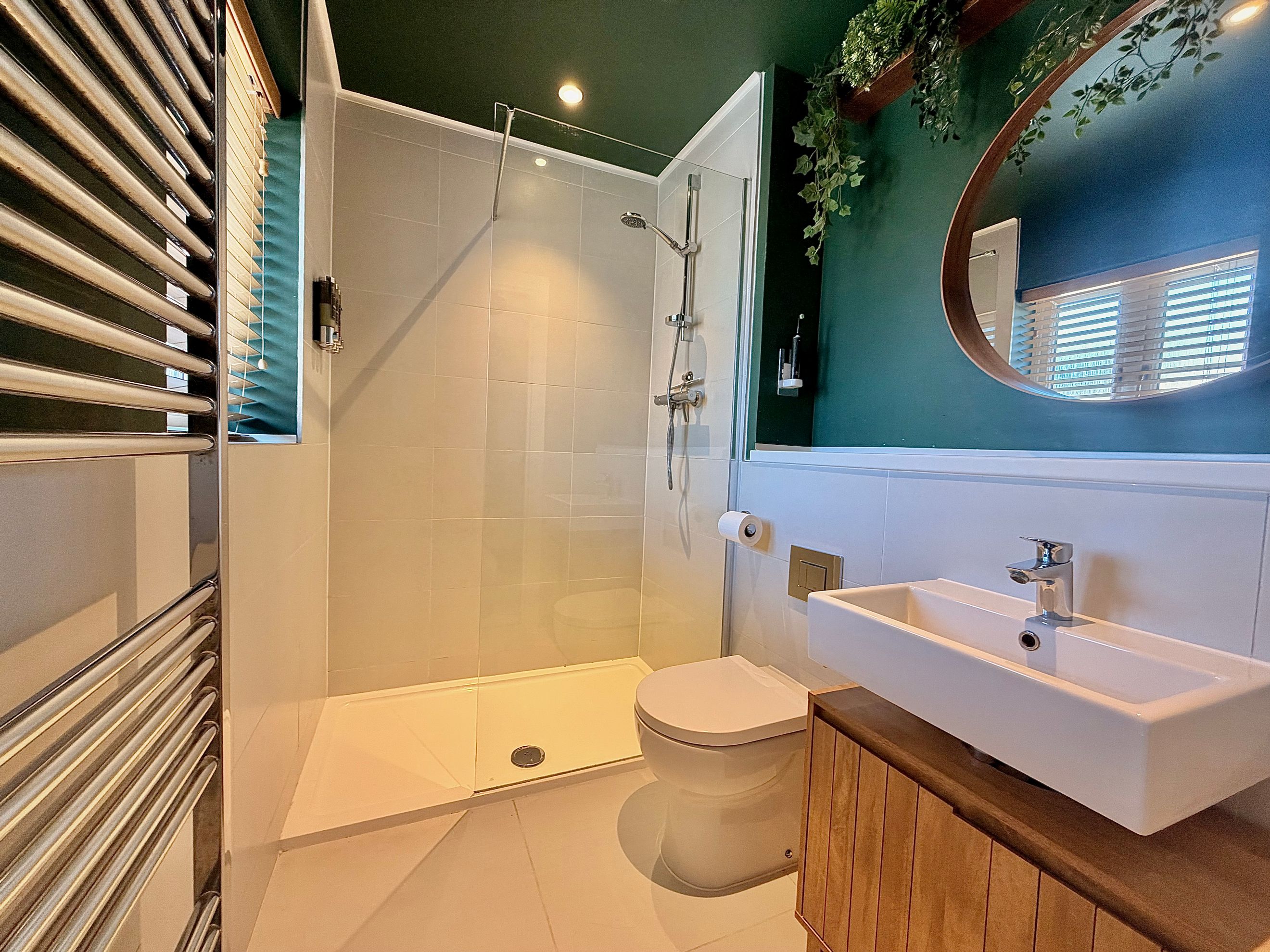 Upstairs, the property offers three bedrooms—two comfortable doubles and one single. The master bedroom benefits from a built‑in wardrobe and a private ensuite shower room. The family bathroom includes a modern three‑piece suite with a shower over the bath and a window for natural ventilation.