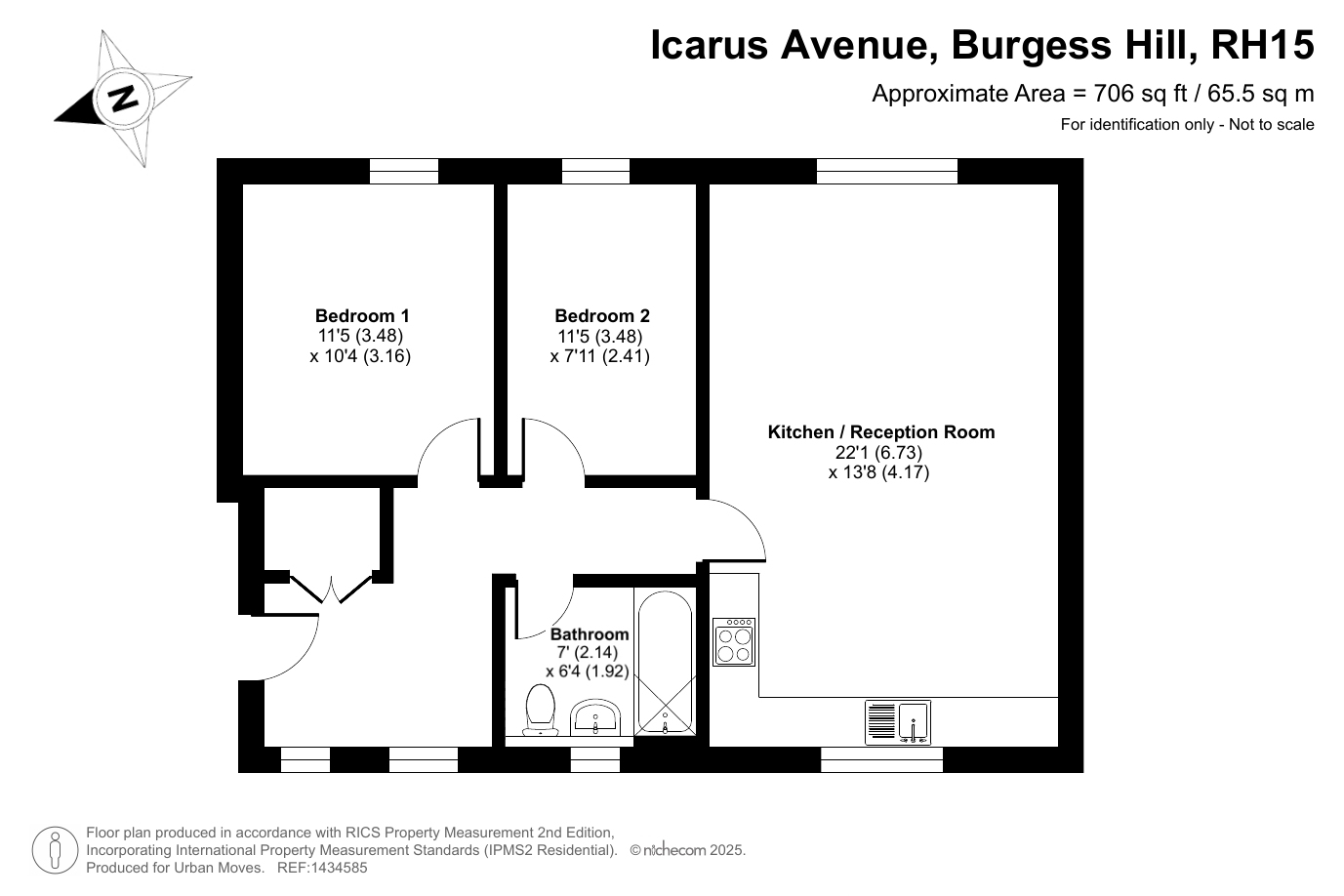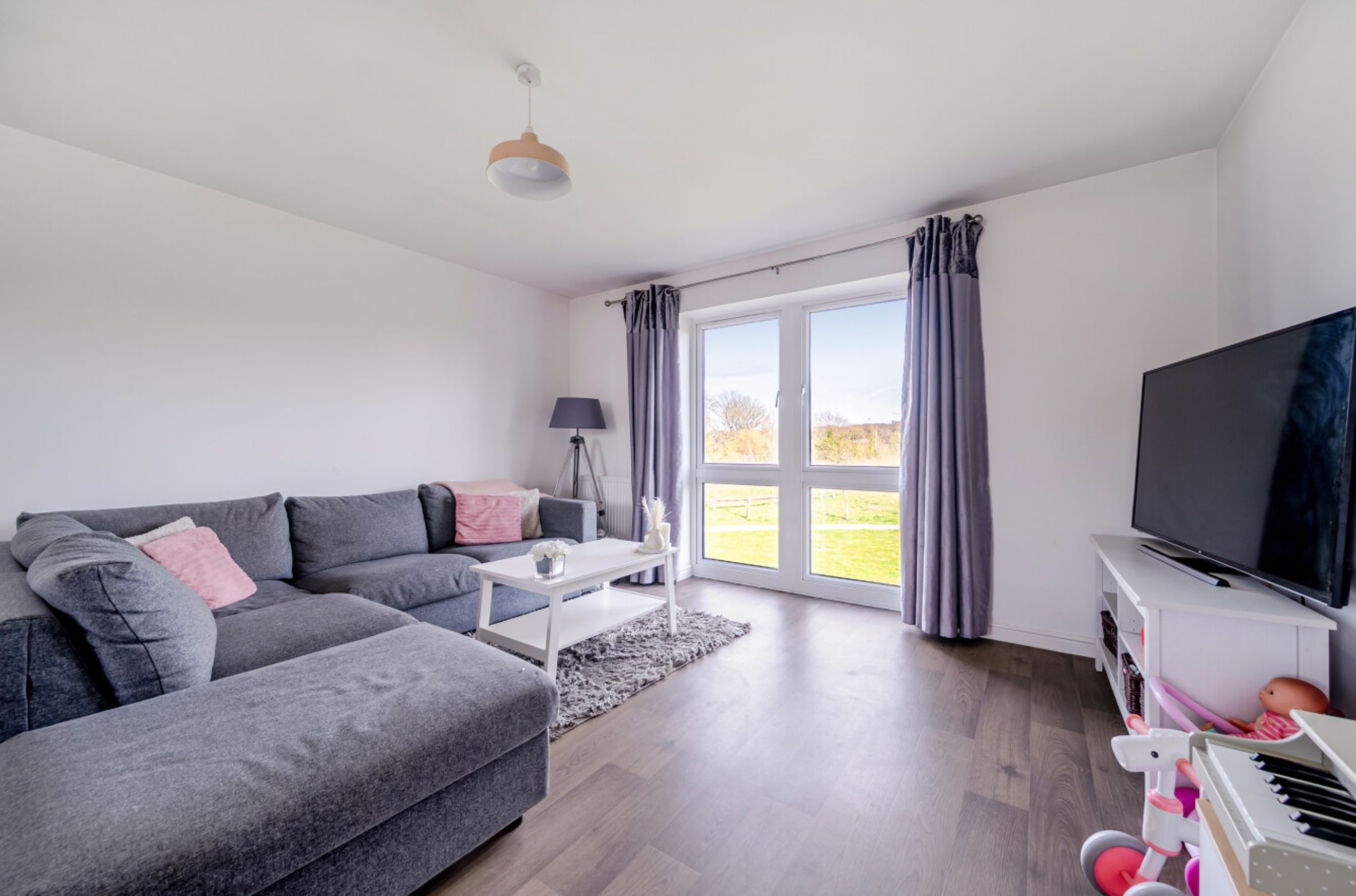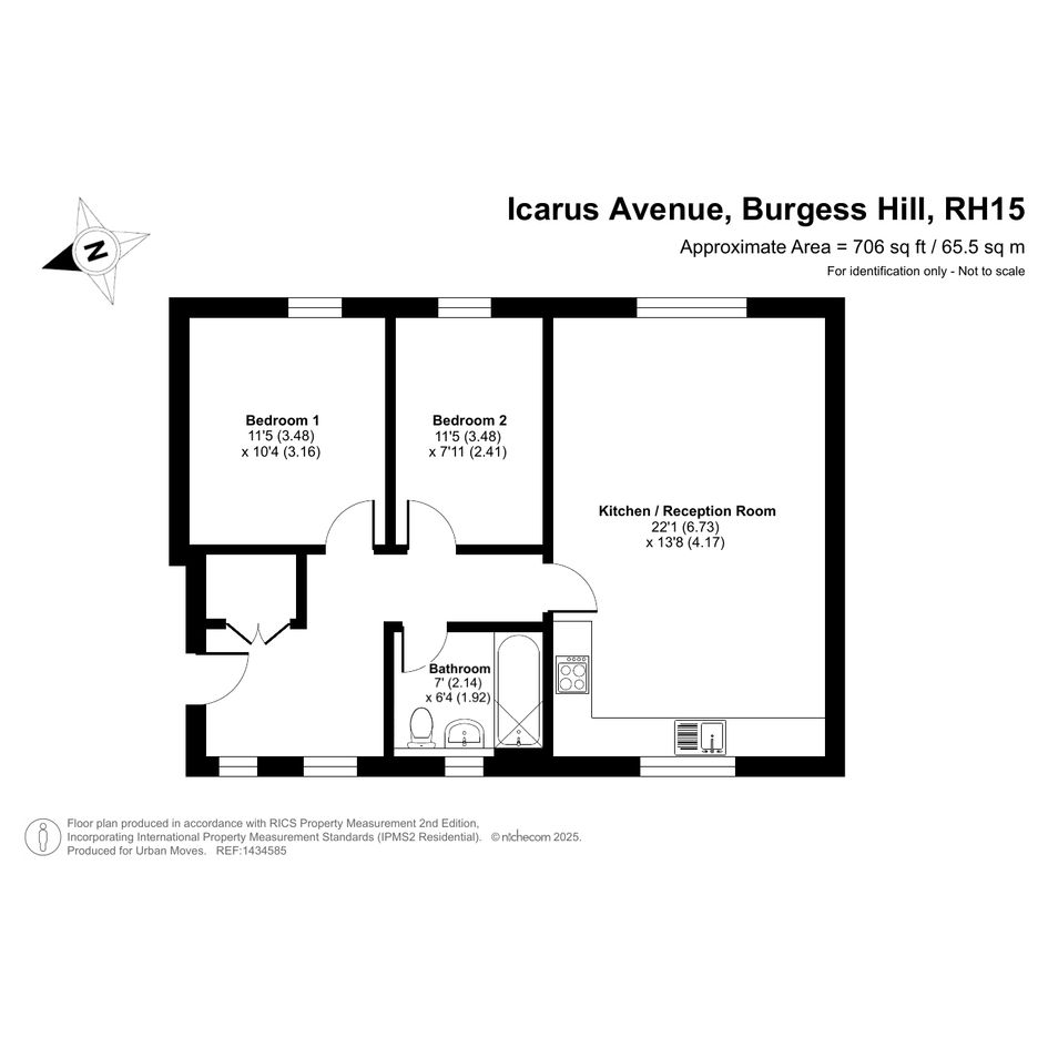 This recently-constructed development is on the semi-rural outskirts of Burgess Hill while still being within easy reach of the railway station, shops and other amenities that the town centre has to offer. The flat available is on the first (top) floor and immaculately presented. There is a naturally-lit entrance hall with storage/utility cupboard, a stylish bathroom, a spacious main bedroom plus a second bedroom which is a comfortable double. The twenty-two-foot, open-plan kitchen/reception room has large windows and overlooks an area of lawn on the east/south-east-facing side of the building. Well insulated walls and roof, high performance glazing and a modern gas central heating system all contribute towards a very good energy-efficiency rating. The property comes with use of an allocated parking space and the local primary school and secondary school are both Ofsted-rated' Good'. The Croft Park is immediately south of the development and nearby Ditchling Common Country Park offers 180 acres of outside space to explore.