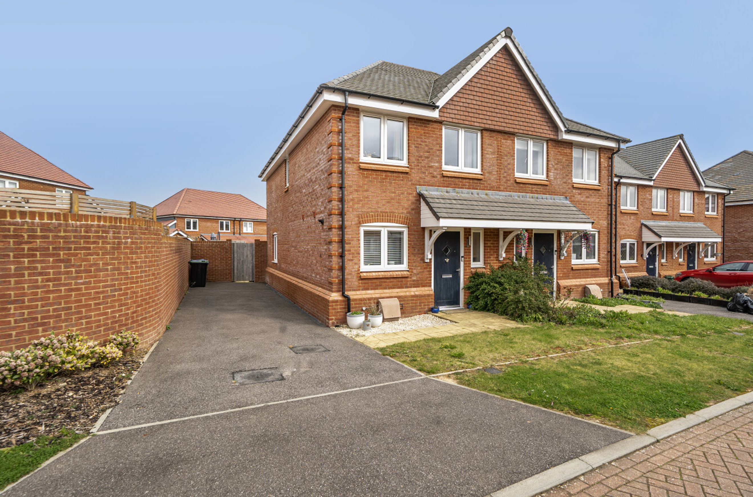 An attractive, recently-built house on the semi-rural outskirts of Hassocks. The stylishly-presented, semi-detached property has a conventional layout - a ground-floor cloakroom/WC and a smart, modern kitchen at the front, a dual-aspect reception room at the rear. A door leads out to a triangular garden with patio, lawn and timber shed. On the first floor of the house are two spacious bedrooms and a naturally-lit bathroom. Well insulated walls, roof and floor, high performance glazing and gas central heating have resulted in a very good energy-efficiency rating. A generously-sized driveway provides space for two, possibly three, cars and the railway station, shops and other amenities of the village centre are within comfortable walking distance or a very brief bike ride. Ofsted list several well-thought-of schools in the local area.