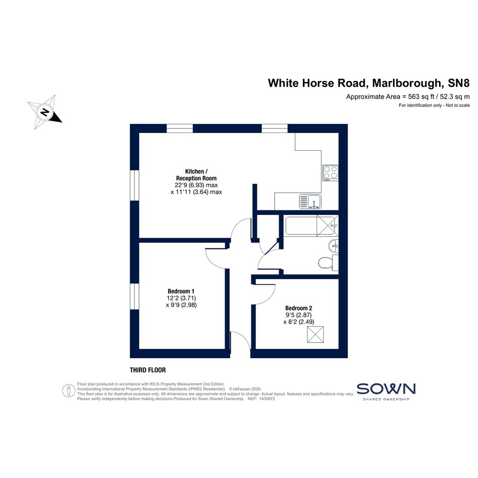 A well-presented second-floor apartment offering a bright and practical layout, ideal for modern living. The property features a spacious open-plan kitchen and reception area, creating a sociable hub with ample natural light and room for both dining and relaxation.