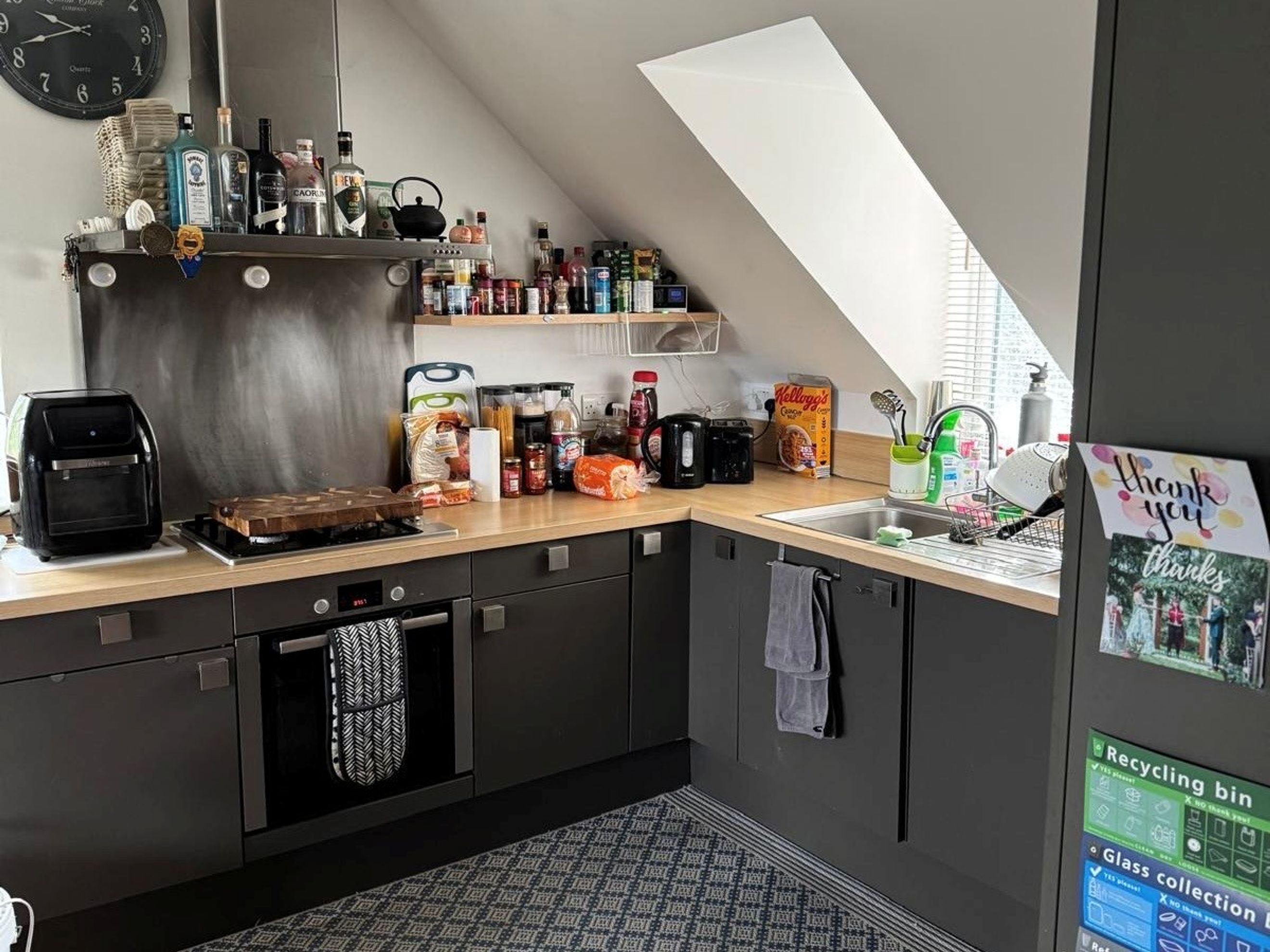 This spacious two bedroom flat has a dual aspect open plan living room and kitchen overseeing the peaceful nature outdoors.