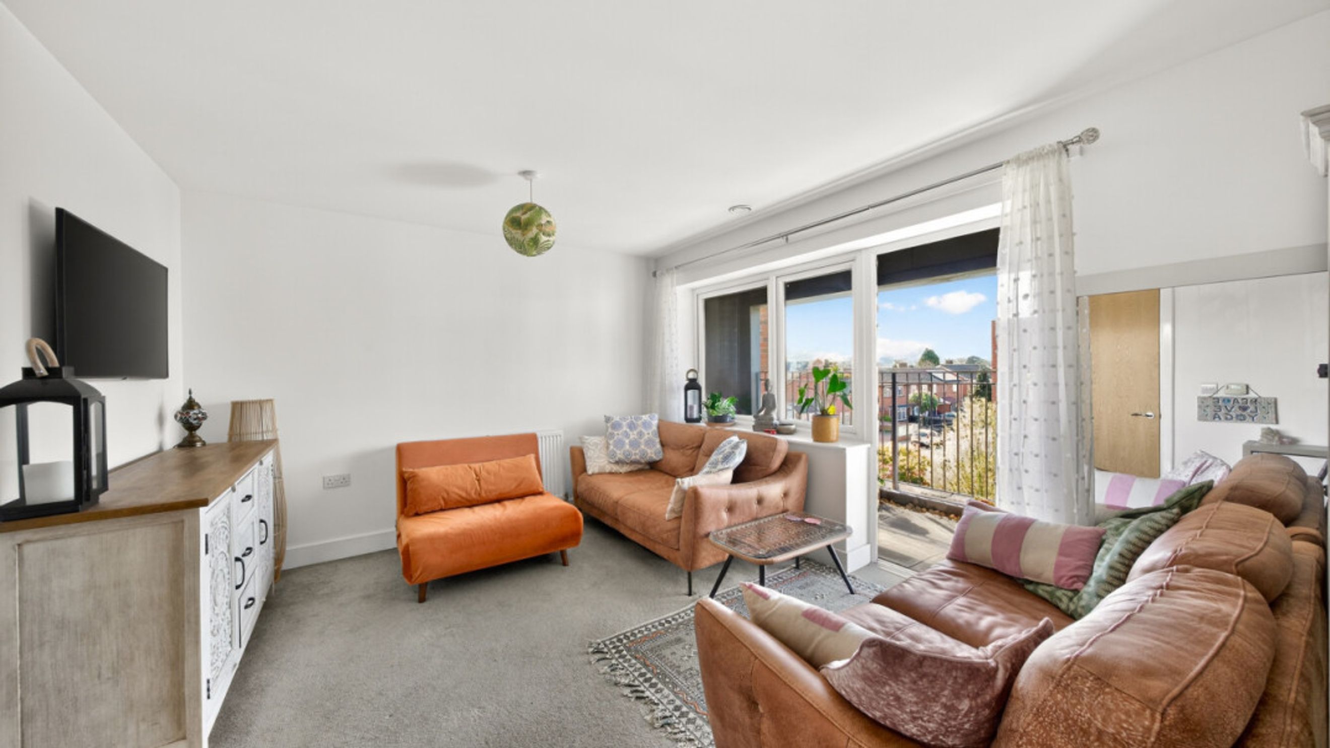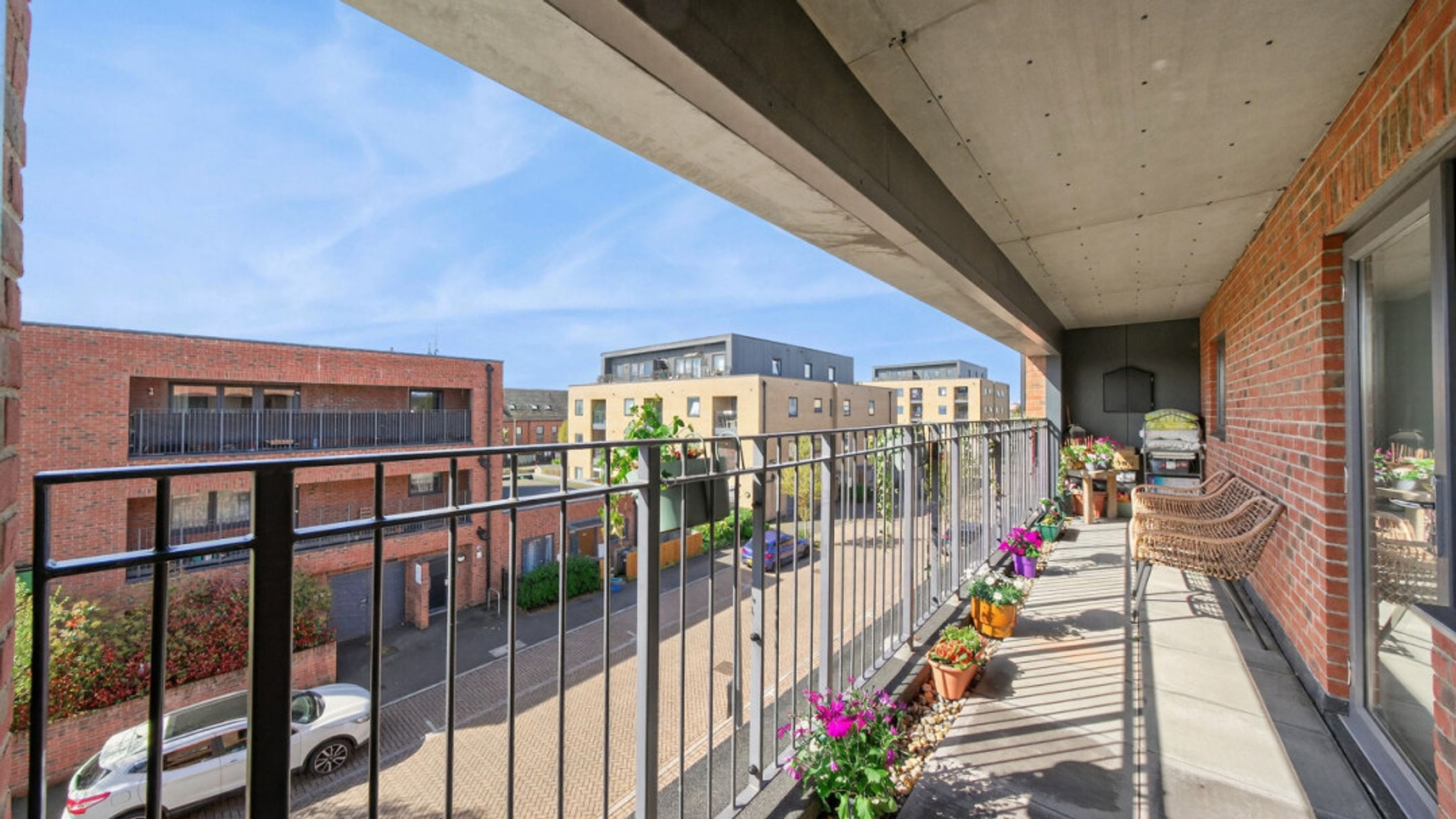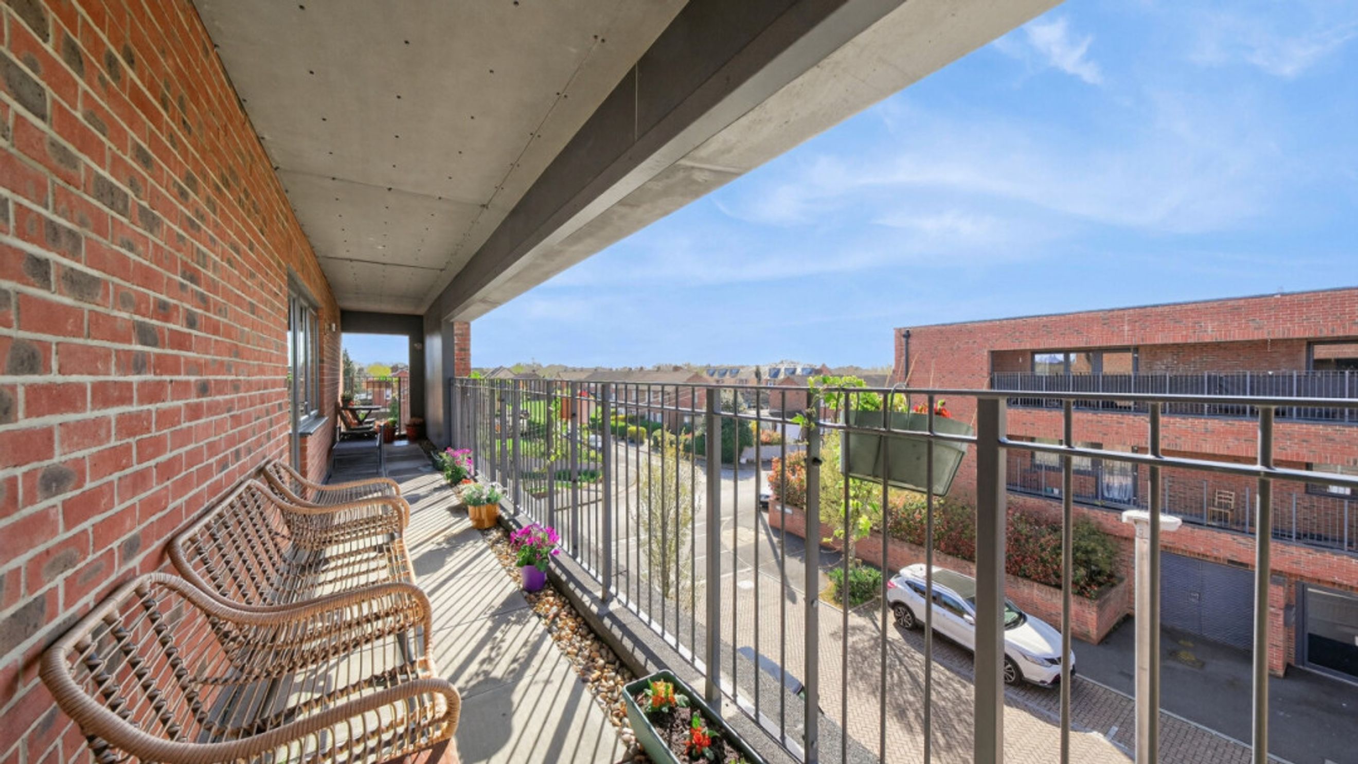 - Long private balcony spanning the property