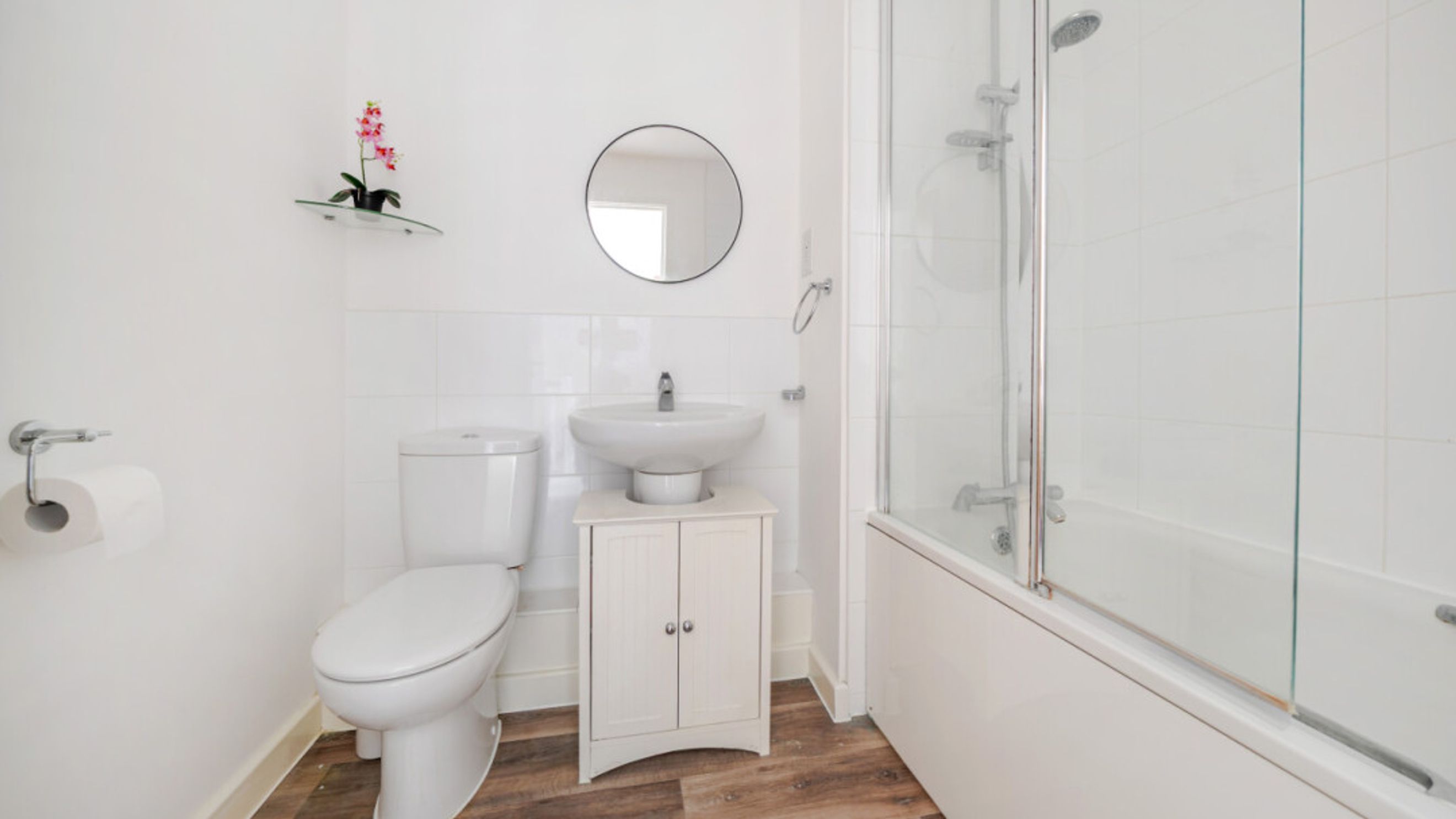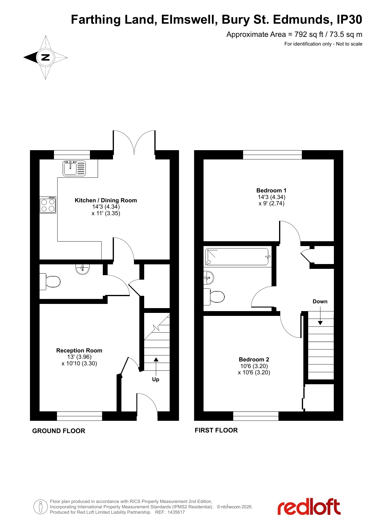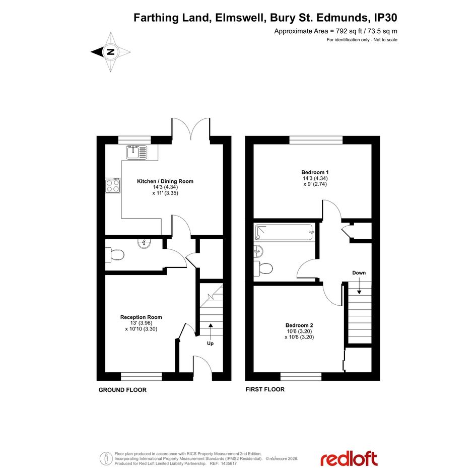 Upstairs, the property offers two generous double bedrooms, with the main bedroom benefitting from fitted storage. A modern family bathroom serves both rooms, complete with an over-bath shower and stylish fittings. Additional storage is available via built-in cupboards and a well-insulated loft, while gas central heating ensures comfort and efficiency.