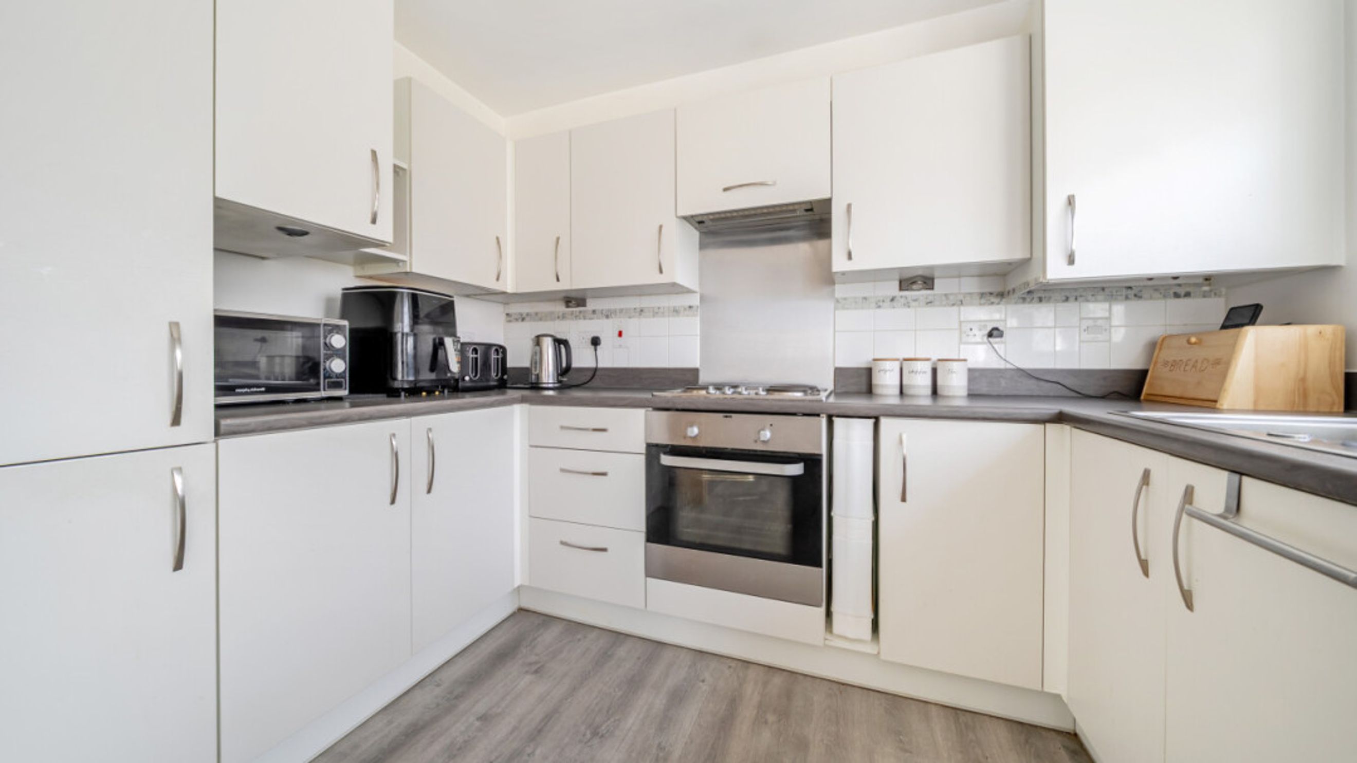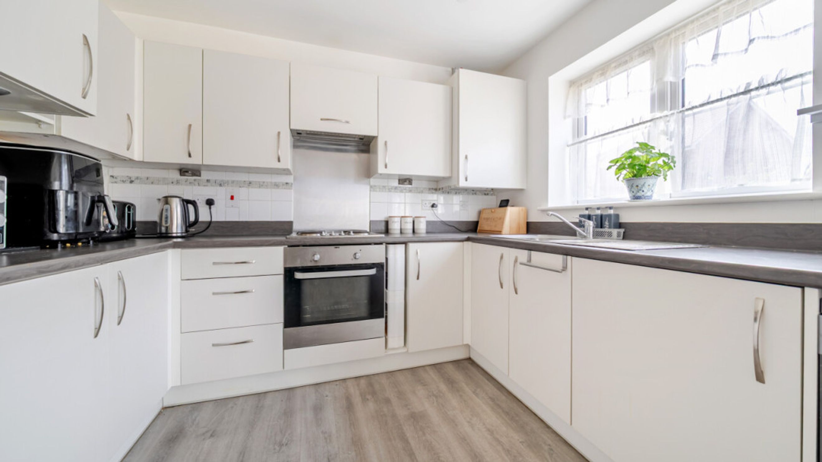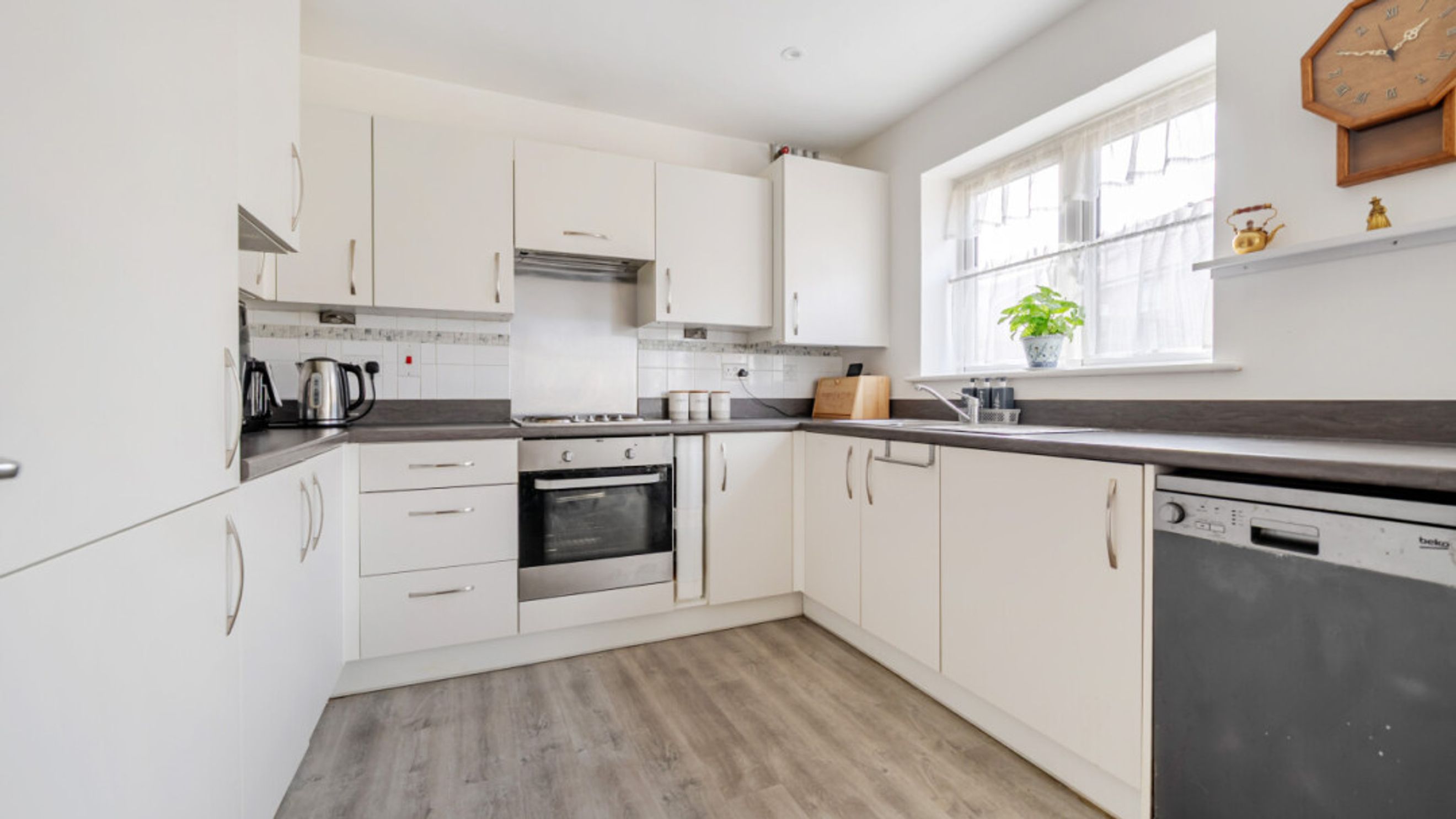 - Modern kitchen with fridge/freezer, washing machine, hob & oven