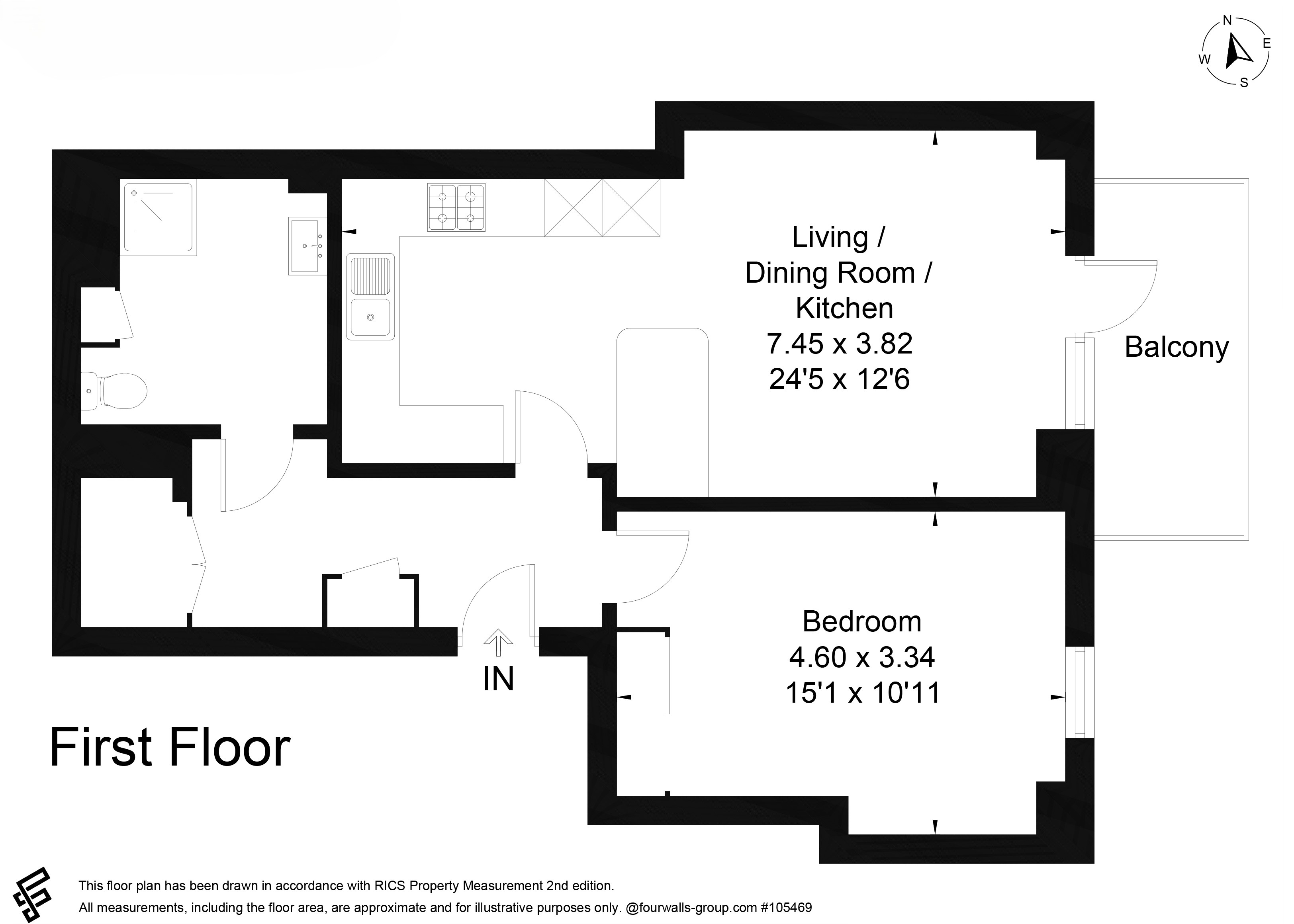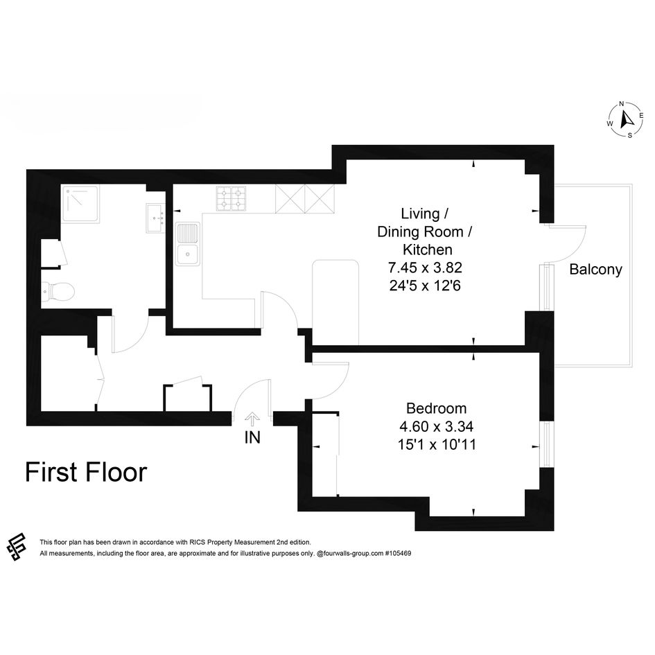 1 Double Bedroom 1st Floor Flat with balcony