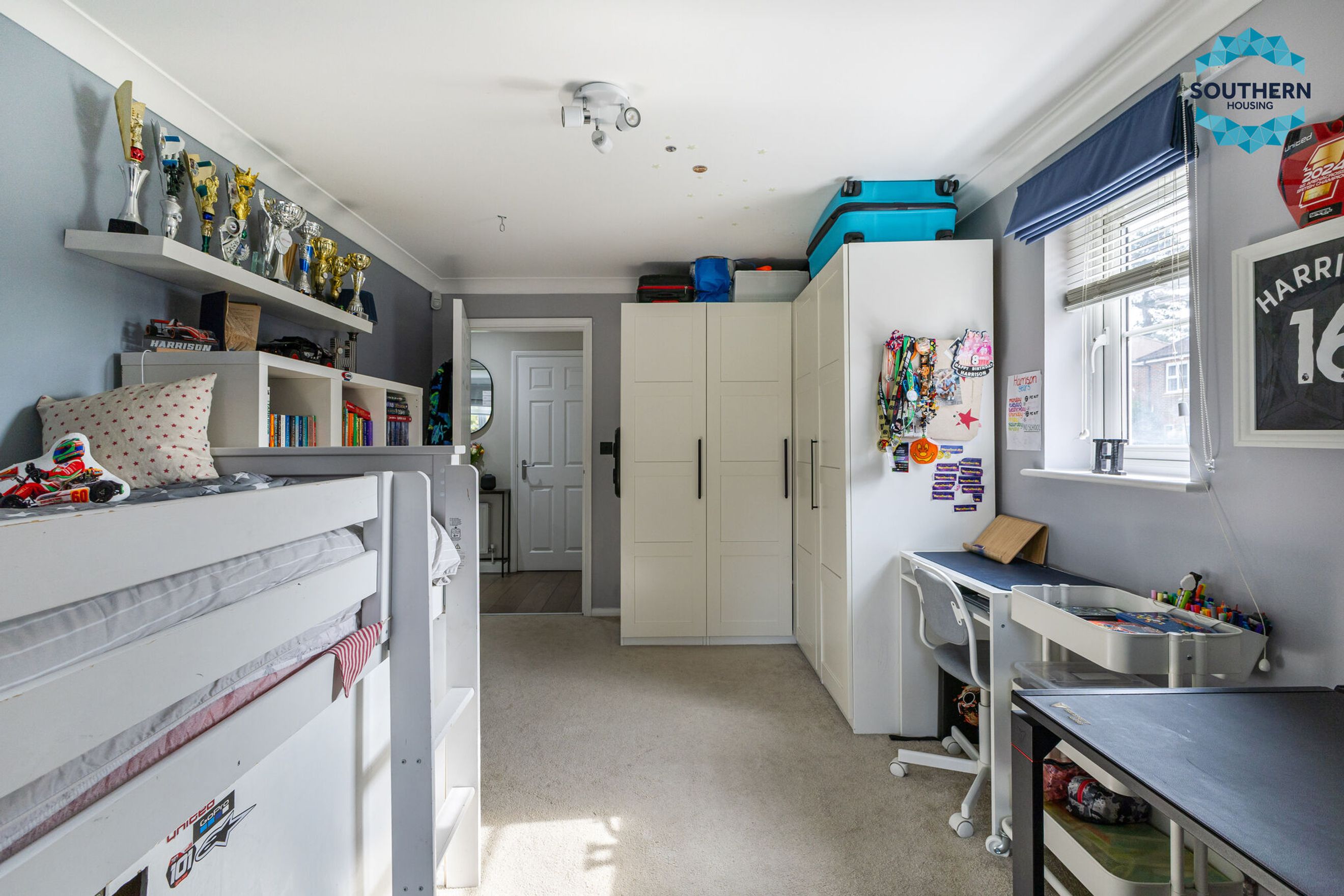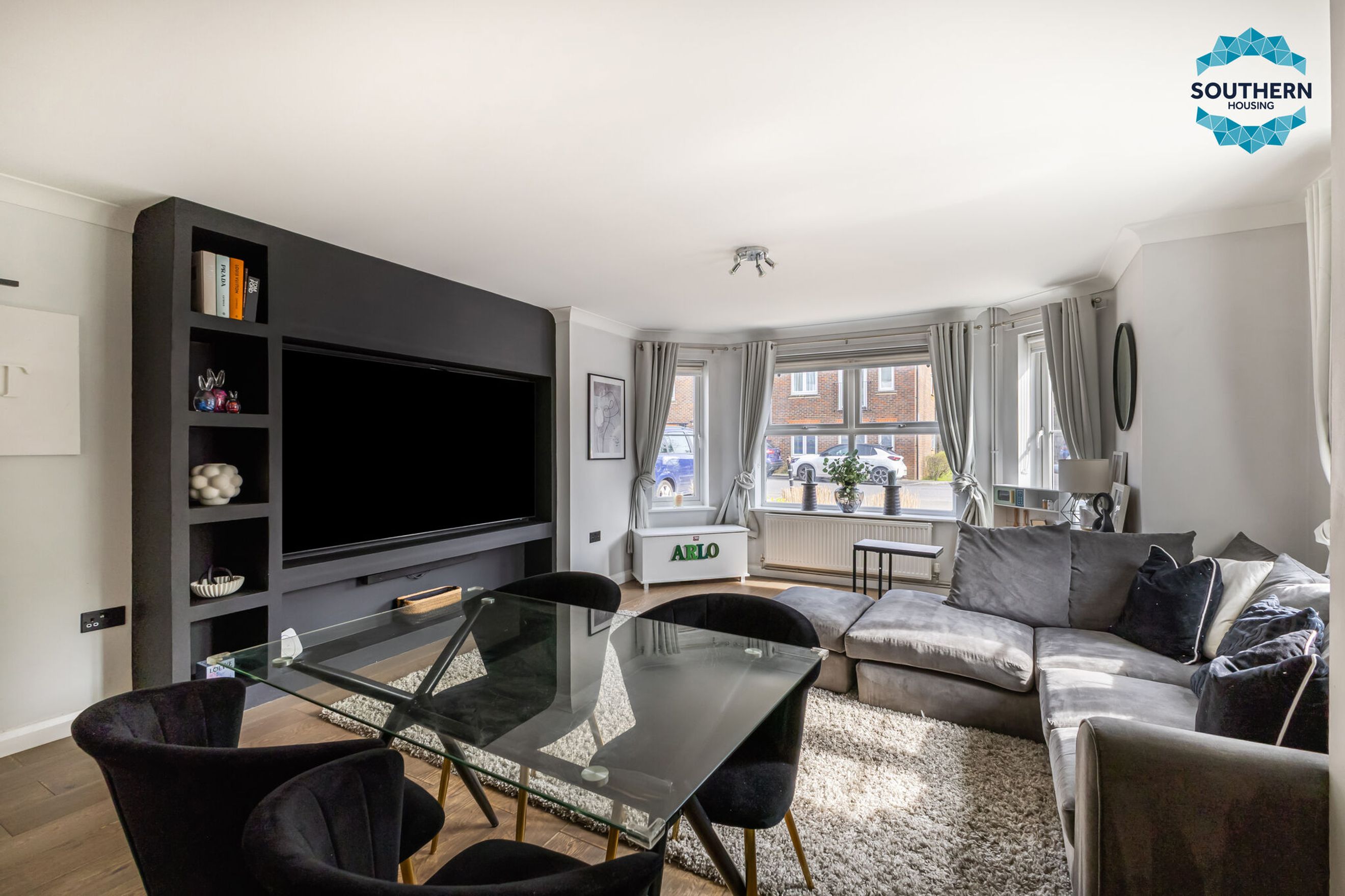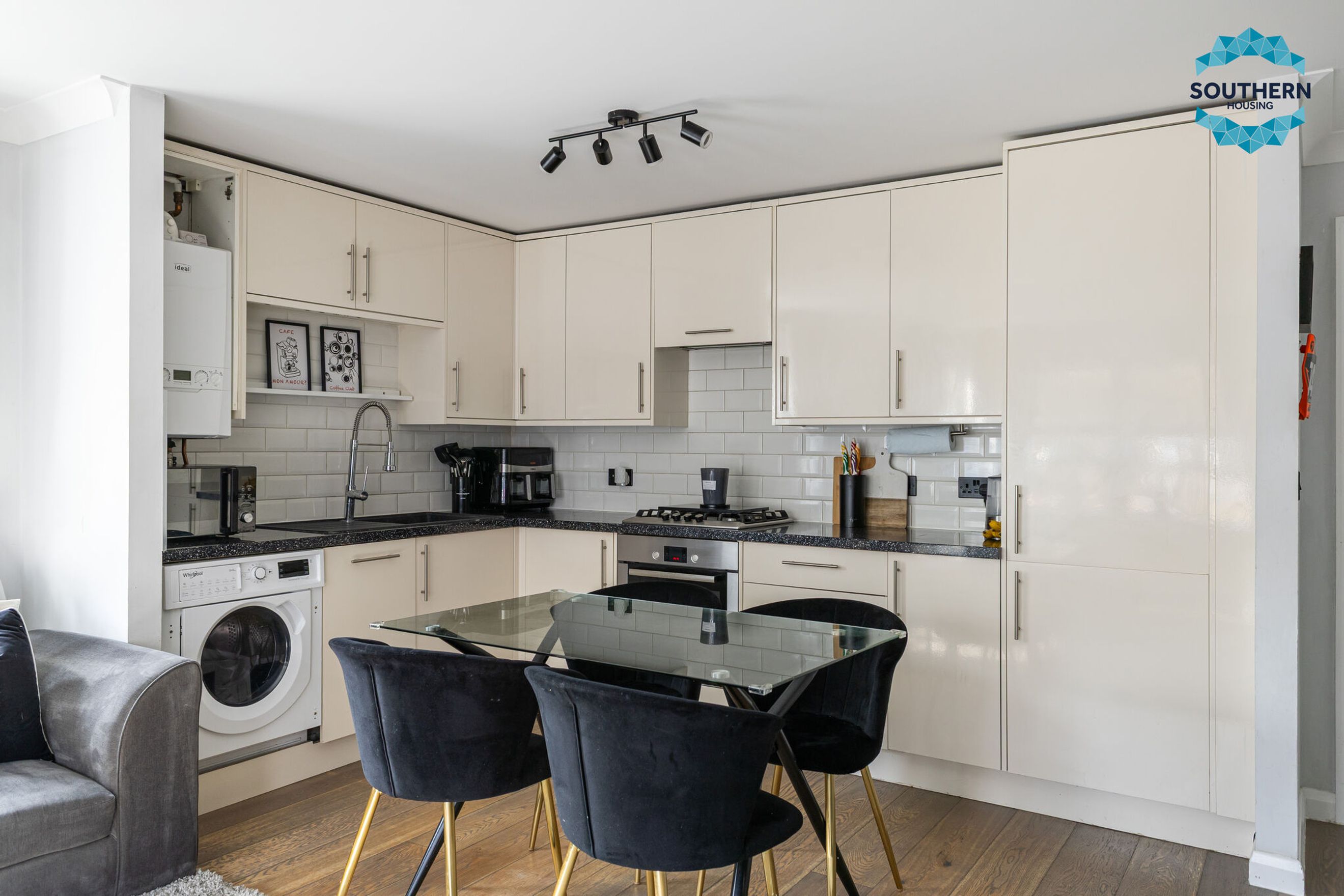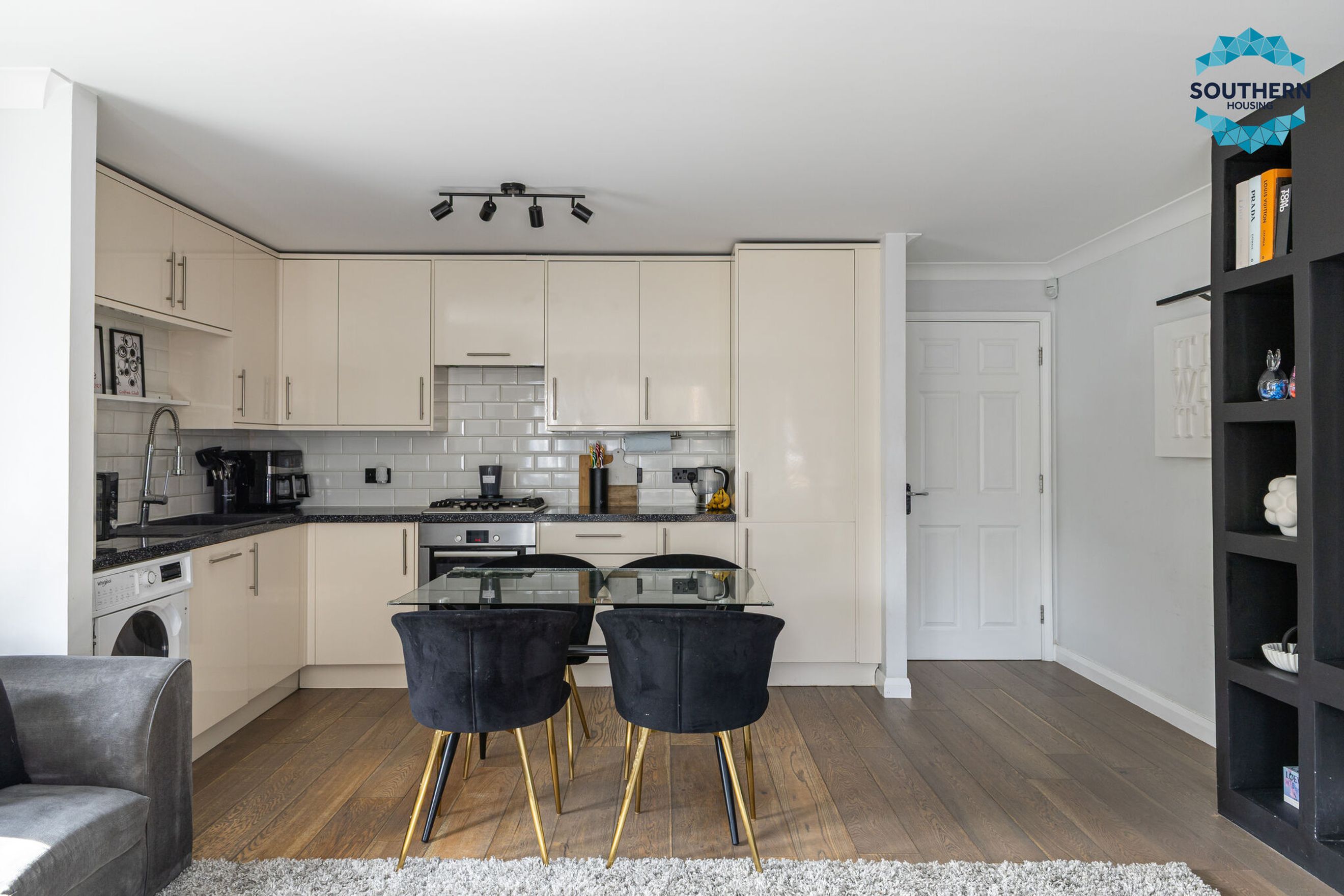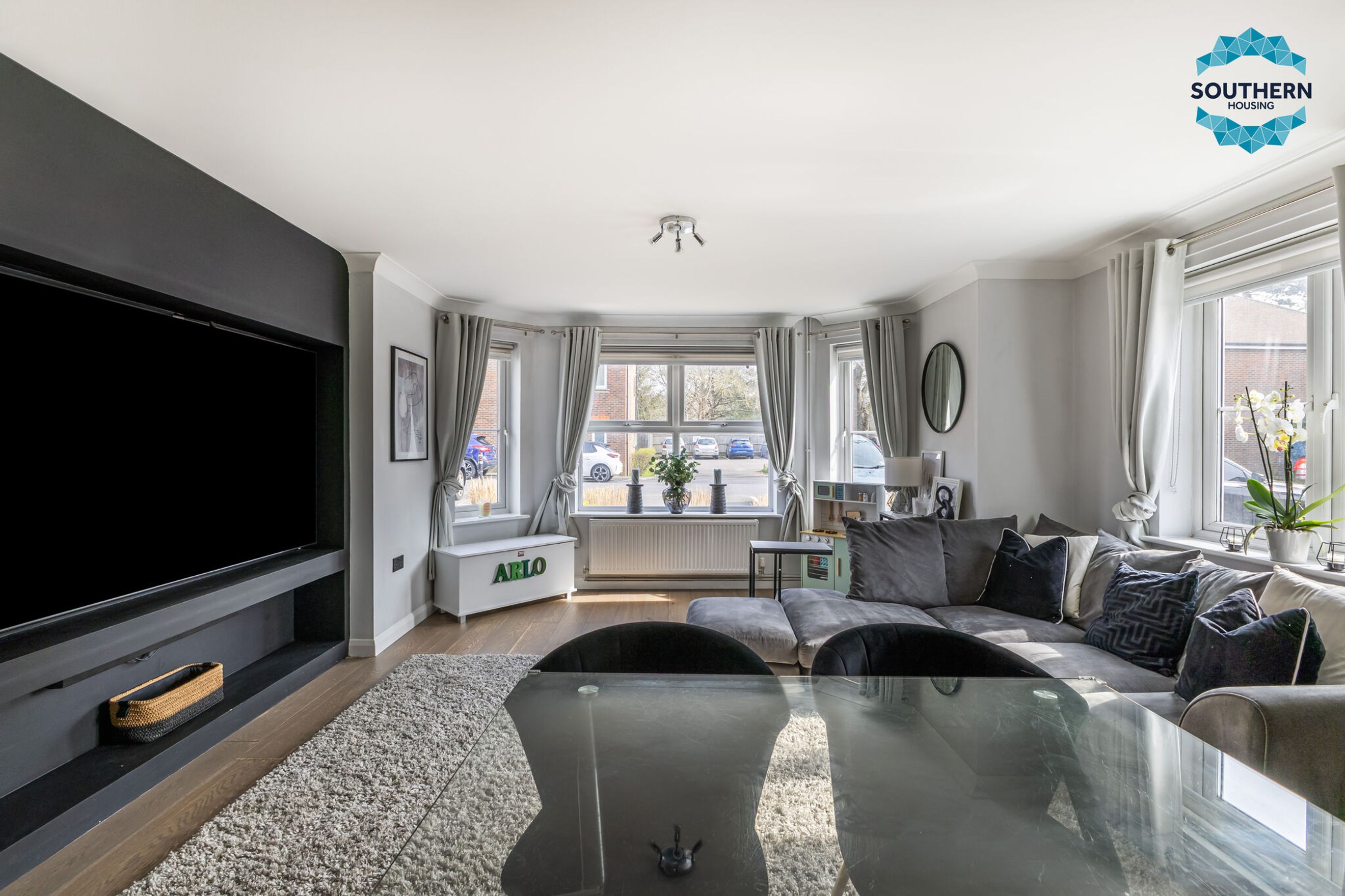 The open-plan living room and kitchen create a spacious and versatile area, perfect for both relaxing and entertaining. The living space is bright and airy, with the benefit of a modern media wall. The modern kitchen features ample storage and counter space, and comes equipped with a hob, extractor fan, oven, and fridge freezer.