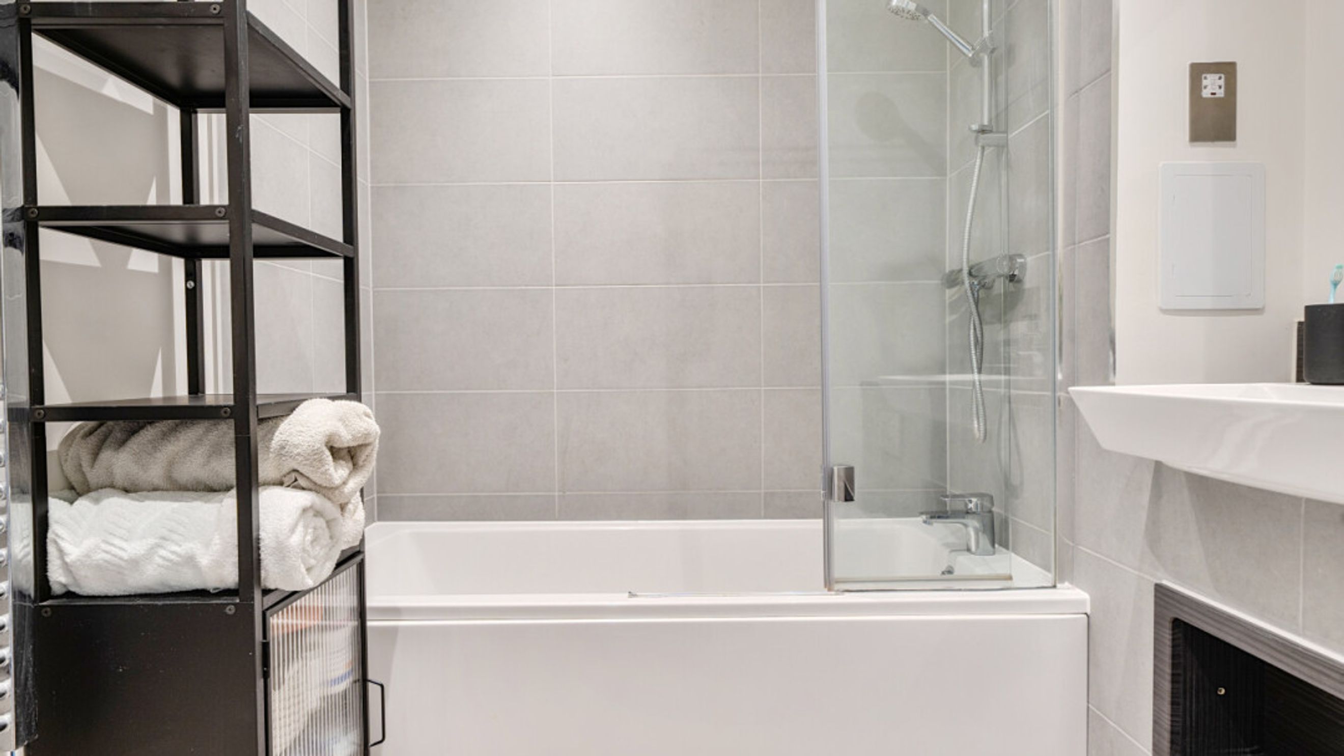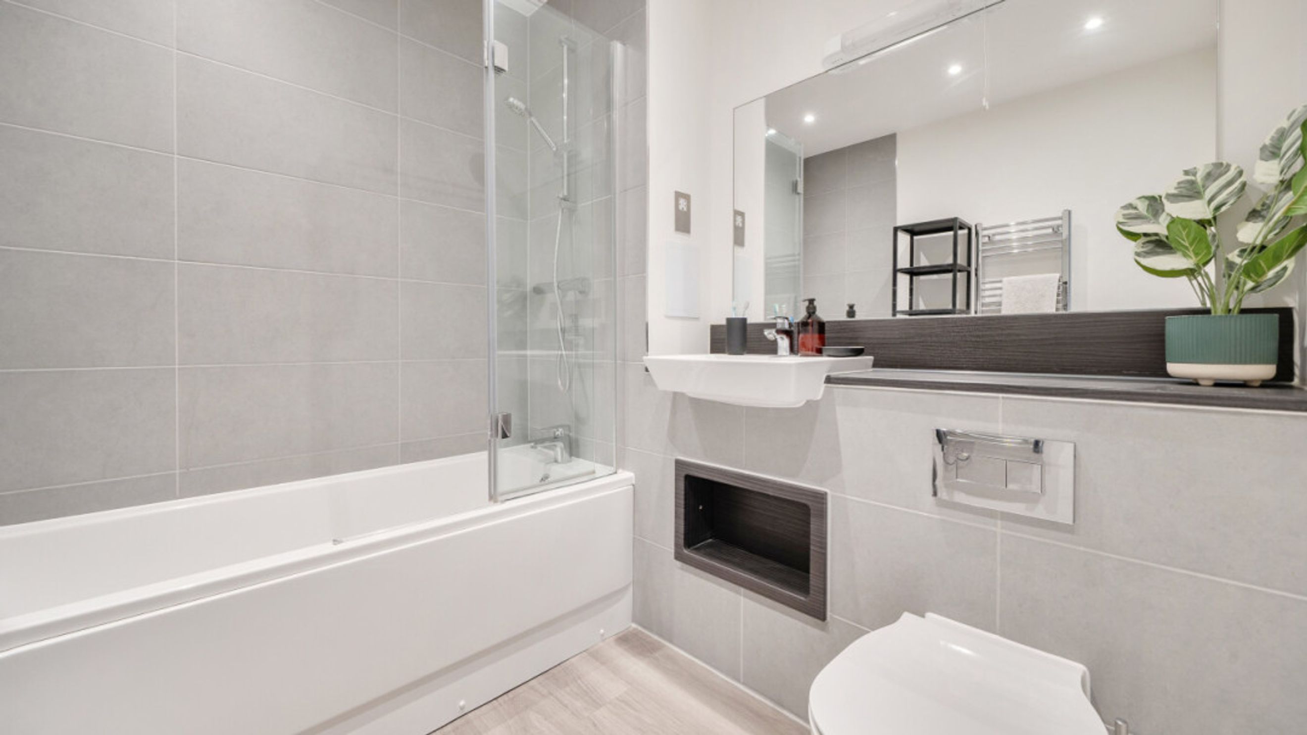 Step into a beautifully modern, bright and spacious one bedroom home designed for effortless living full of natural light. The large, open-plan living area, incorporating a modern kitchen which consists of modern light grey units. It benefits from integrated appliances. The open plan living area leads directly on to a private balcony which is good for relaxing and entrtaining. A generous sized bedroom includes built in storage. The accommodation is completed with a good sized contemporary bathroom which has a three piece suite with shower over bath and lovely light grey tiling.
