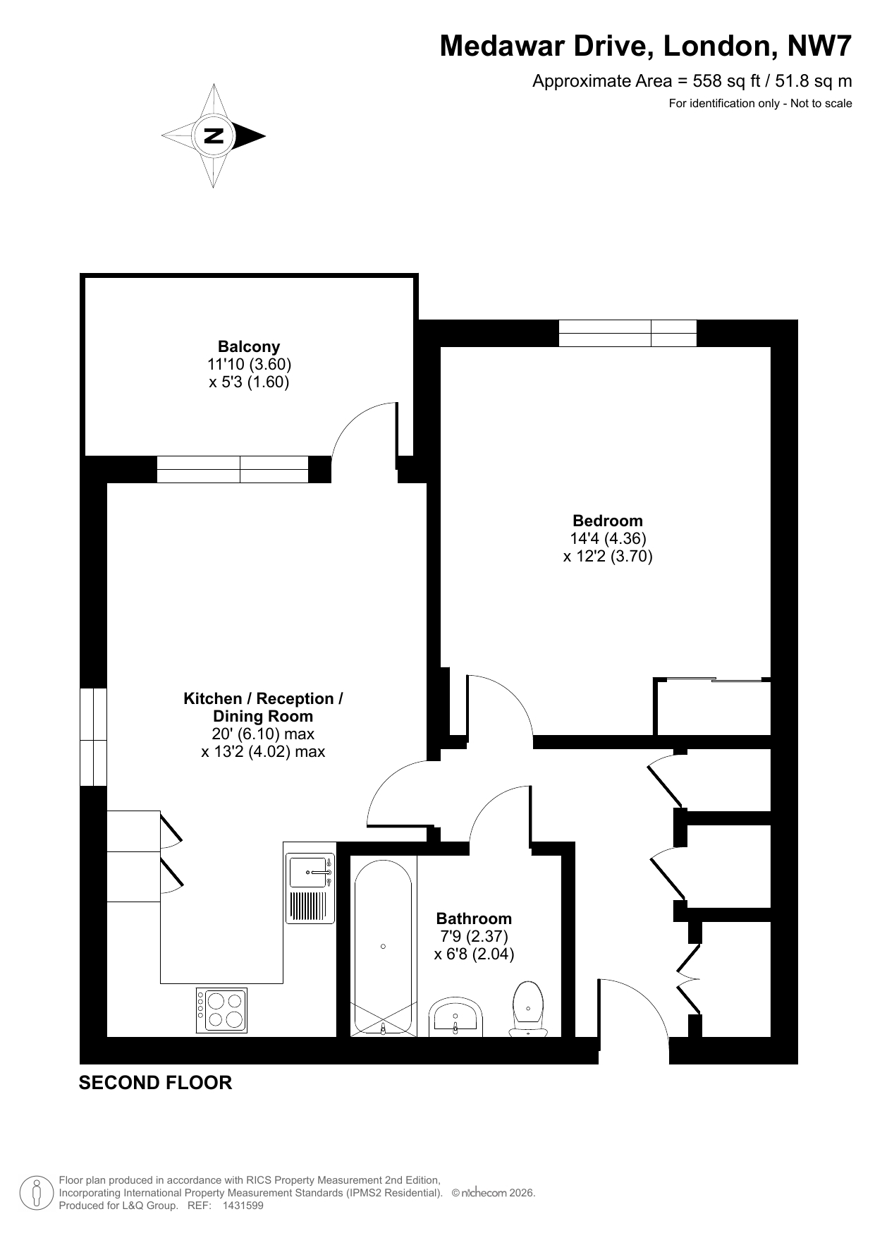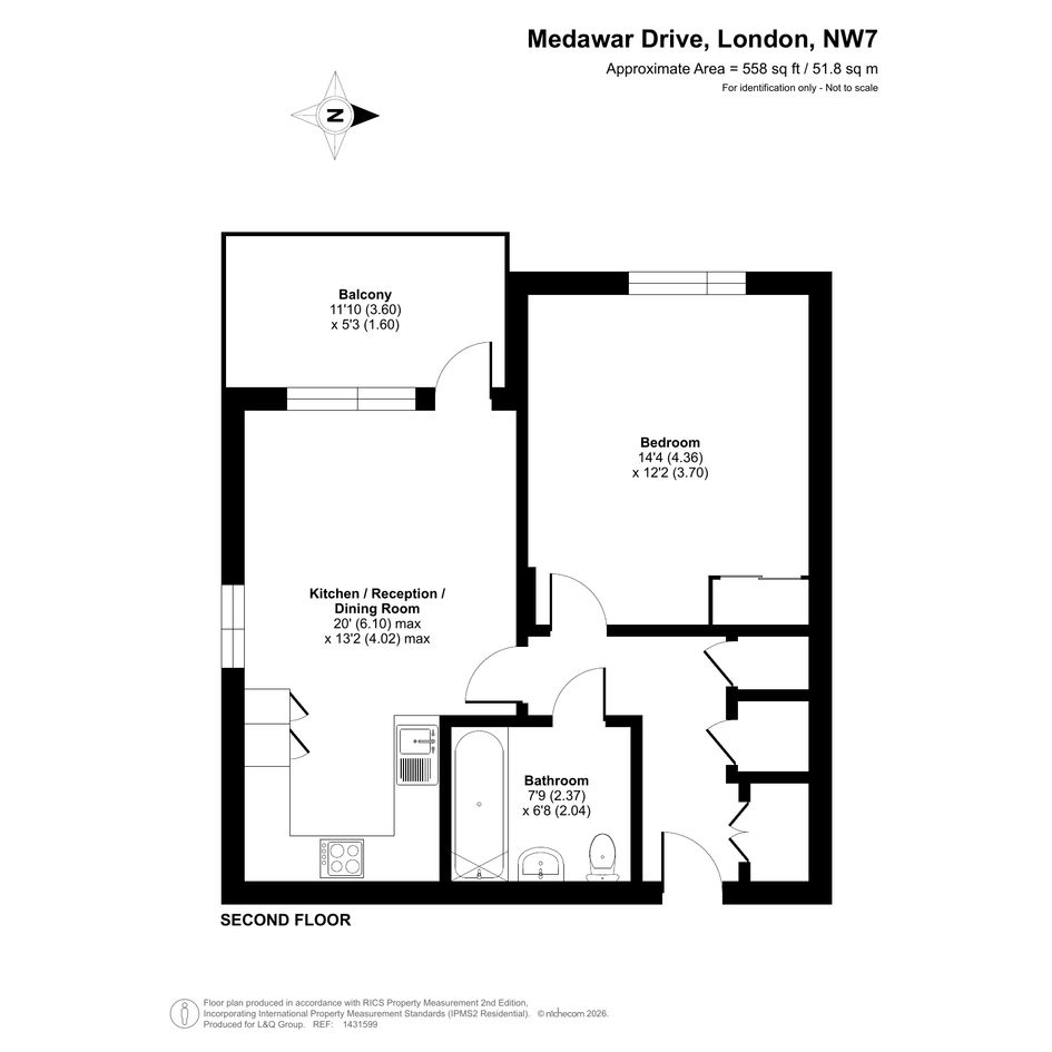 Enter this dual aspect apartment via a spacious hallway with storage. The light and bright open plan reception room has a south and west facing aspect opening onto a private balcony overlooking the communal gardens. The modern kitchen includes fully integrated appliances. A generous bedroom incudes a fitted wardrobe with sliding doors. The accommodation is completed with a contemporary bathroom.