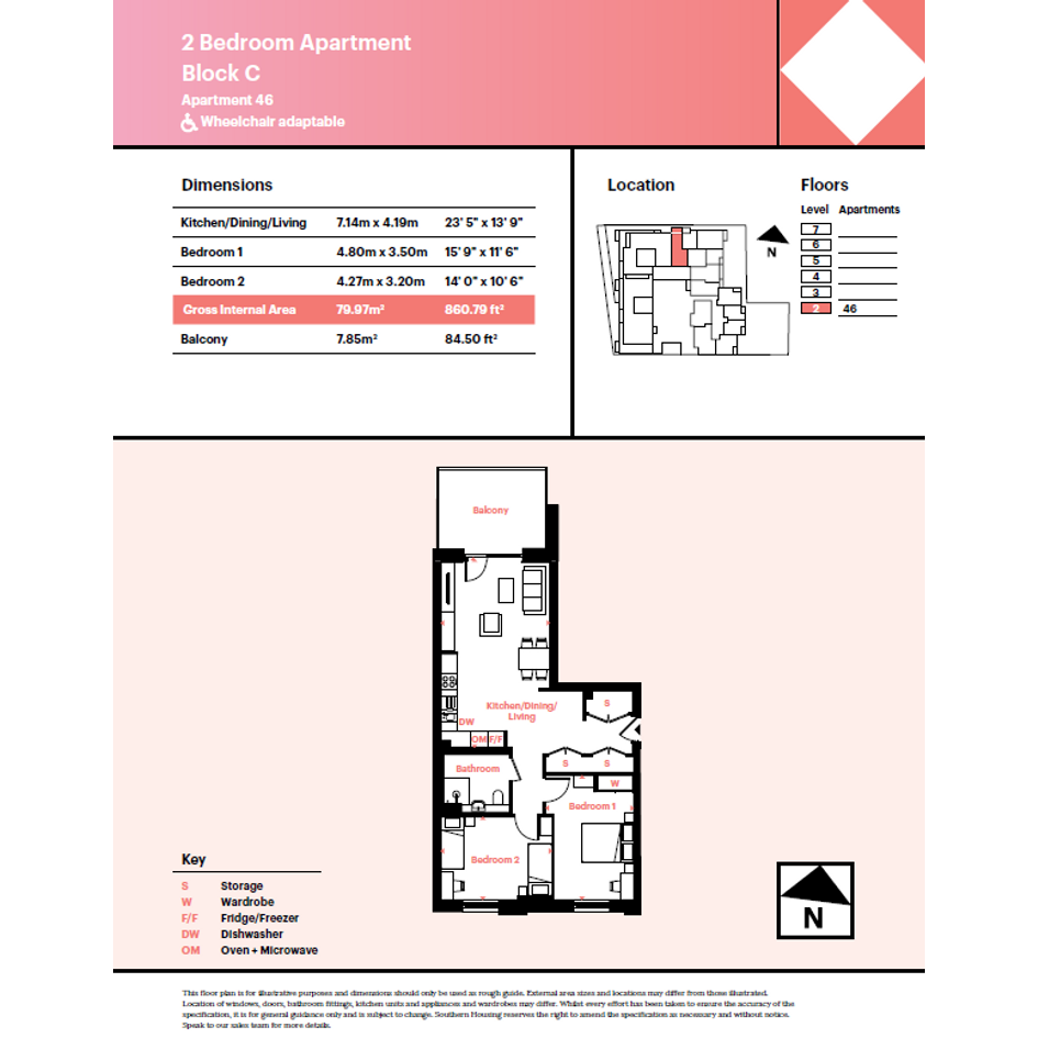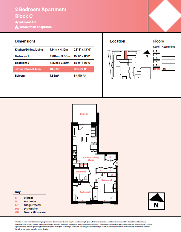 Wheelchair adaptable 2 bedroom apartment - Zone 2 - North Peckham
