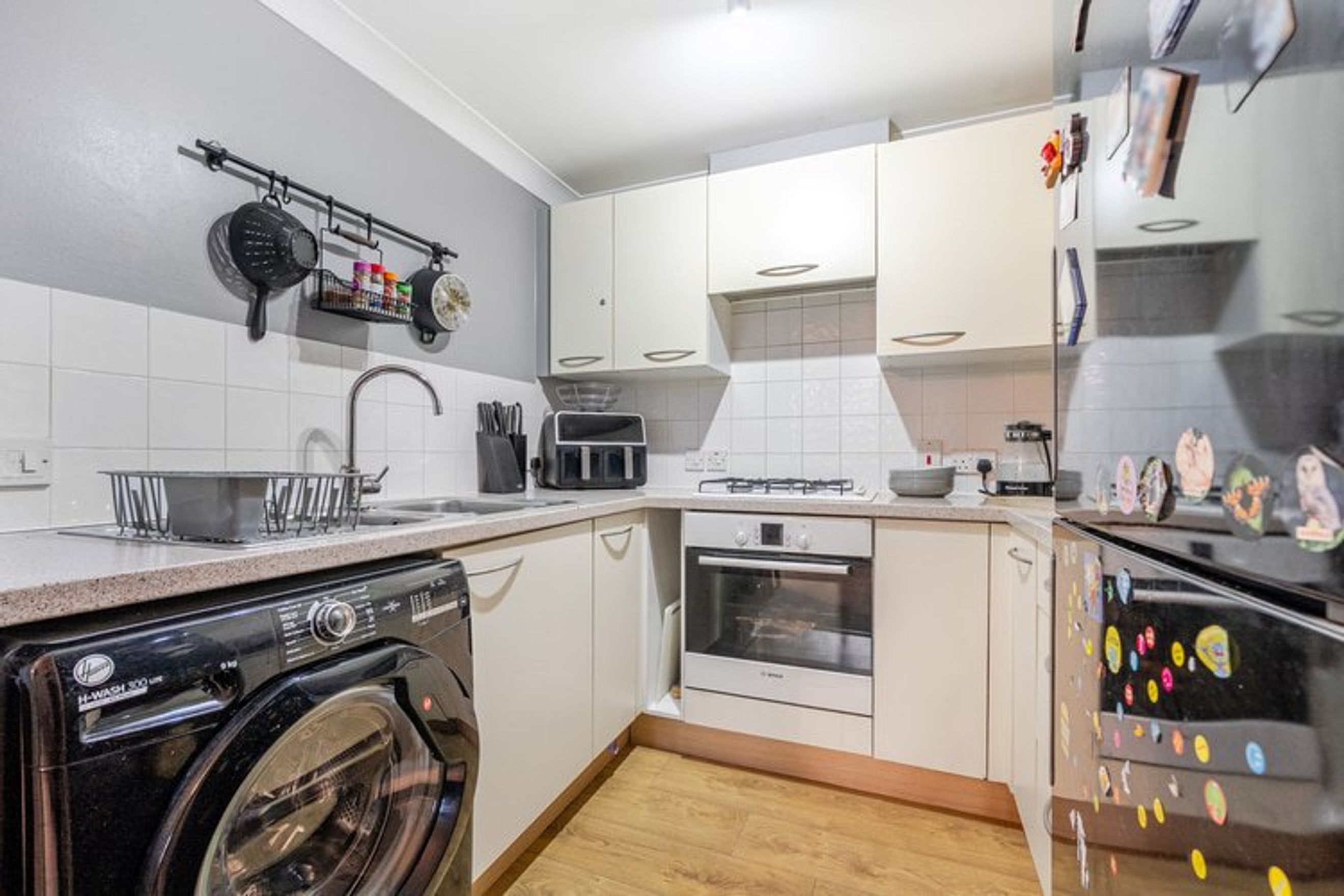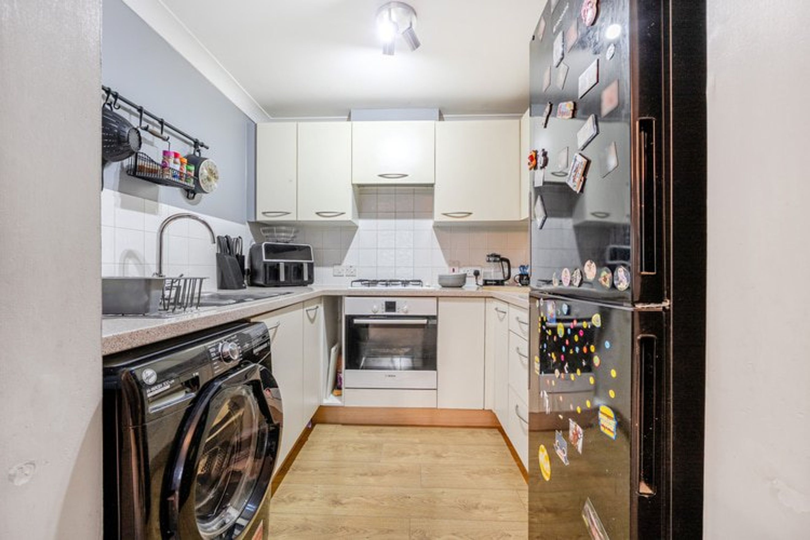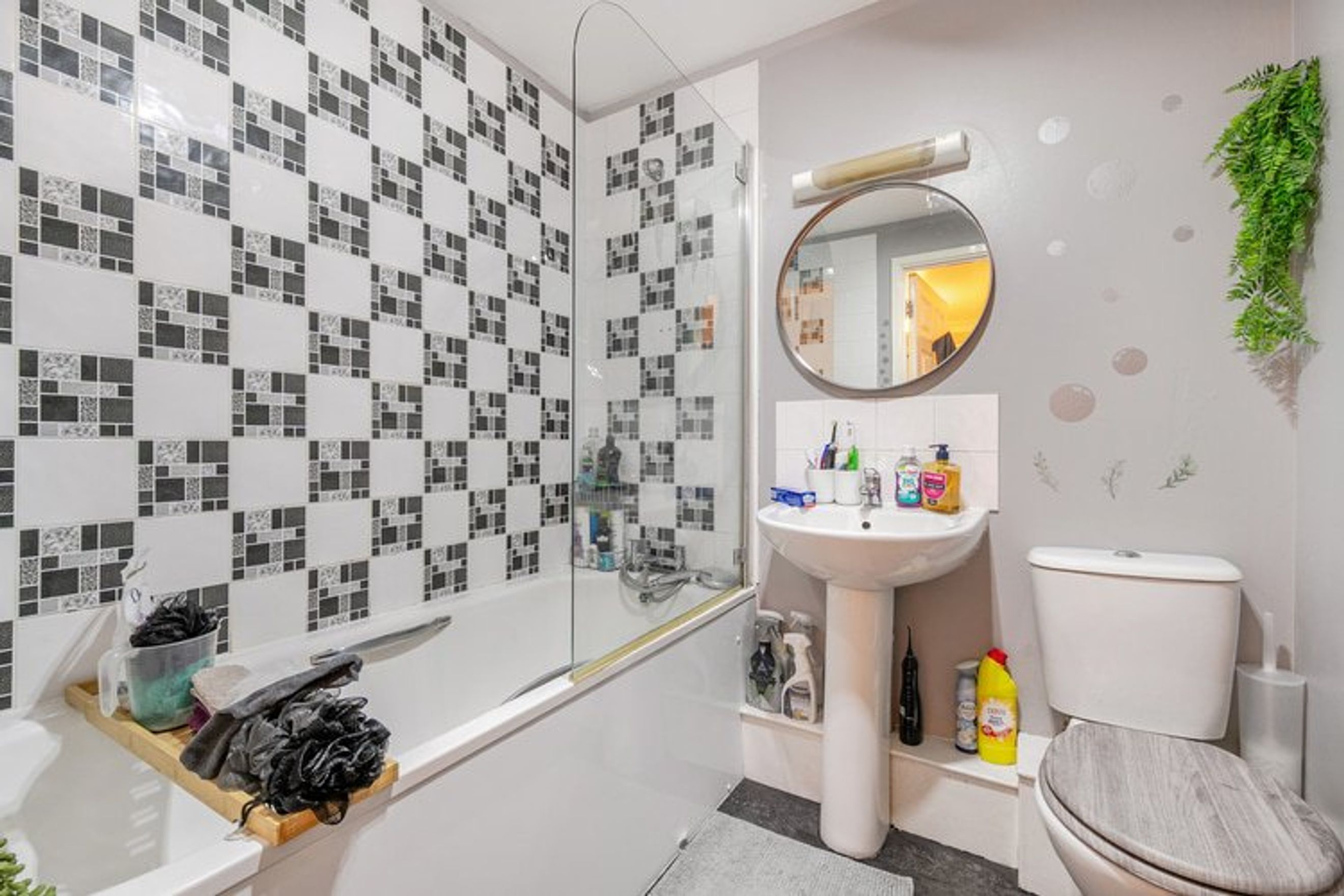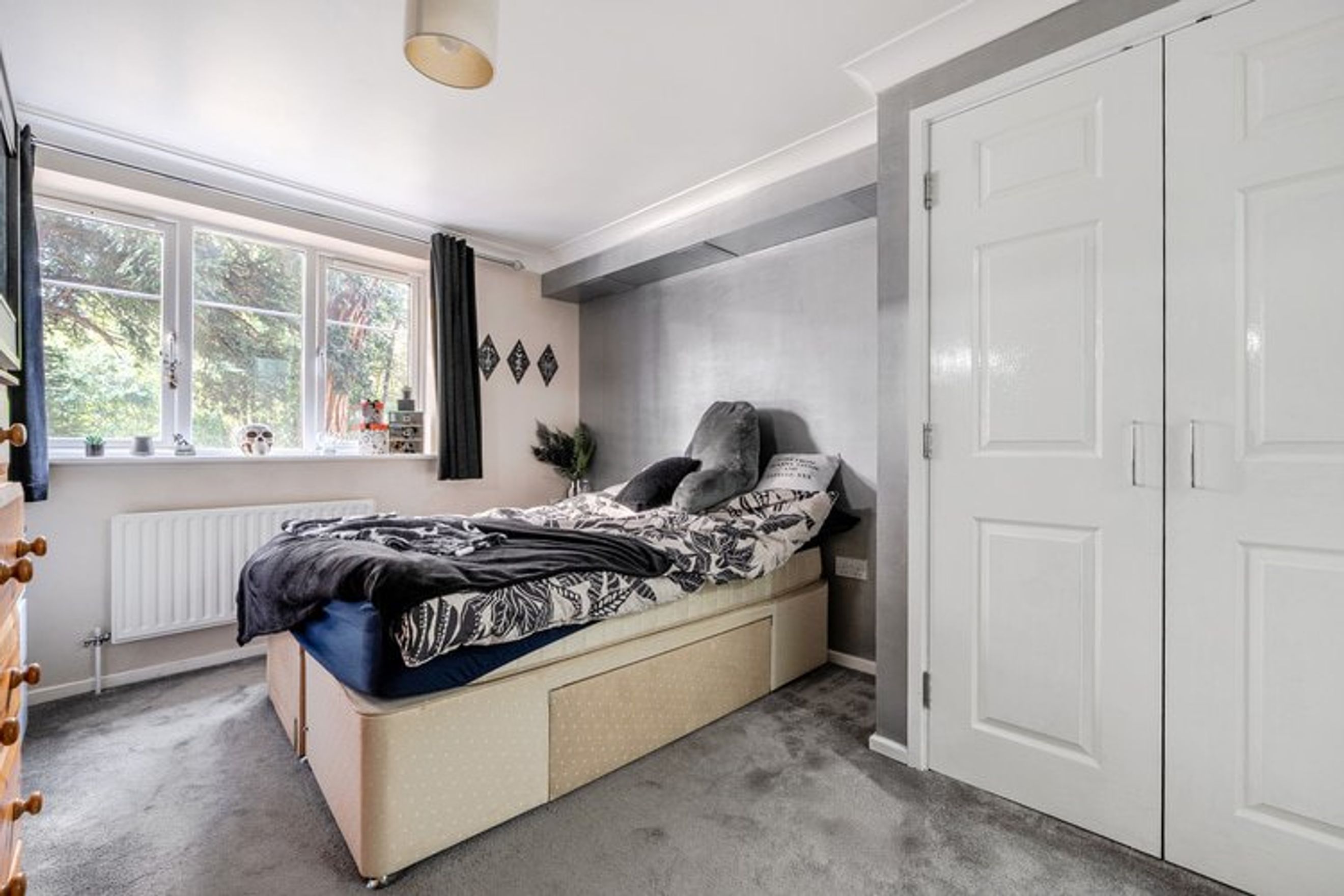 The property offers residents access to a shared garden area and allocated off-street parking.