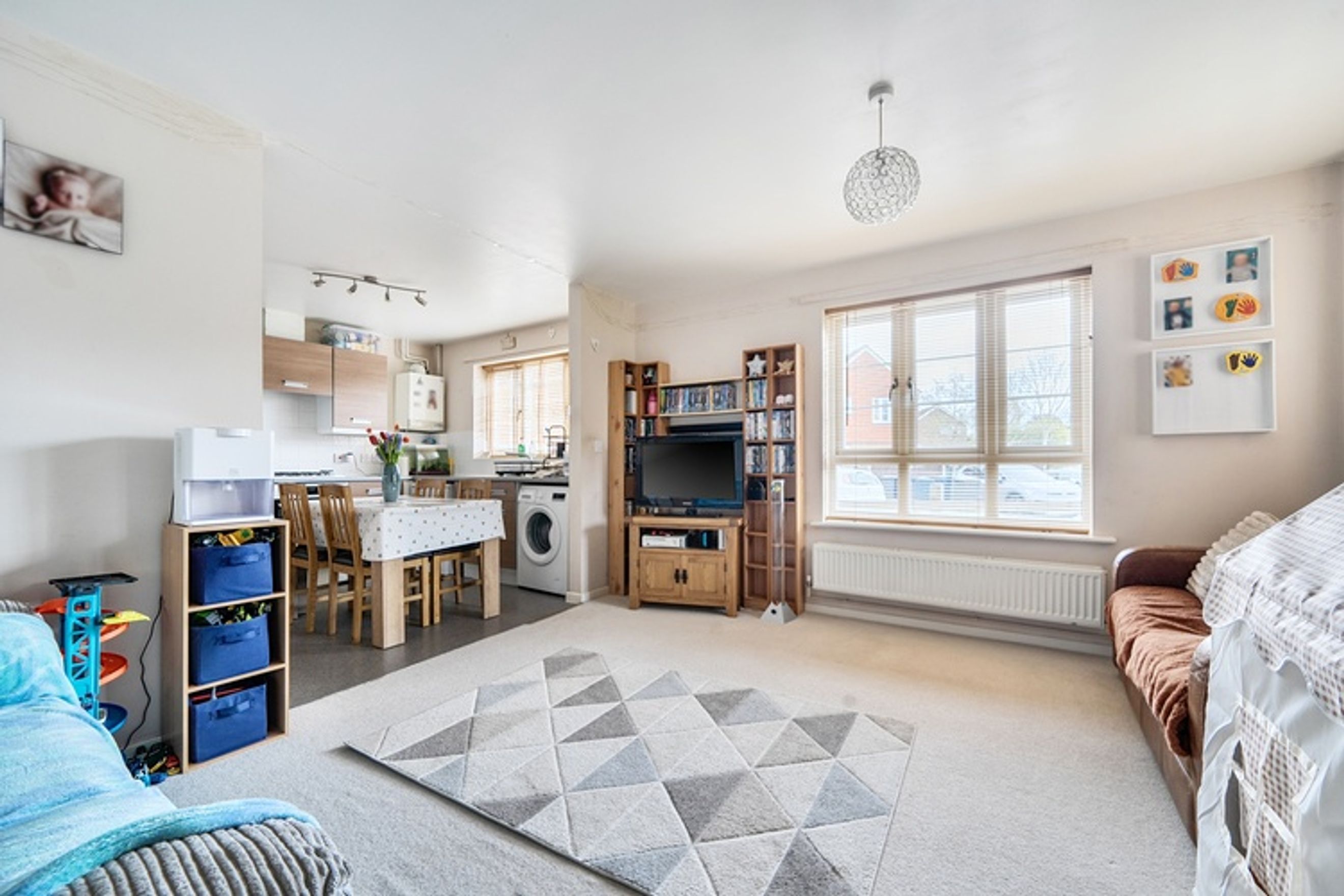 The property features an open-plan living room and kitchen, two bedrooms and one bathroom.