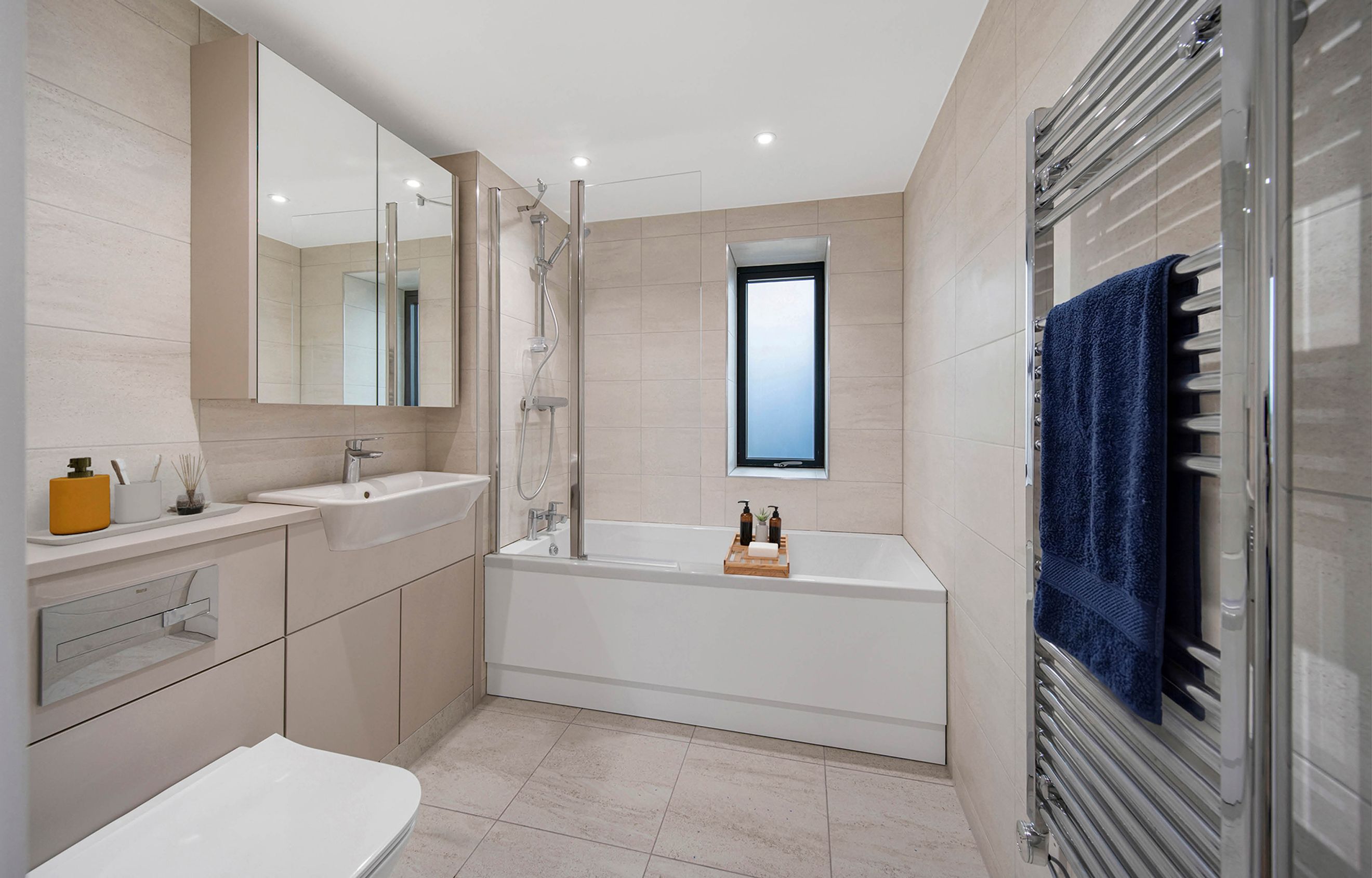 Rosemary House offers stylish and spacious new apartments with contemporary finishes. The sleek kitchen design and handleless units are perfect for clutter-free cooking and entertaining, while each main bedroom has ample storage, including a built-in wardrobe. Each home also benefits from electric underfloor heating throughout with individual thermostats in each room.