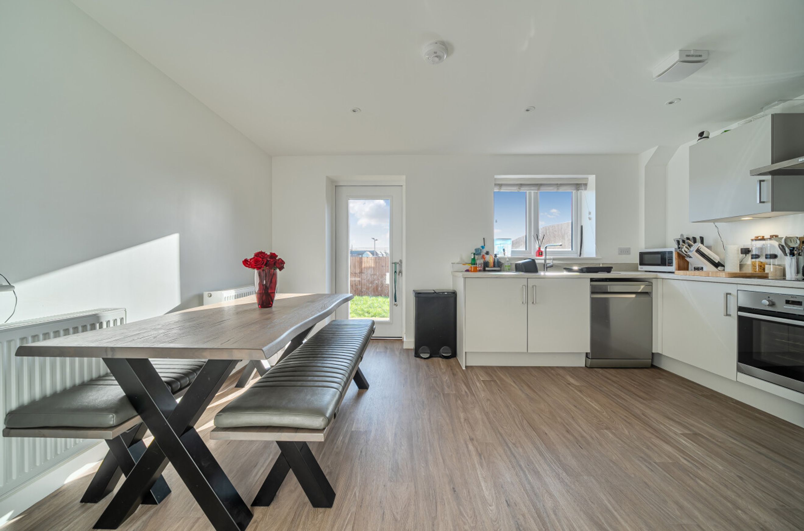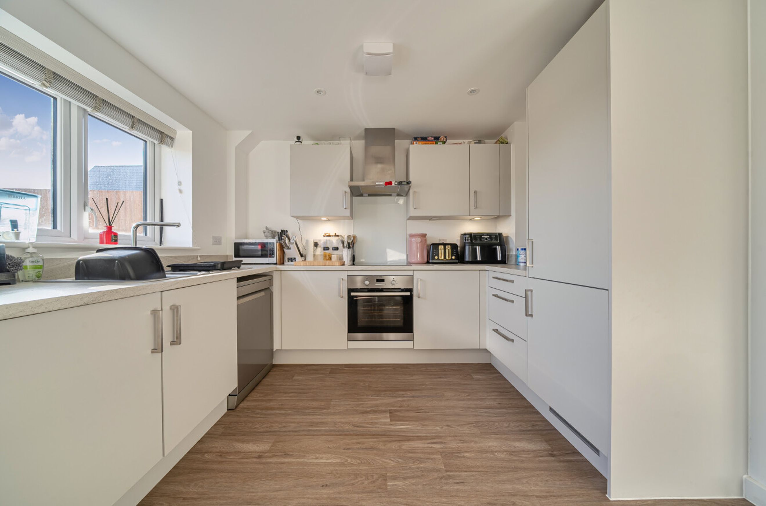 This property also has a driveway with room for 2 vehicles with side access to the private rear garden which is easy to maintain. Wheelchair accessible WC on the ground floor. Integrated appliances washing machine/fridge freezer, hob and oven also included.