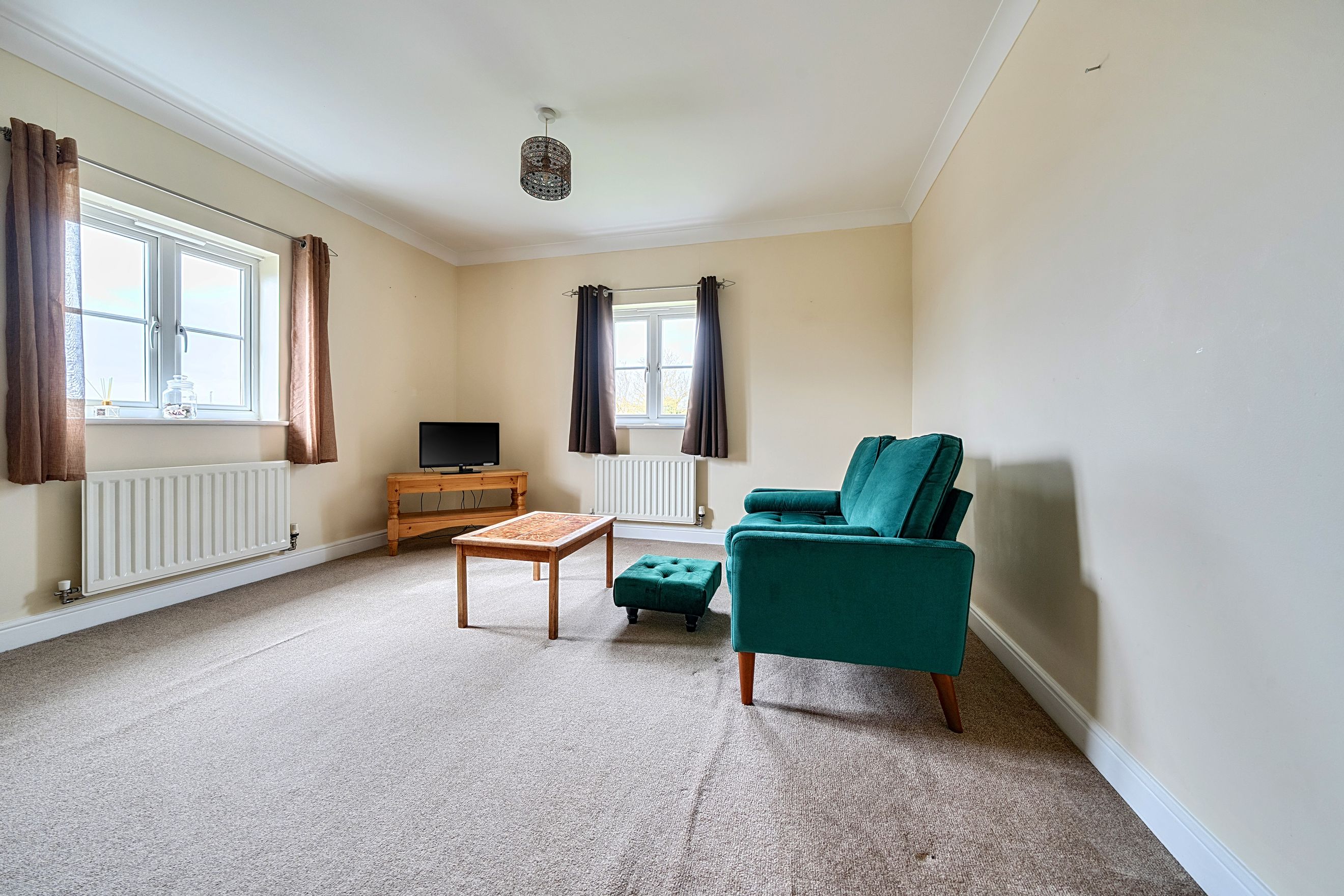 The property features two well-proportioned bedrooms, each offering flexibility for sleeping, working from home, or additional storage. A neatly arranged bathroom and separate WC add convenience and functionality to the layout.