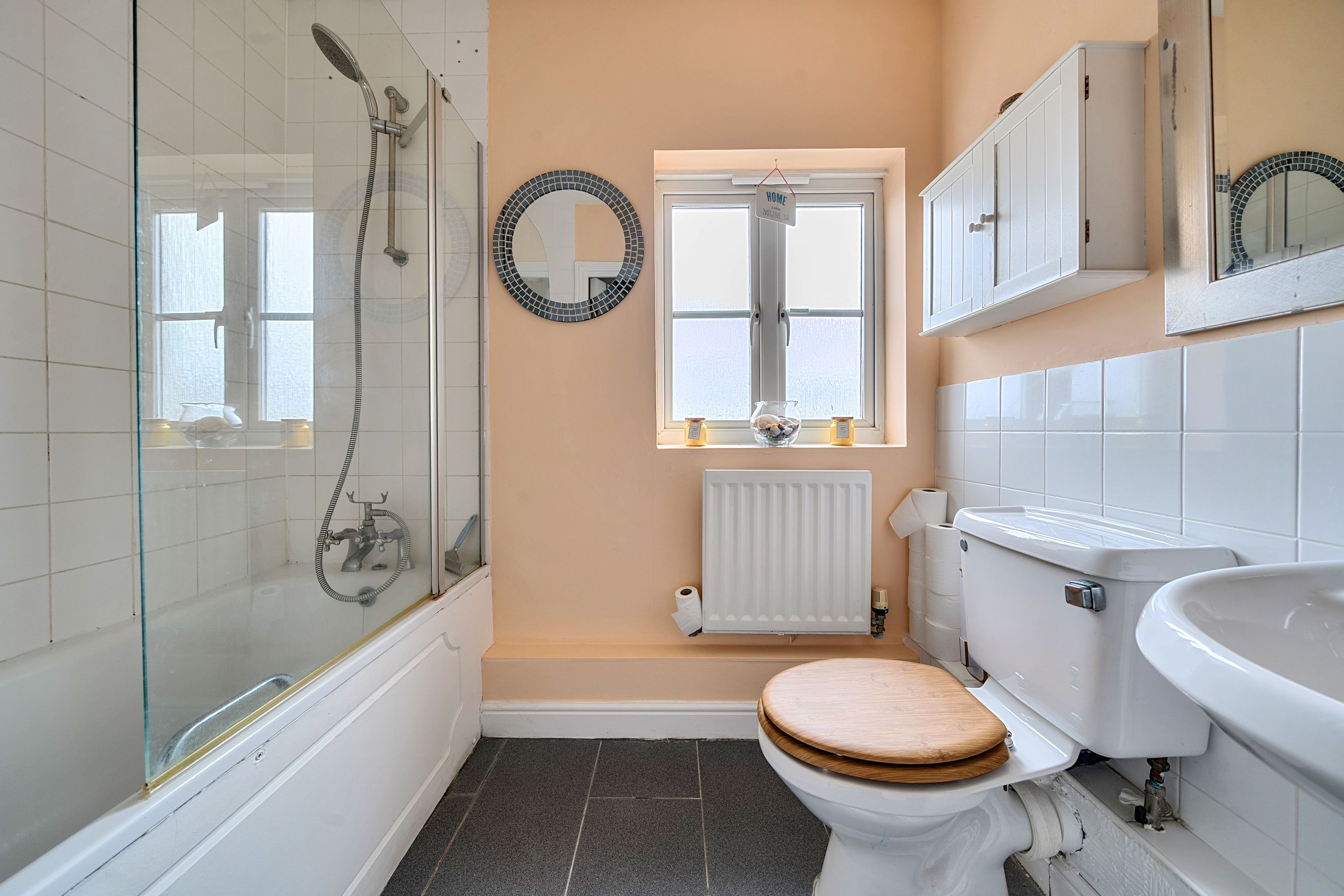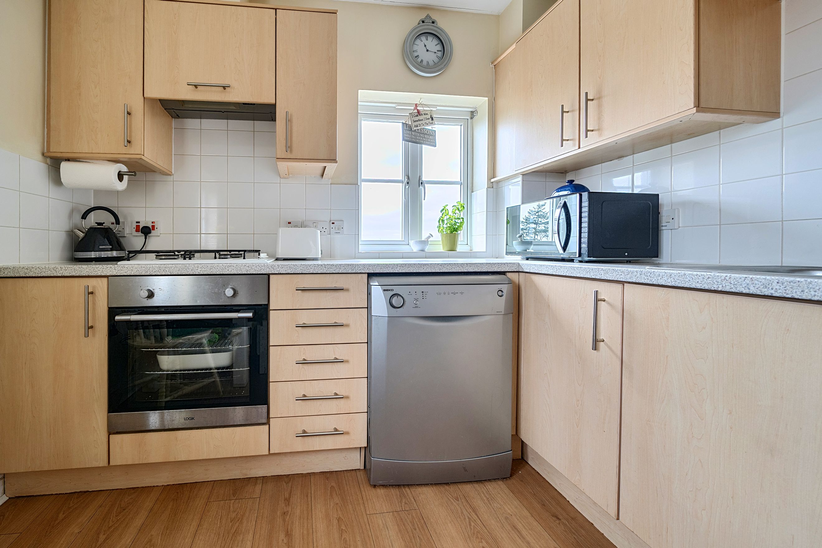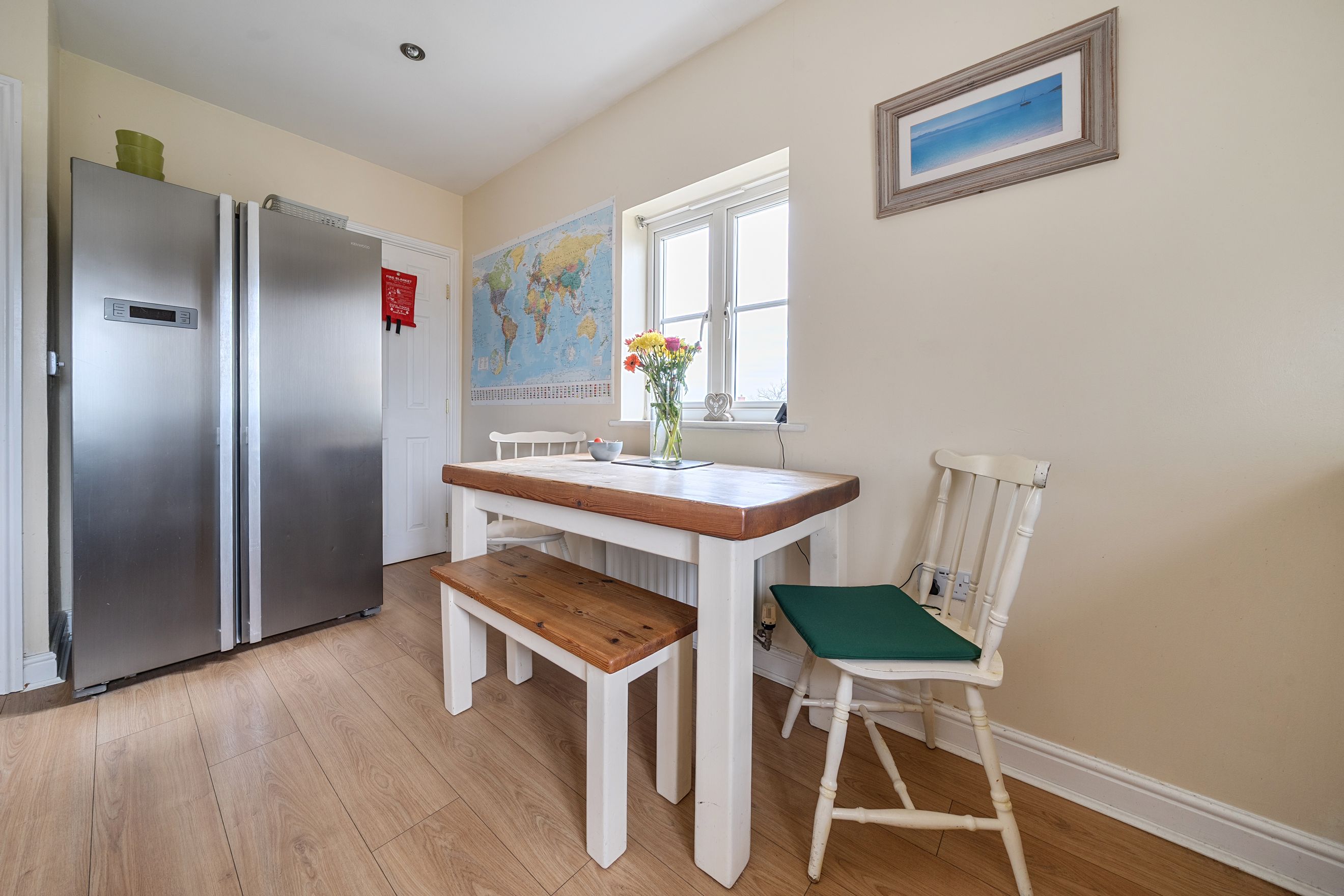 At the heart of the property is a bright and welcoming sitting room, providing a relaxing space to unwind or entertain. The adjoining kitchen/dining area is thoughtfully arranged, offering ample room for both cooking and casual dining, with a natural flow that suits modern living.
