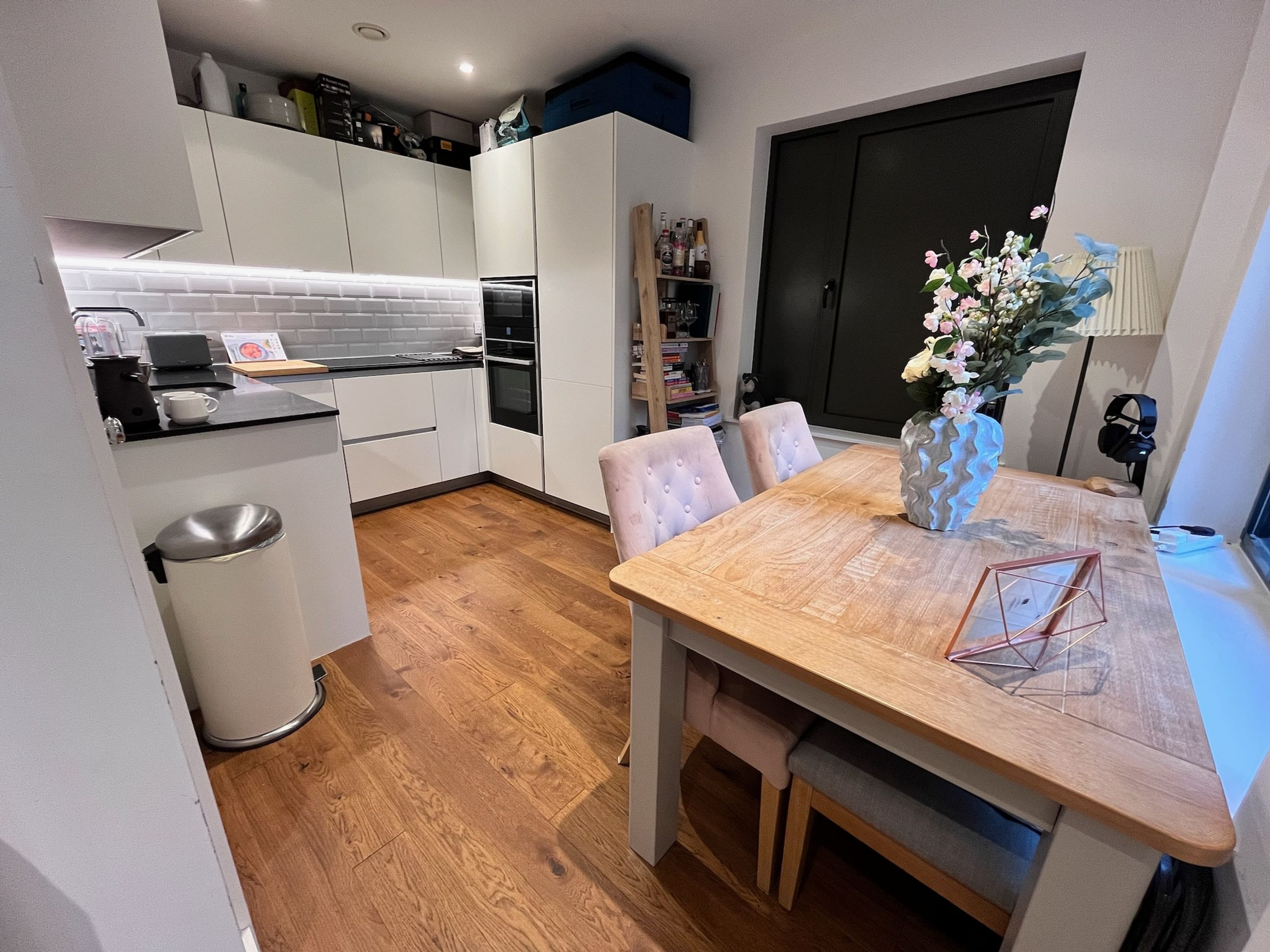 The bathroom is neatly finished in a clean, contemporary style. A standout feature of the property is its peaceful setting, positioned away from the road and with minimal noise from neighbouring apartments, creating a notably quiet living environment.