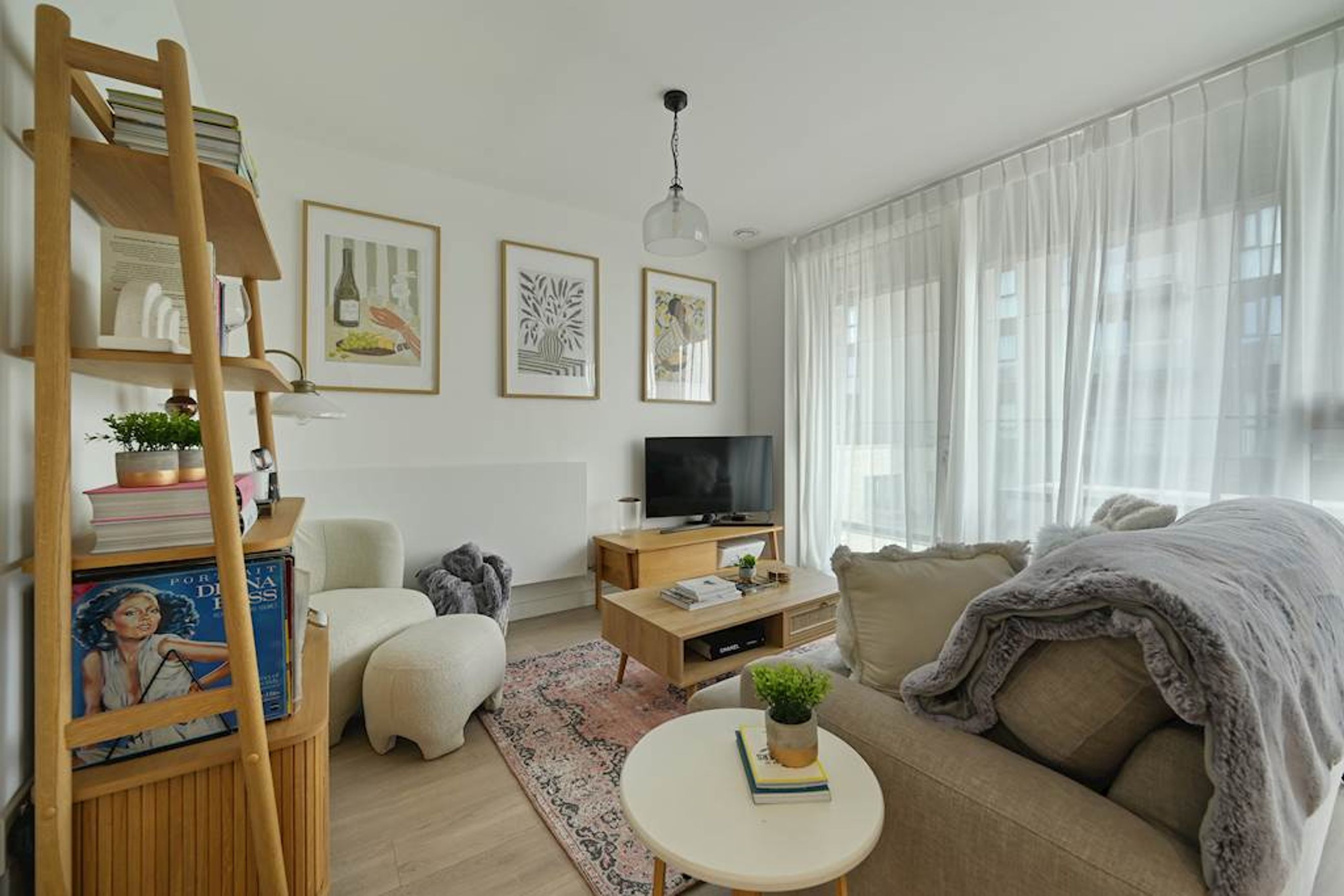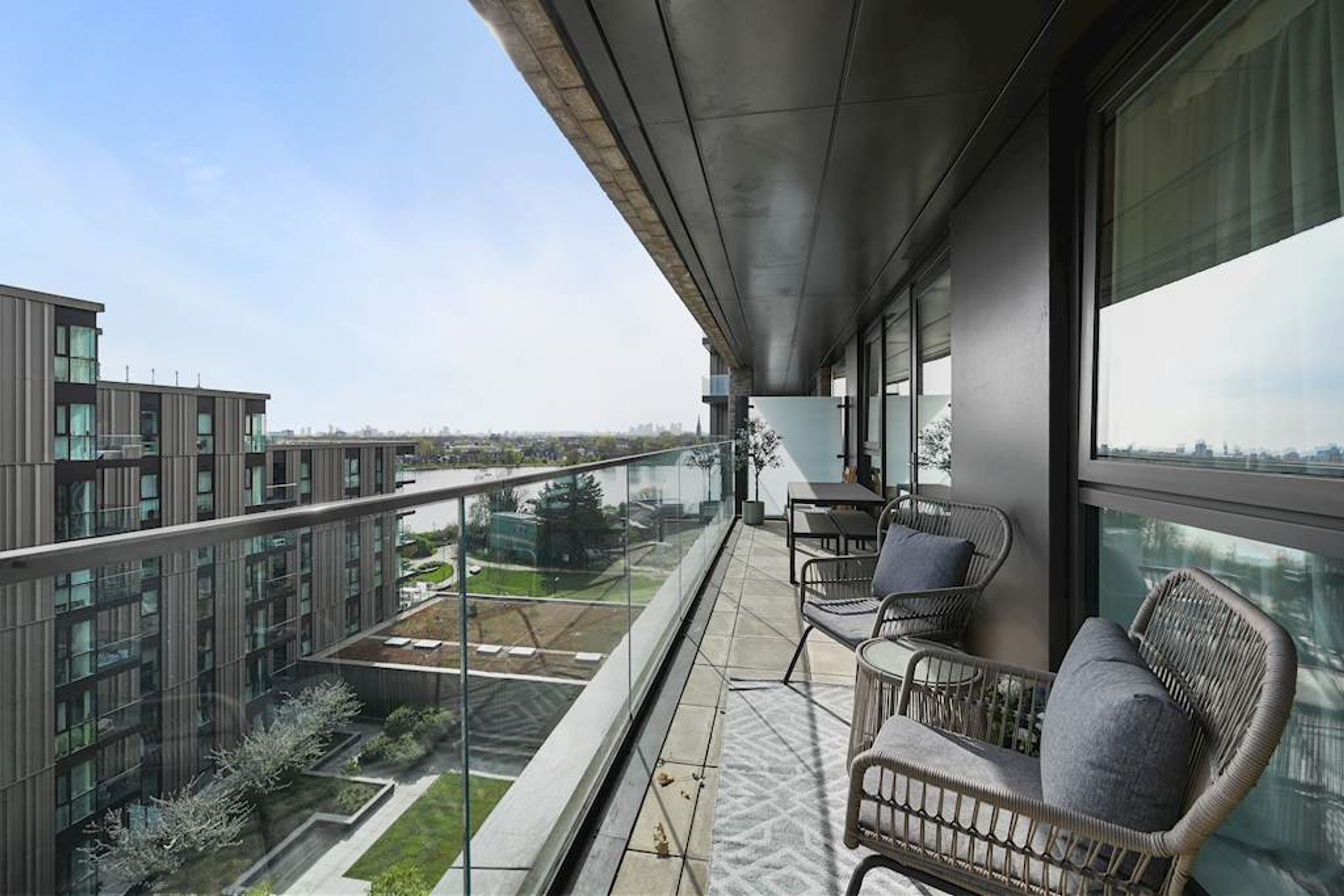 Set on the 6th floor of Hartingtons Court, in the sought after Woodberry Down development, this exceptional one-bedroom apartment offers what is arguably the finest position in the building. The standout feature is the expansive, fully covered private terrace spanning the entire length of the property—significantly larger than most in the development—with direct access from both the living space and bedroom. Enjoy stunning views across the reservoir and London skyline, with beautiful morning light and spectacular sunrises, all from a sheltered outdoor space that can be used year-round.