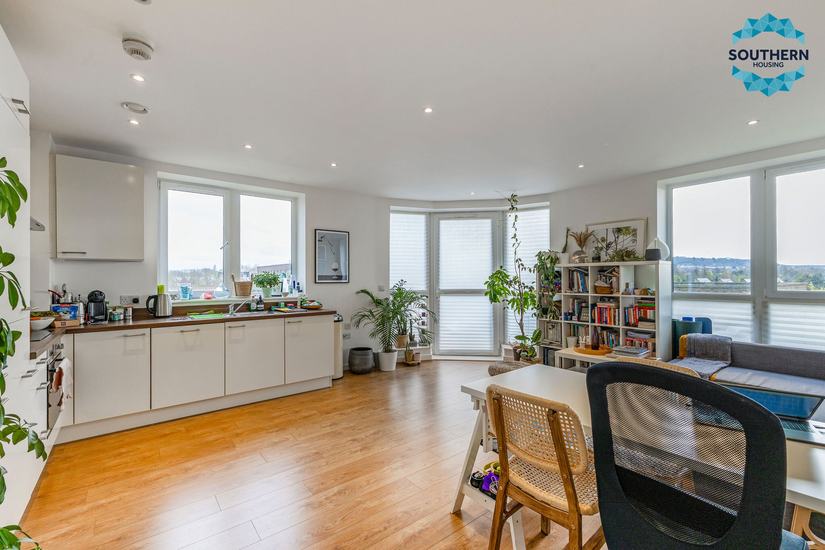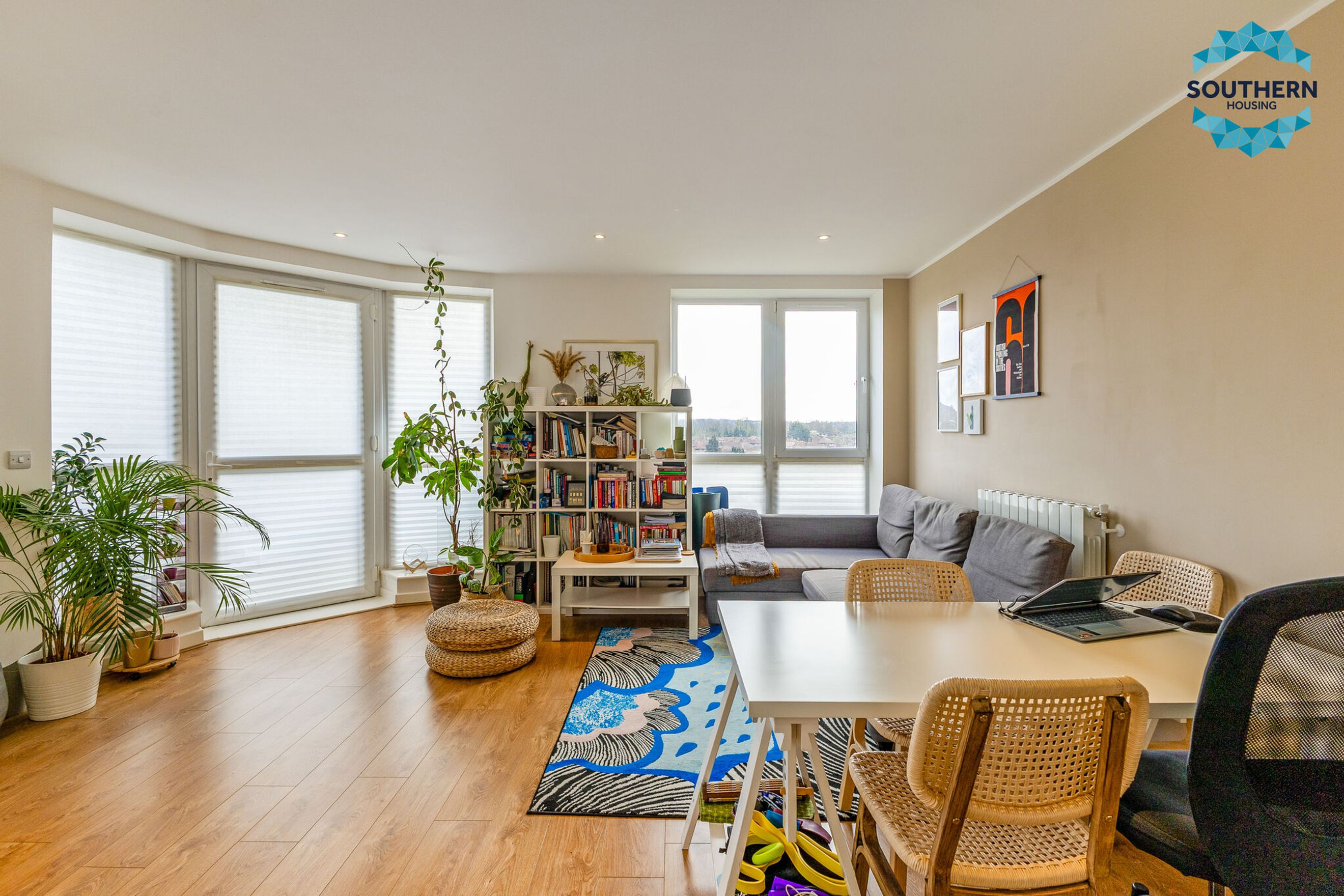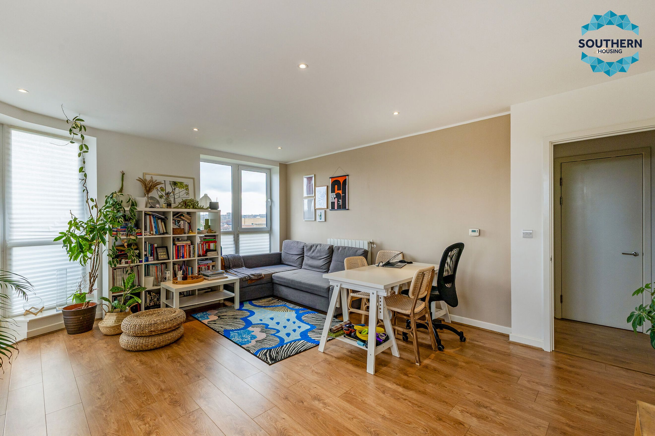 The heart of this home is the large, airy, open-plan kitchen and living area. Featuring large windows throughout, the space is flooded with natural light, creating an ideal environment for entertaining or day-to-day living. This main reception room benefits from direct access to a private balcony which provides excellent views and a peaceful spot to unwind.