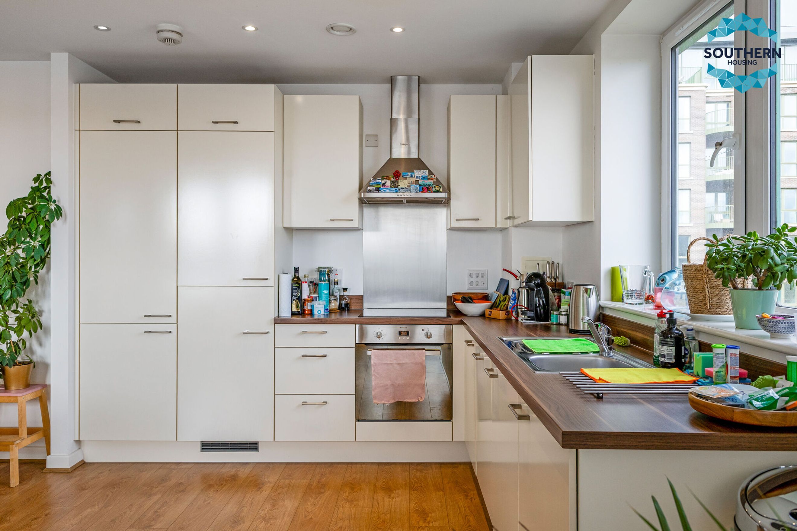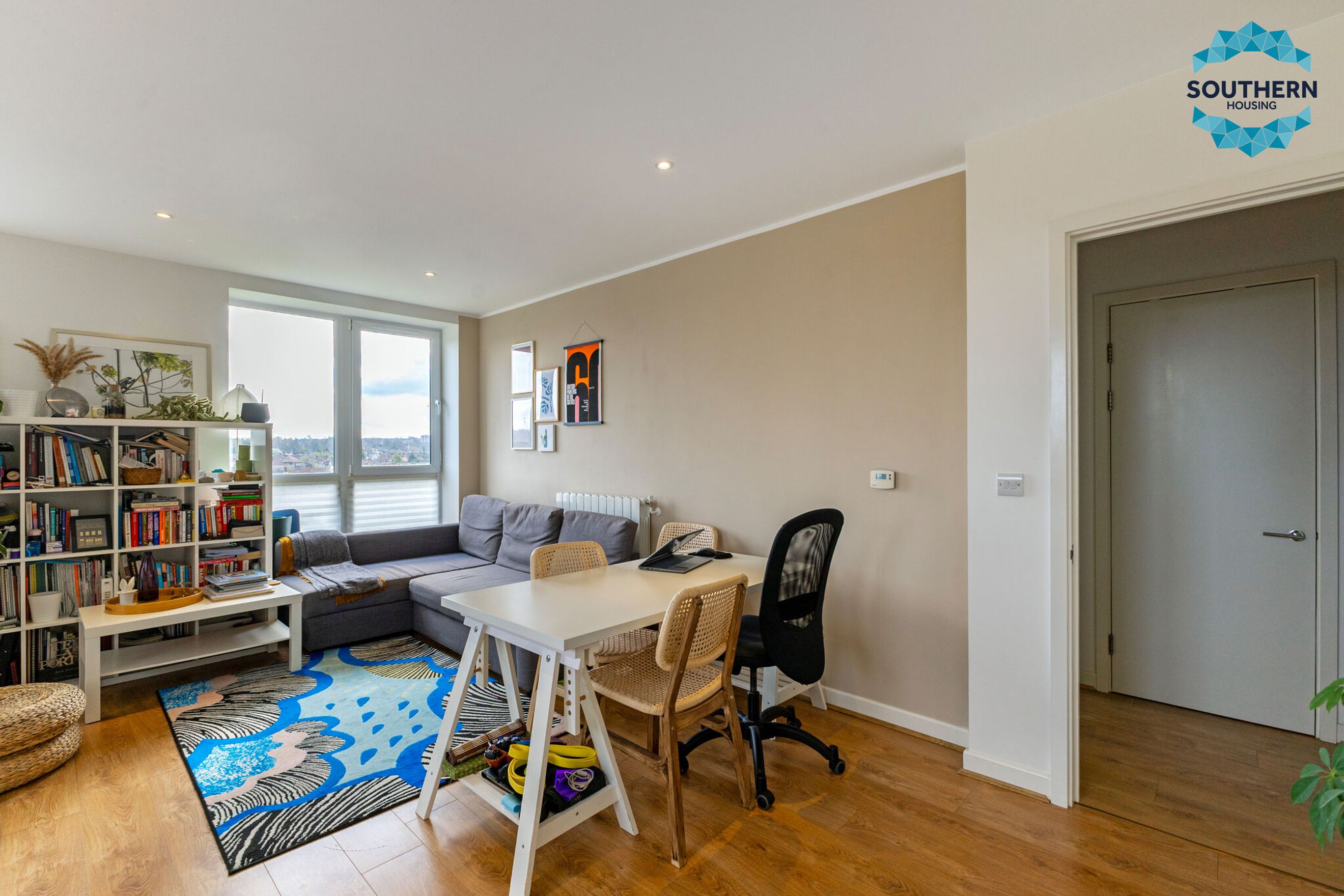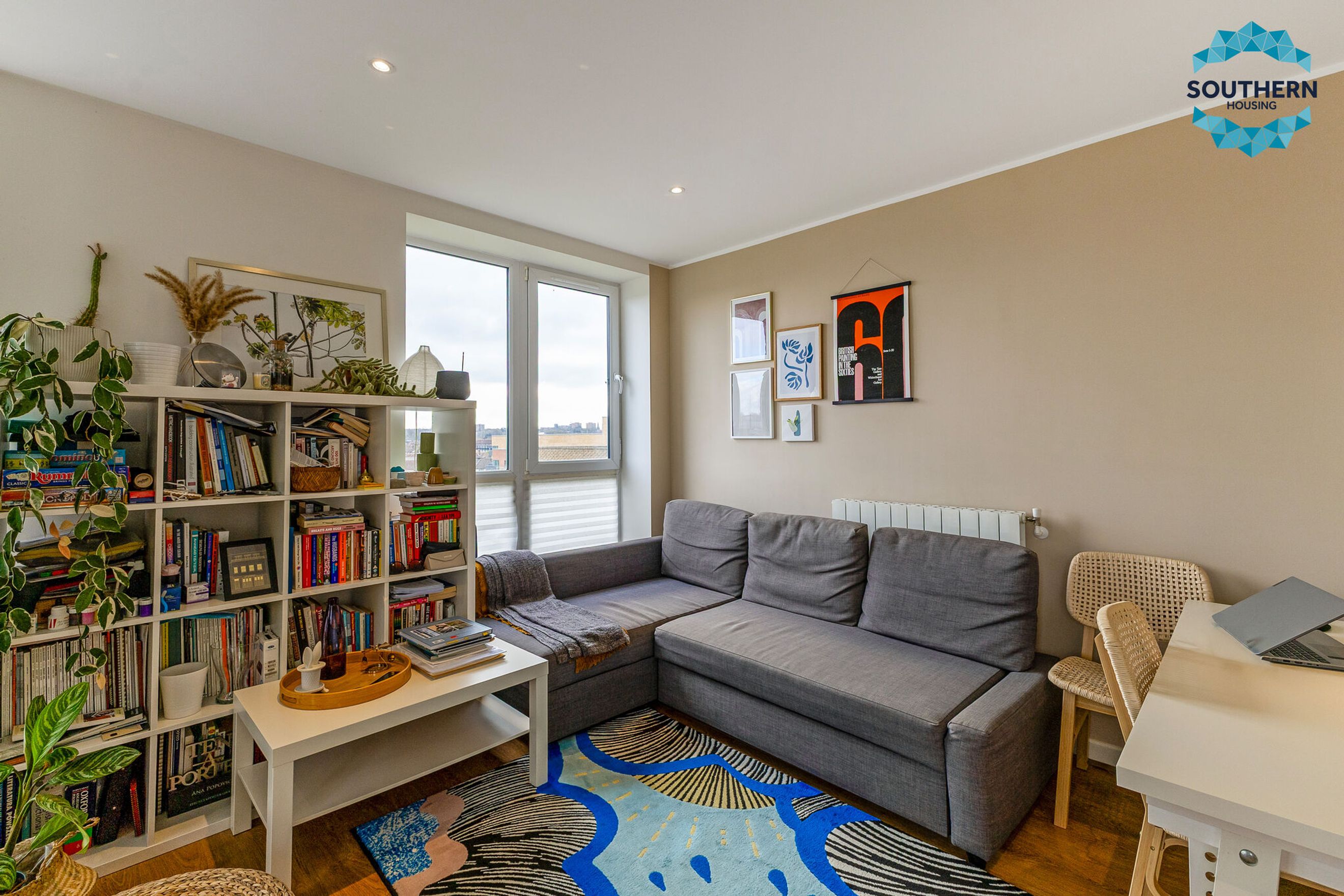 The heart of this home is the large, airy, open-plan kitchen and living area. Featuring large windows throughout, the space is flooded with natural light, creating an ideal environment for entertaining or day-to-day living. This main reception room benefits from direct access to a private balcony which provides excellent views and a peaceful spot to unwind.