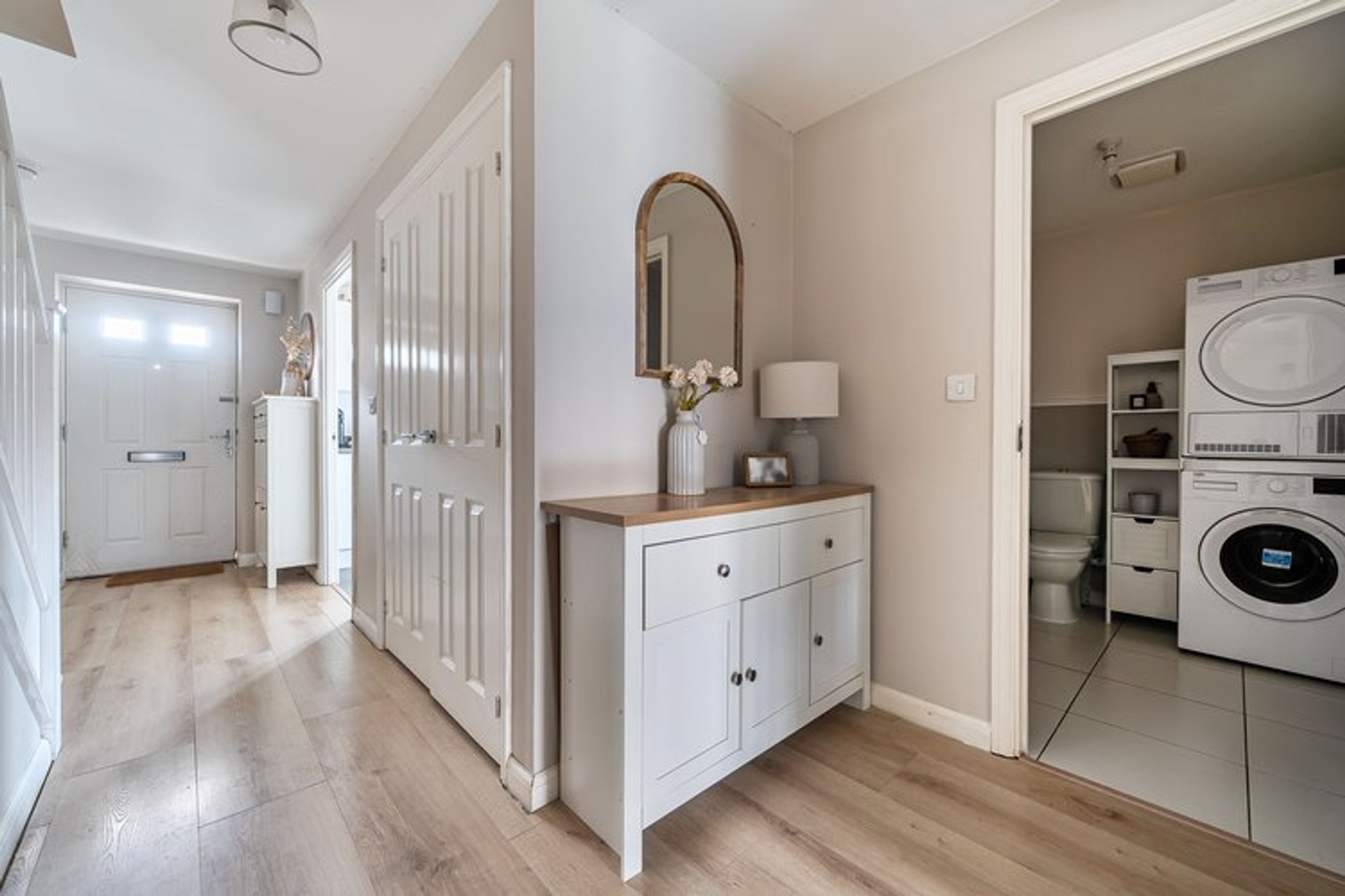 The property offers residents a spacious rear garden and allocated parking space.