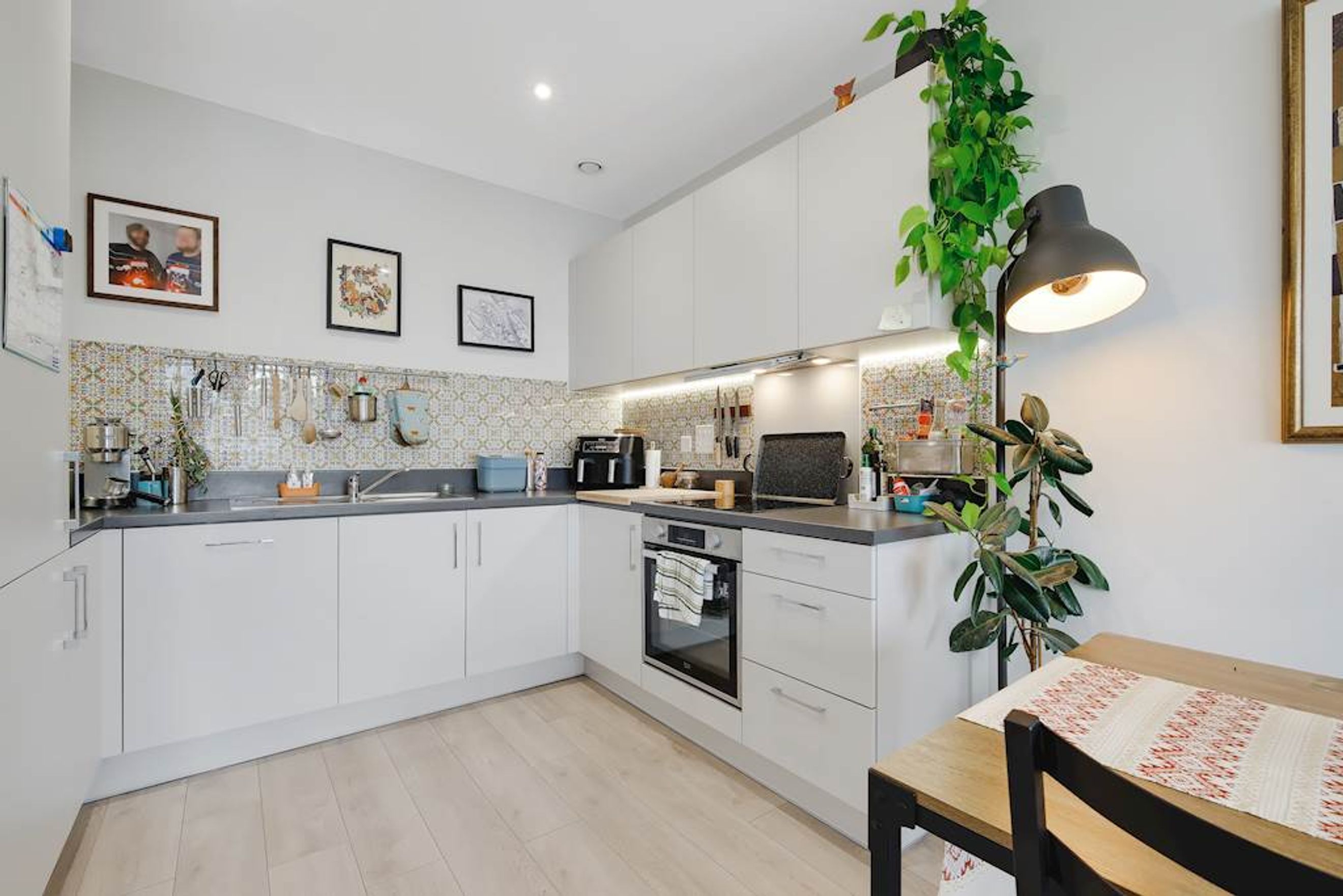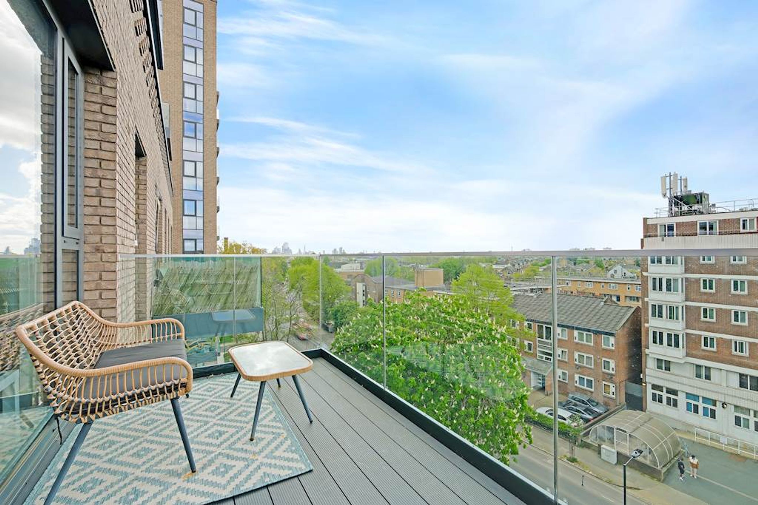 - Bright, open plan kitchen/living area leading onto large balcony with London city skyline view.