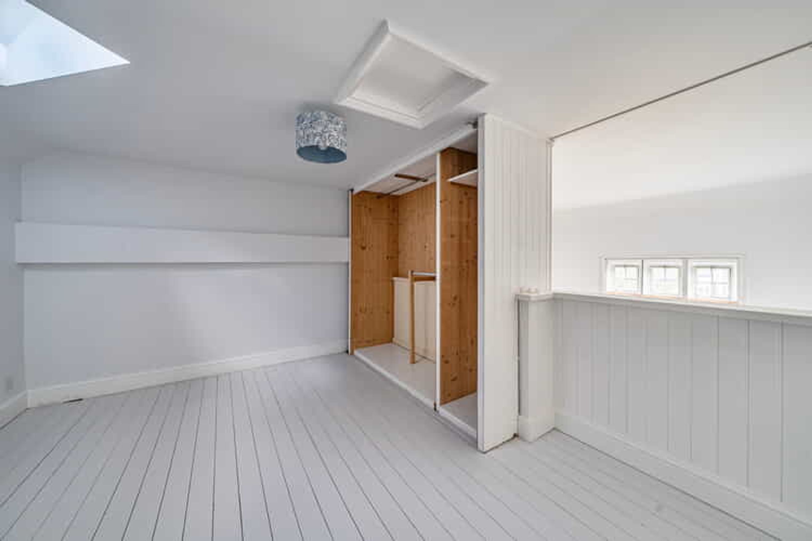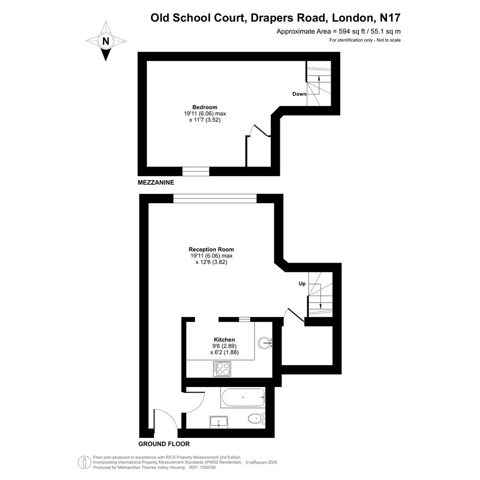 The property on the ground floor comprises of an entrance hall, a living room, a fitted kitchen, storage and a bathroom. In the Mezzanine level, there is a large bedroom.