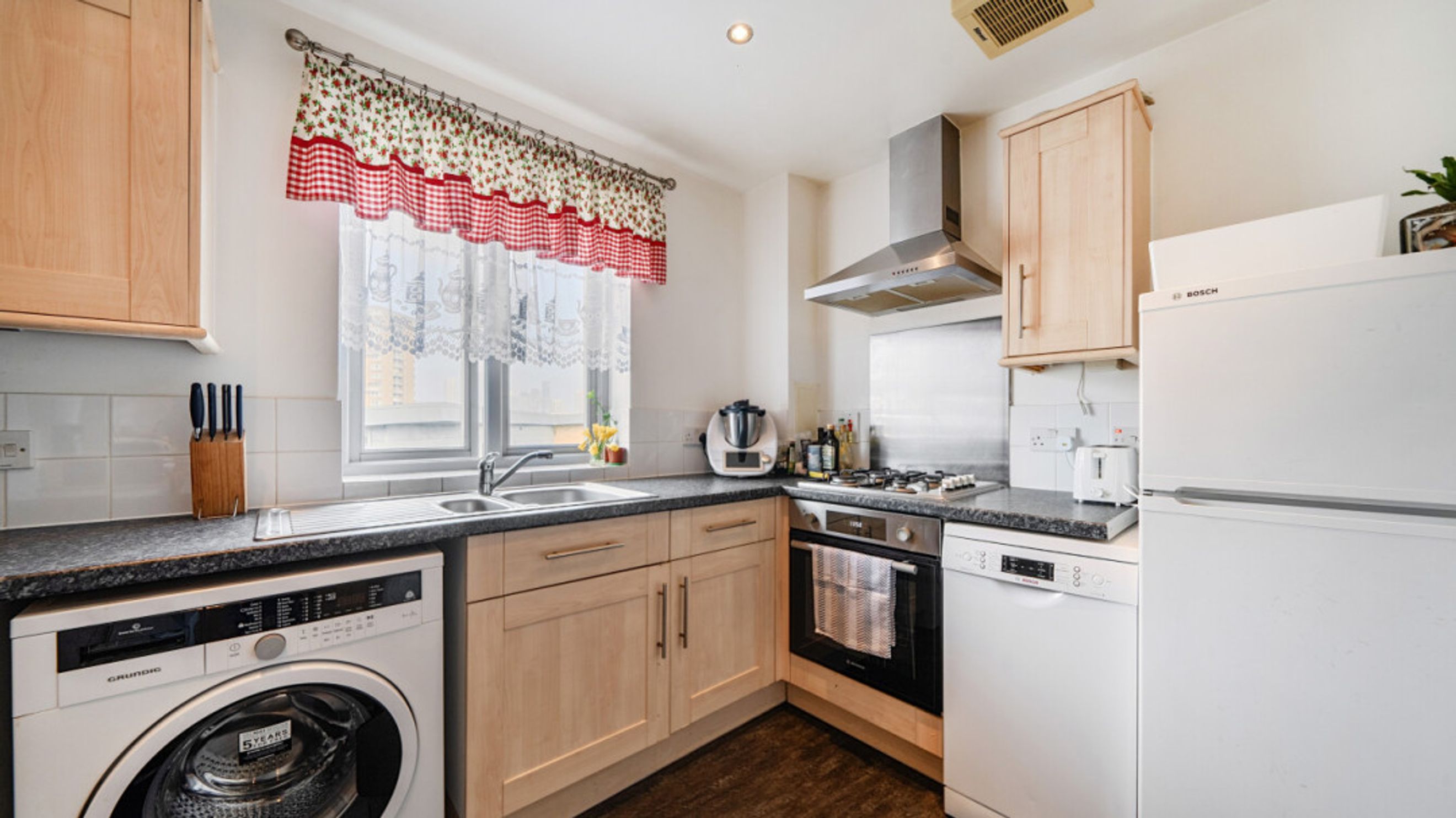 This bright and spacious detached apartment consists of a separate kitchen and living area/dining area. The kitchen is fitted with beach wood effect wall and base units, with a granite effect worktop. The kitchen also benefits from integrated appliances including a oven, hob and extractor fan, with space for a fridge freezer, washing machine and dishwasher. Two spacious double bedrooms. The bathroom comes complete with a white three-piece suite with a shower over bath and a white tile surround.
