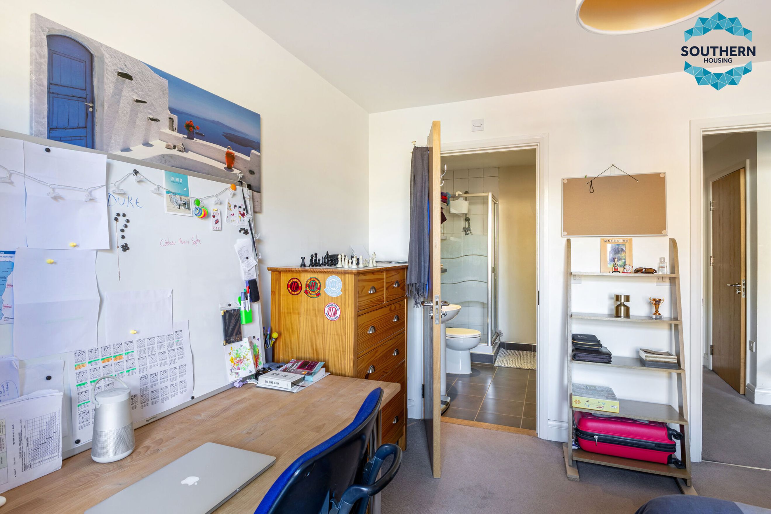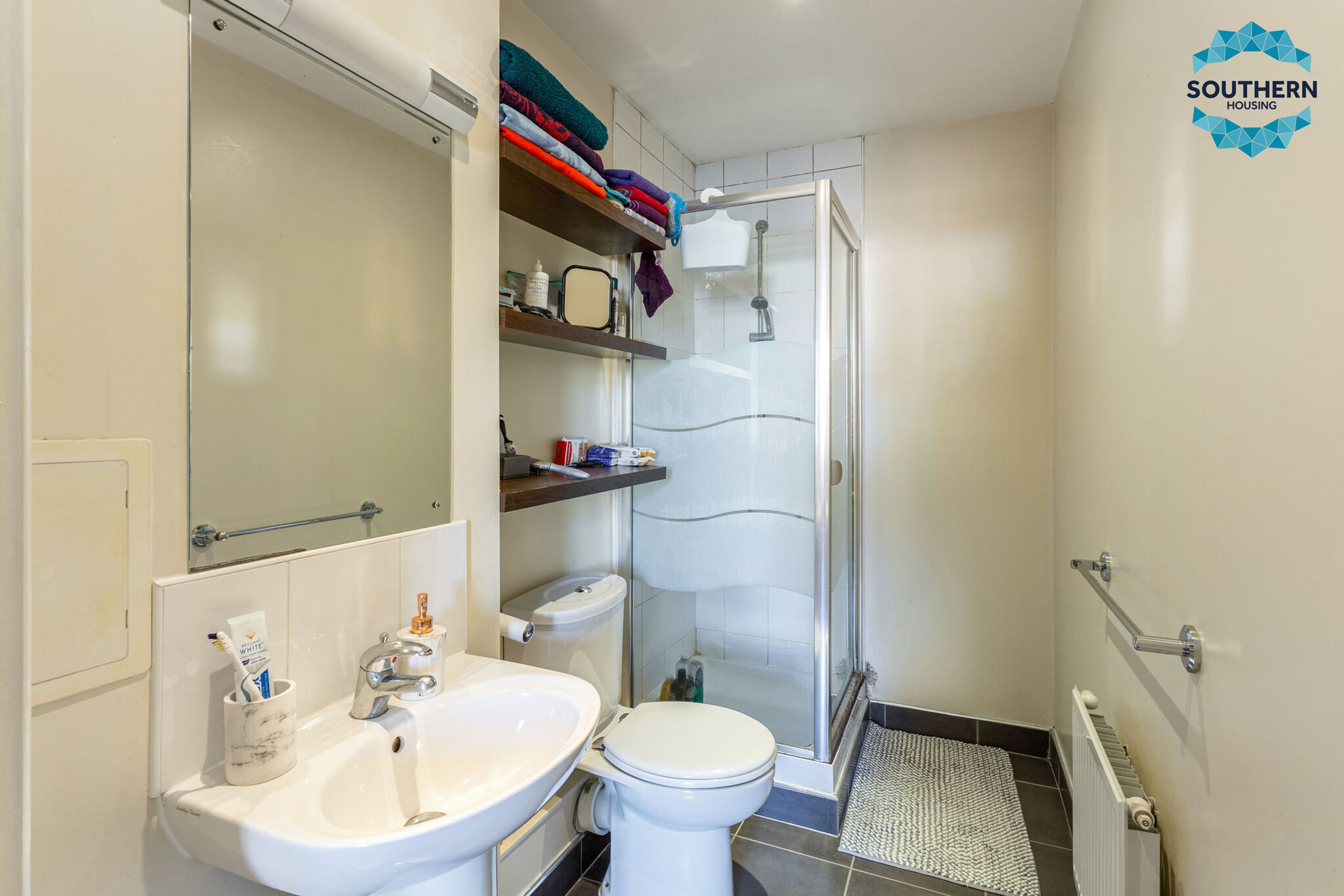 Both bedrooms offer generous proportions, allowing for comfortable layouts and additional furnishings. The main bedroom benefits from its own ensuite shower room, adding privacy and convenience, while the second bedroom serves equally well as a guest room or home office due to its ample size.
