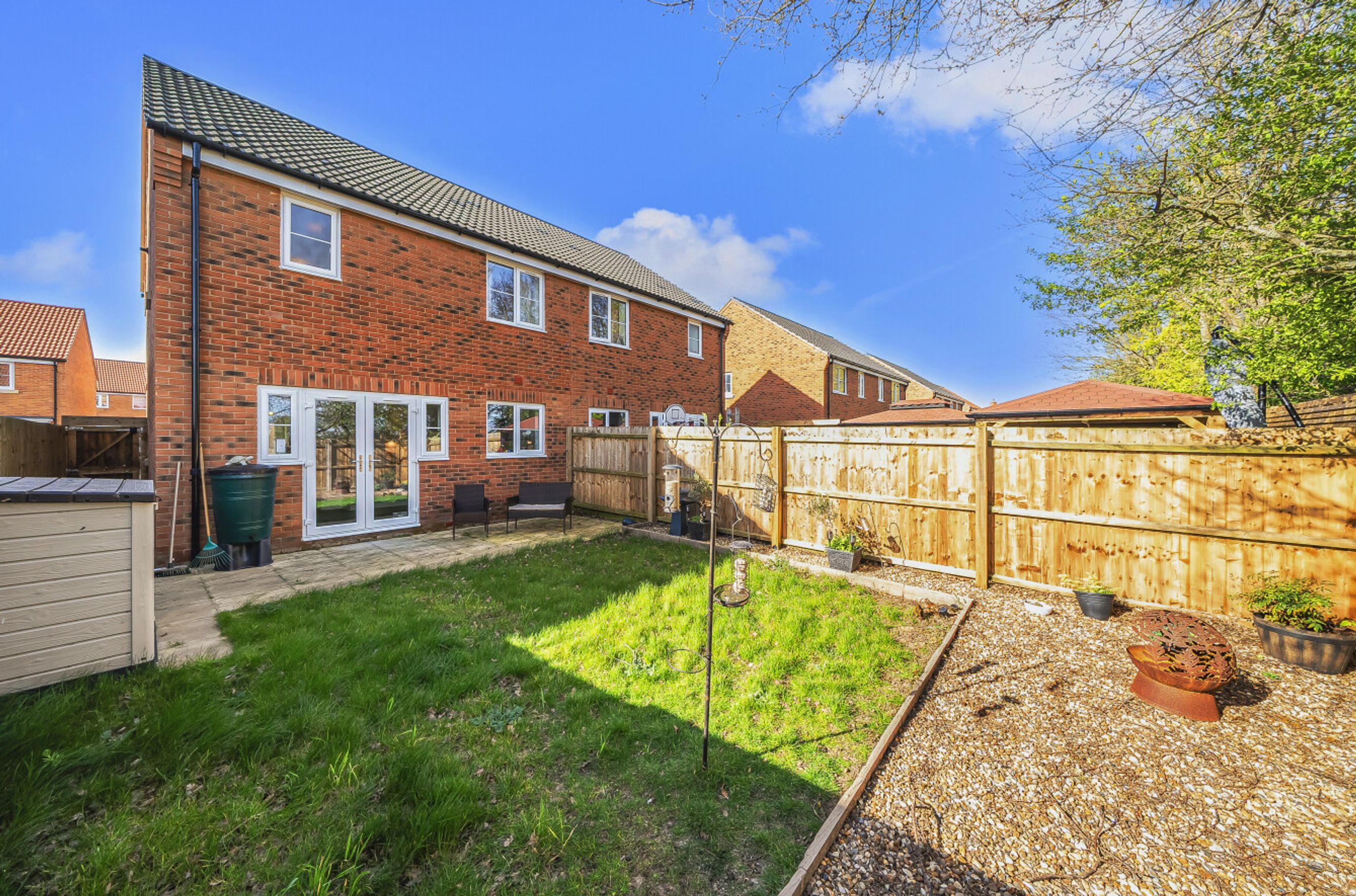 A great chance to buy a three-bedroom, shared-ownership family home. This recently-built and smartly-presented property has a cloakroom/WC just off the entrance hall, a good-sized reception room and a full-width kitchen/dining room with patio doors that open onto the rear garden. The garden can also be accessed via a side gate. On the first floor of the house is a main bedroom with en-suite shower room plus a spacious second double bedroom, a slightly smaller third bedroom and an attractive, naturally-lit bathroom with limestone-style tiles. Well insulated walls, roof and floor, high performance glazing and a modern gas central heating system all contribute towards a very good energy-efficiency rating. The house comes with a two-car driveway and is within comfortable walking distance, or a very brief bike ride, of both the town centre and Acle Railway Station. The property is held on a very long lease with the freehold transferrable at 100% ownership.