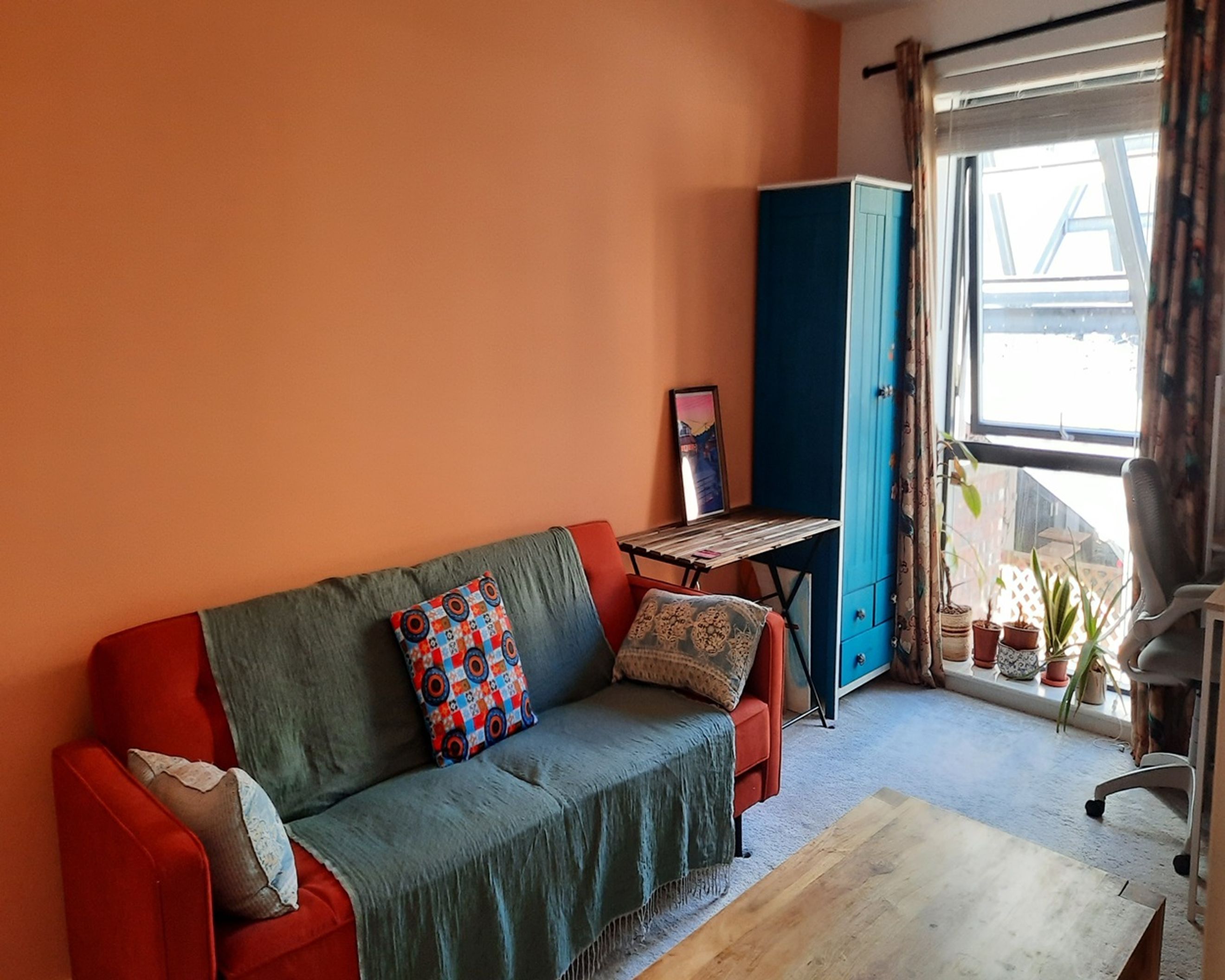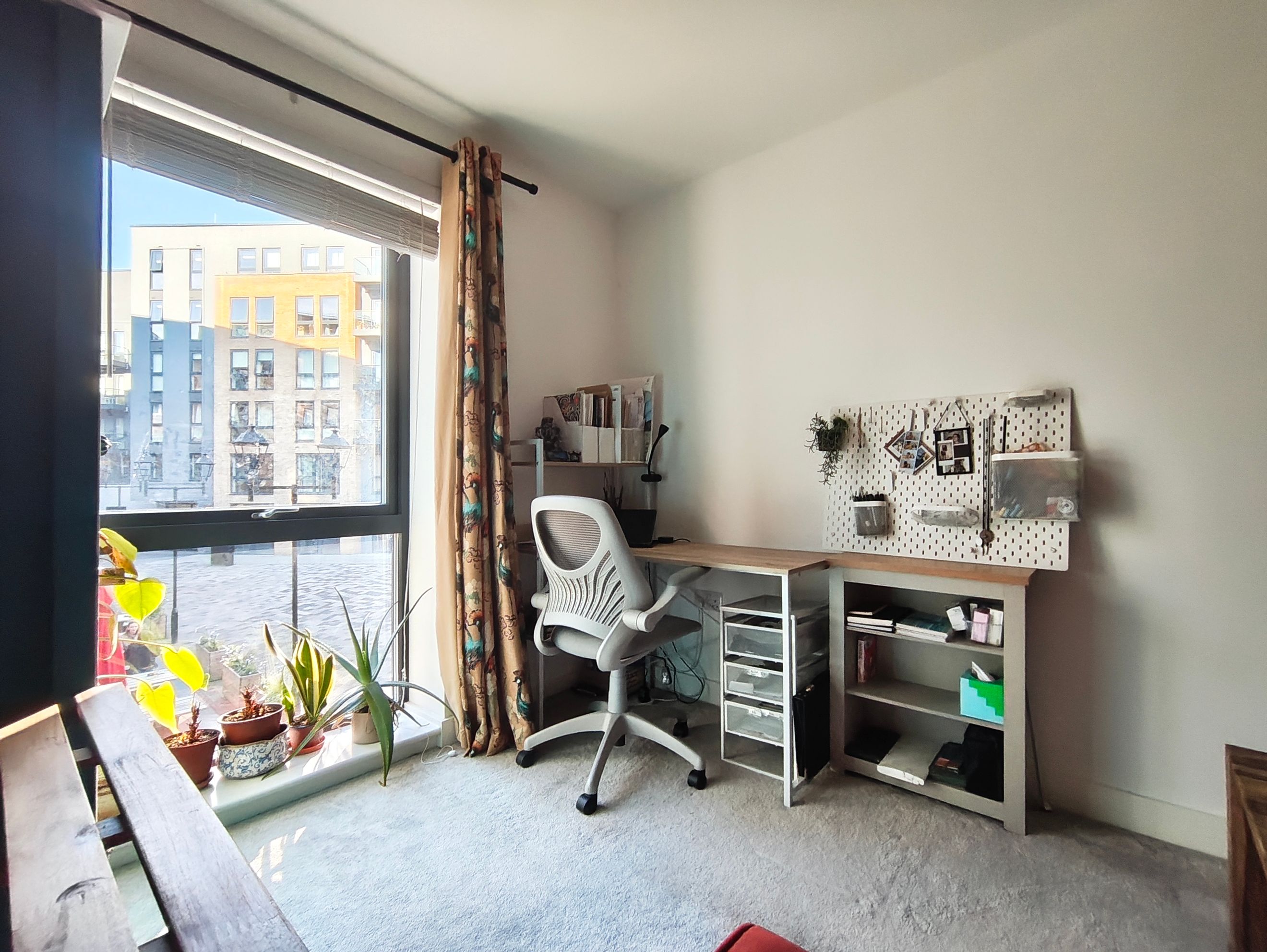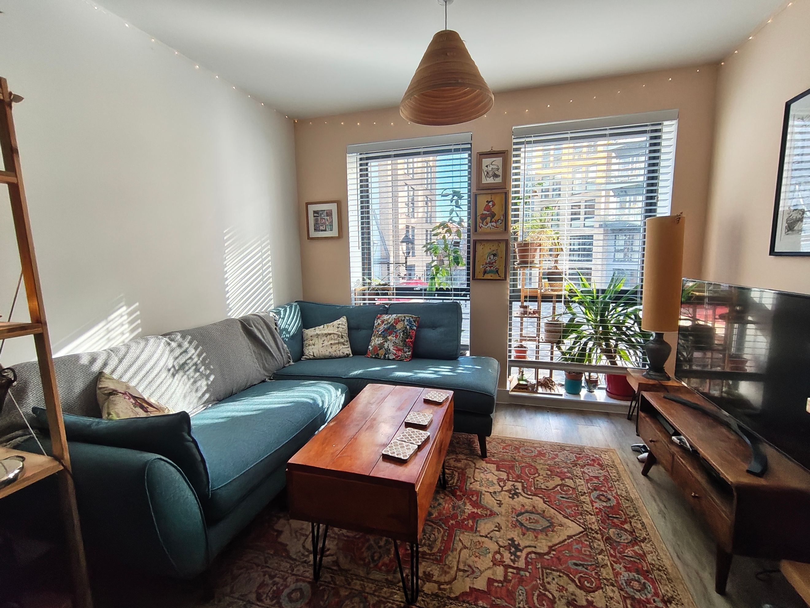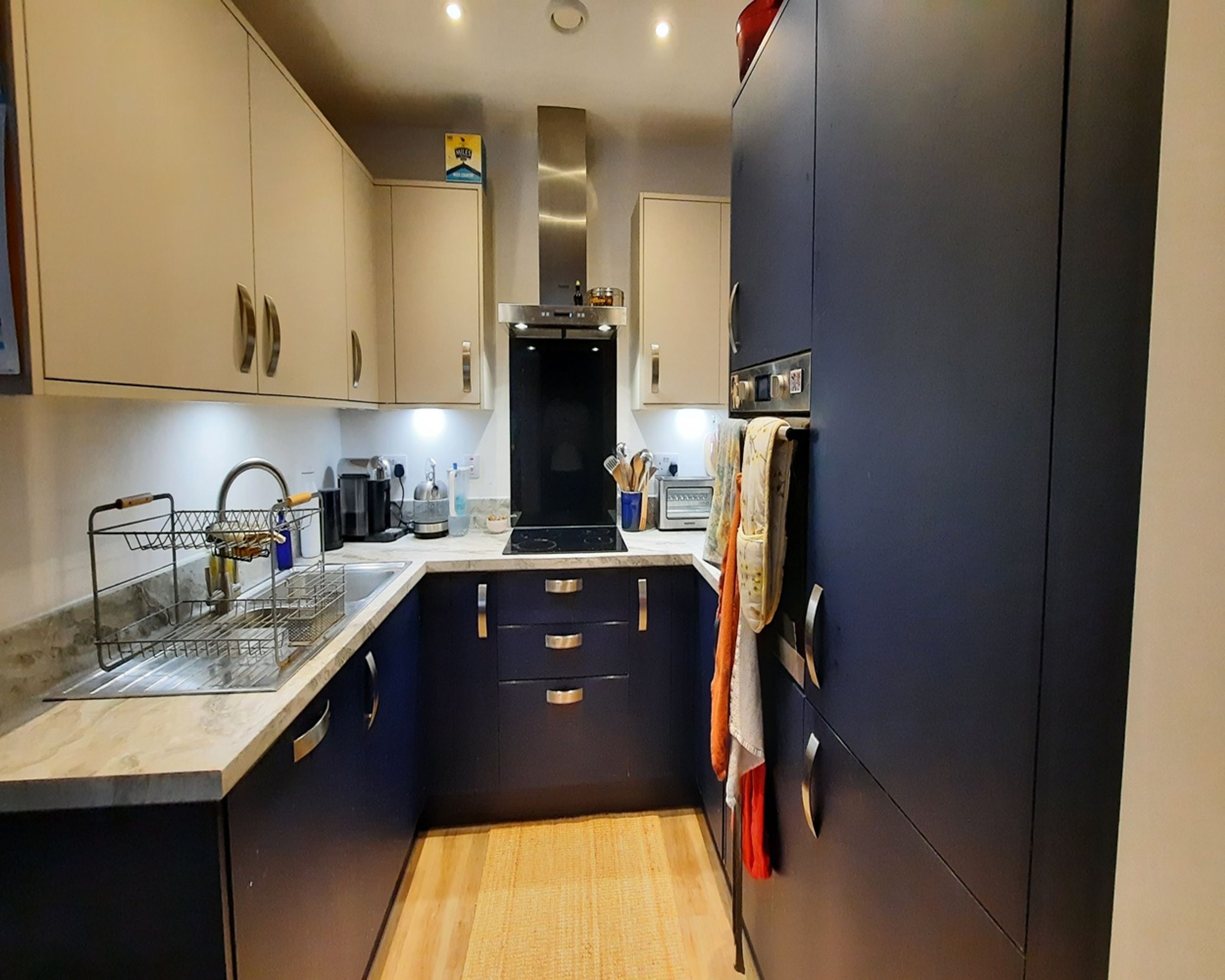 A well-presented two-bedroom flat featuring a bright open-plan living and kitchen area with views over an enclosed courtyard.