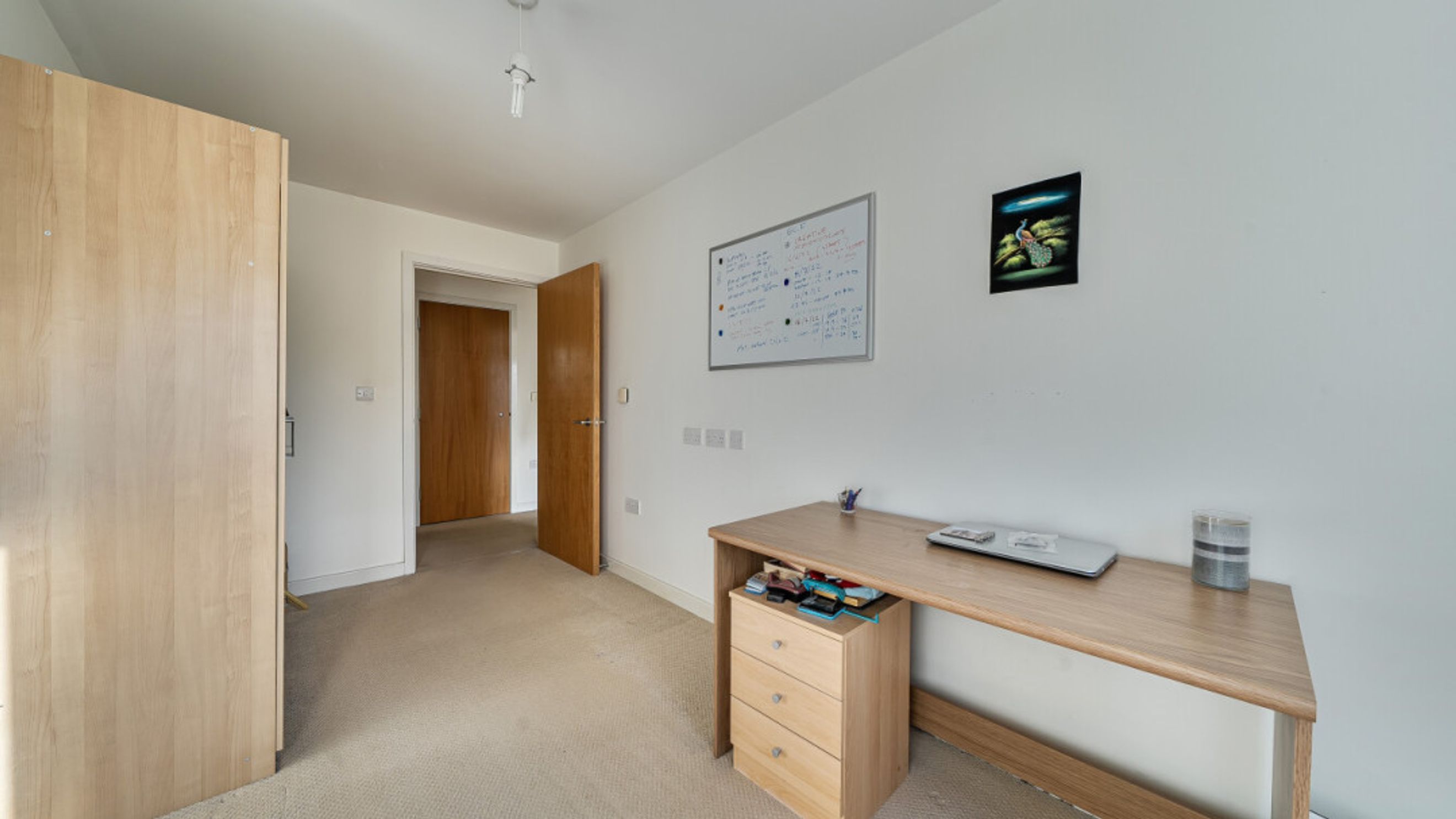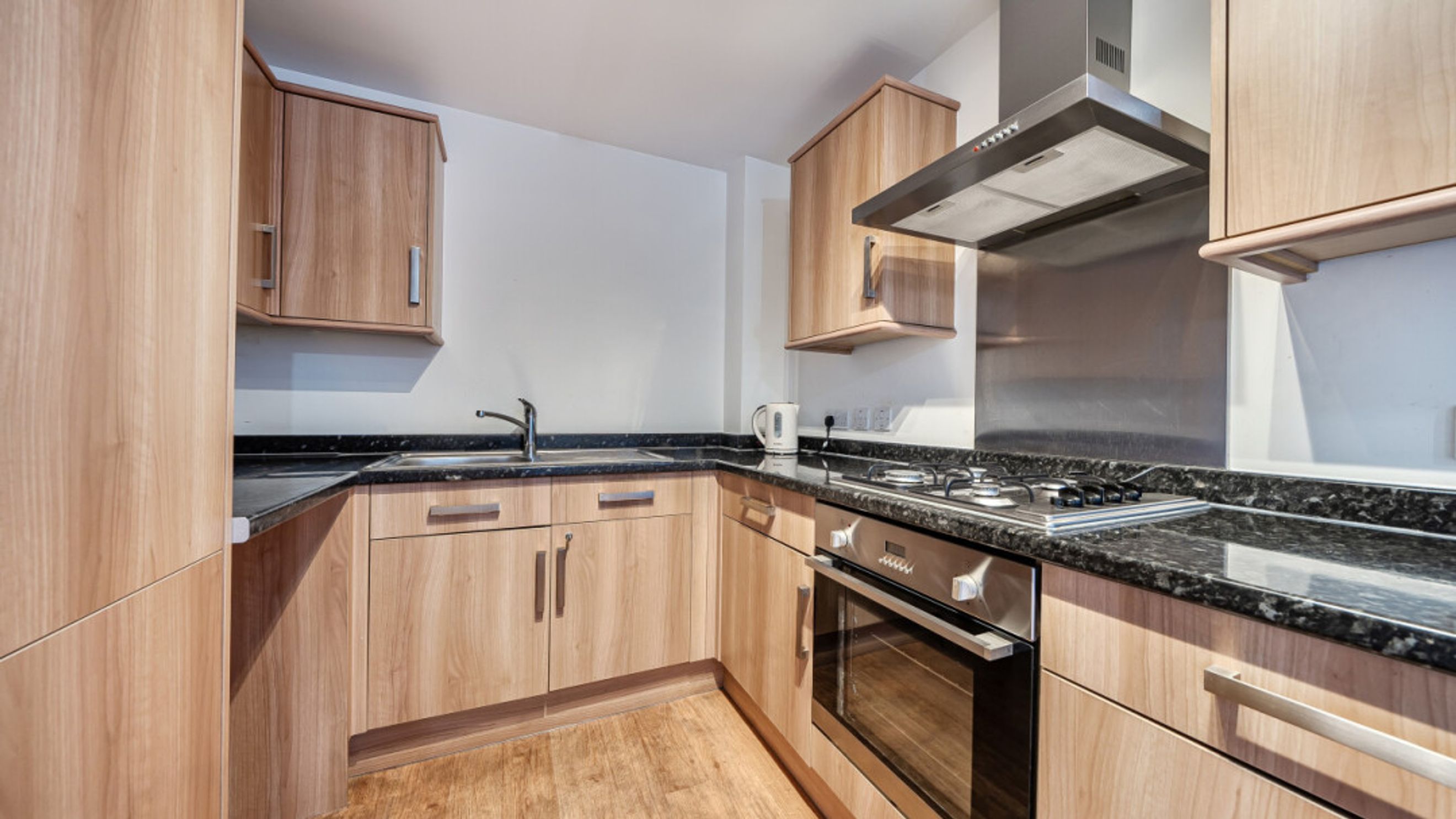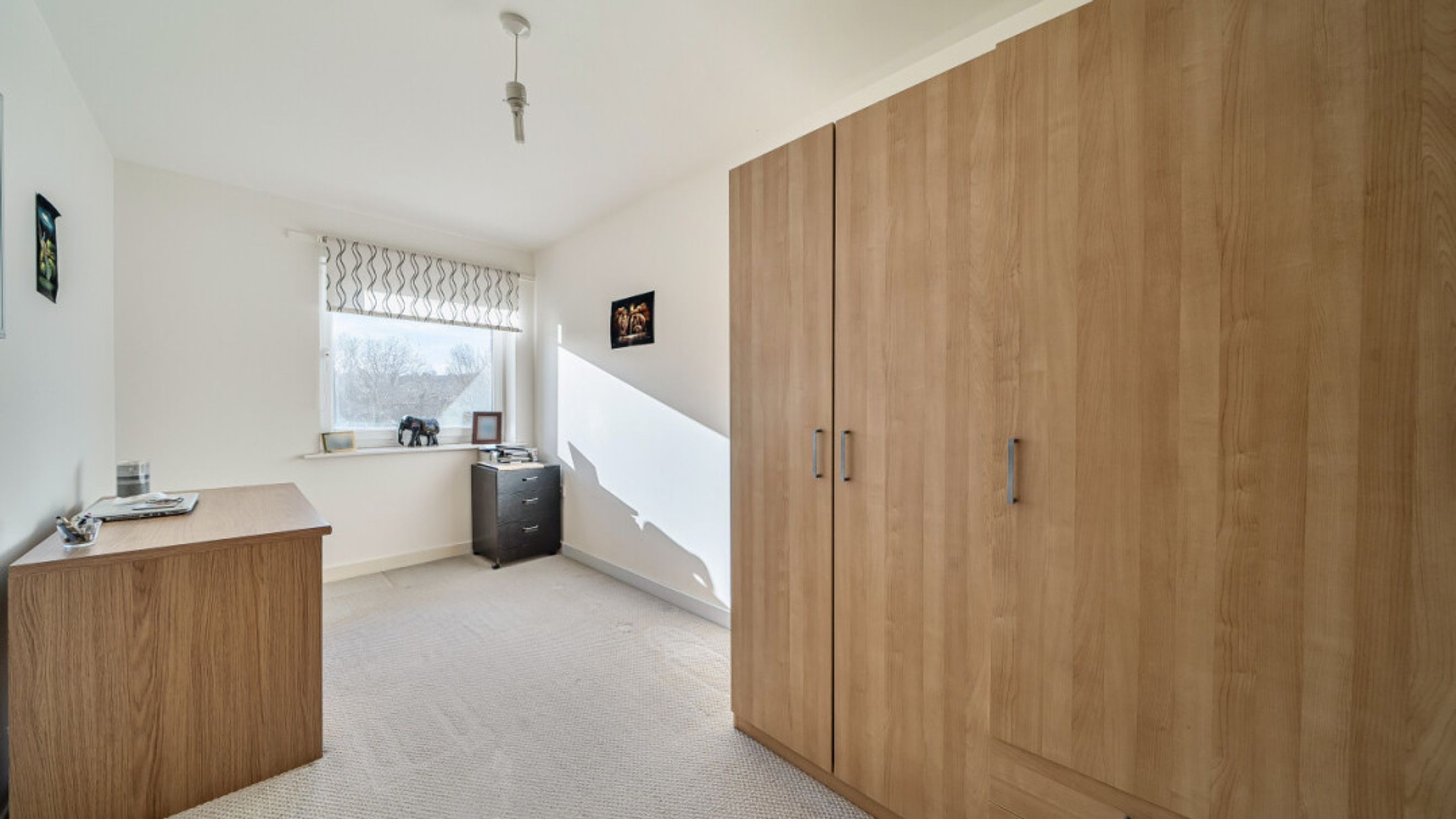Enter this dual aspect apartment via a hallway with storage and utility cupboard. The main reception room opens one small private balcony. Find a separate kitchen/breakfast room fitted with Beech effect wall and base units and including integrated oven, hob and extractor. Ther are two west facing double bedrooms, one larger than the other and these are served by a family bathroom.